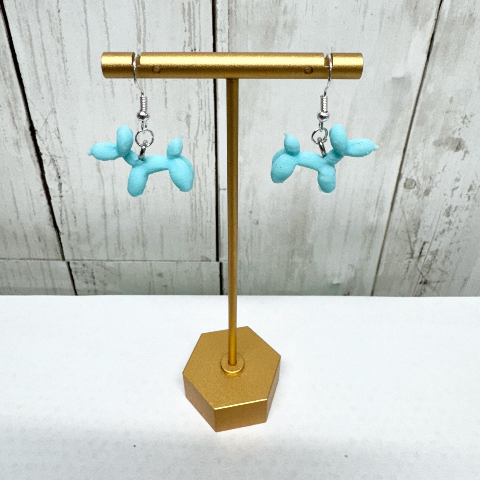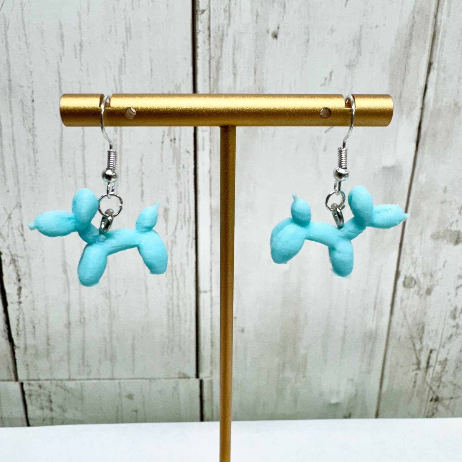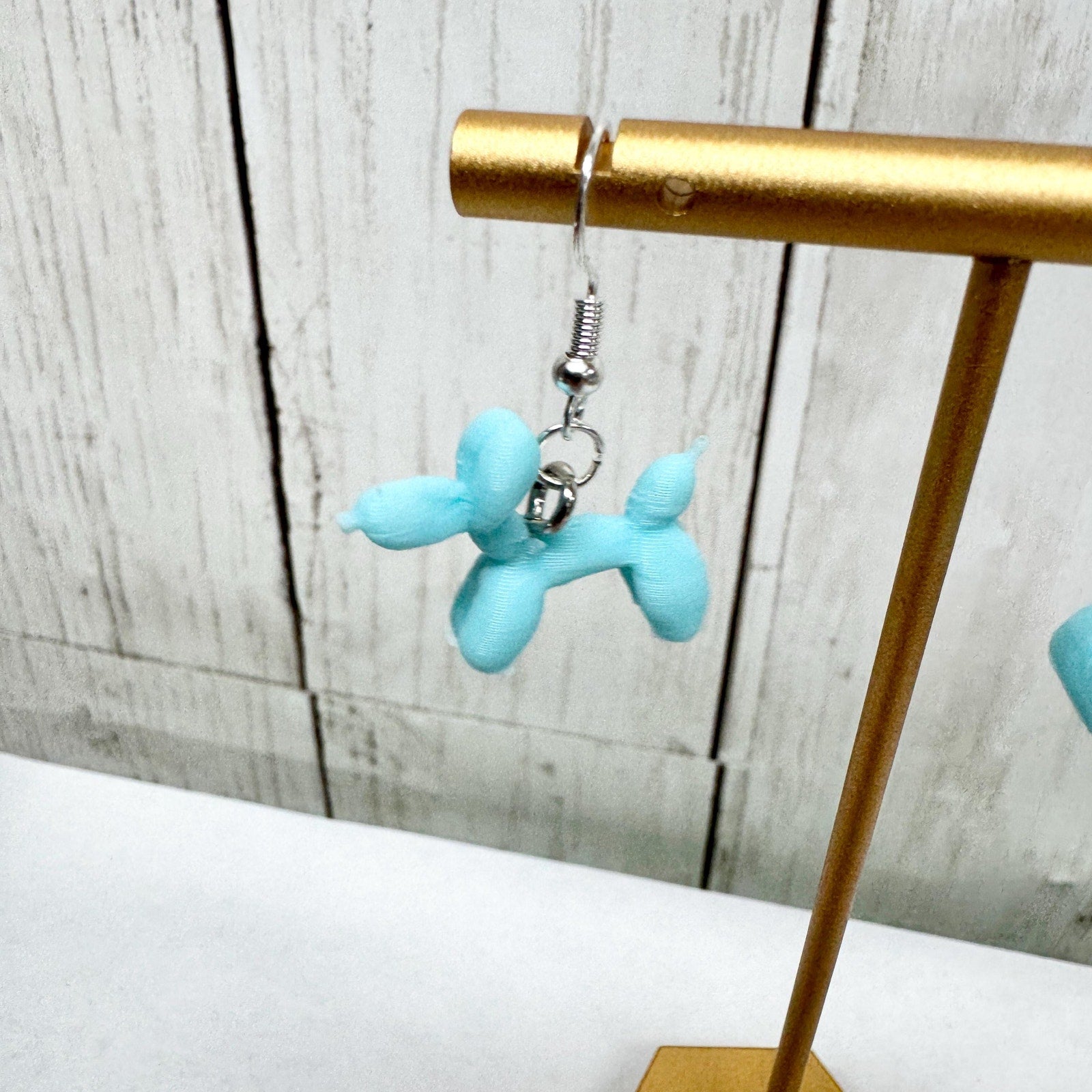 🎈 3D Printed Blue Balloon Dog Dangle Earrings