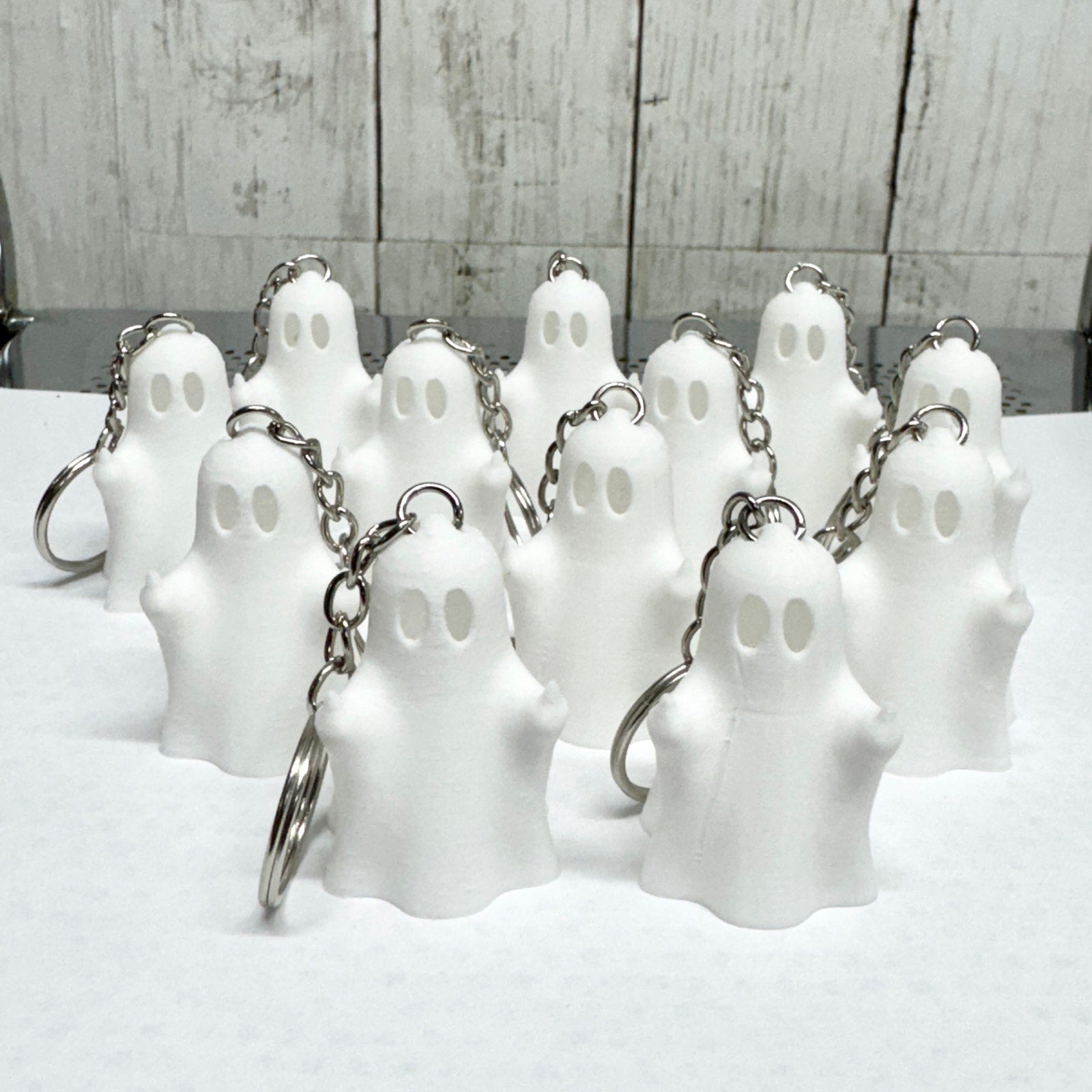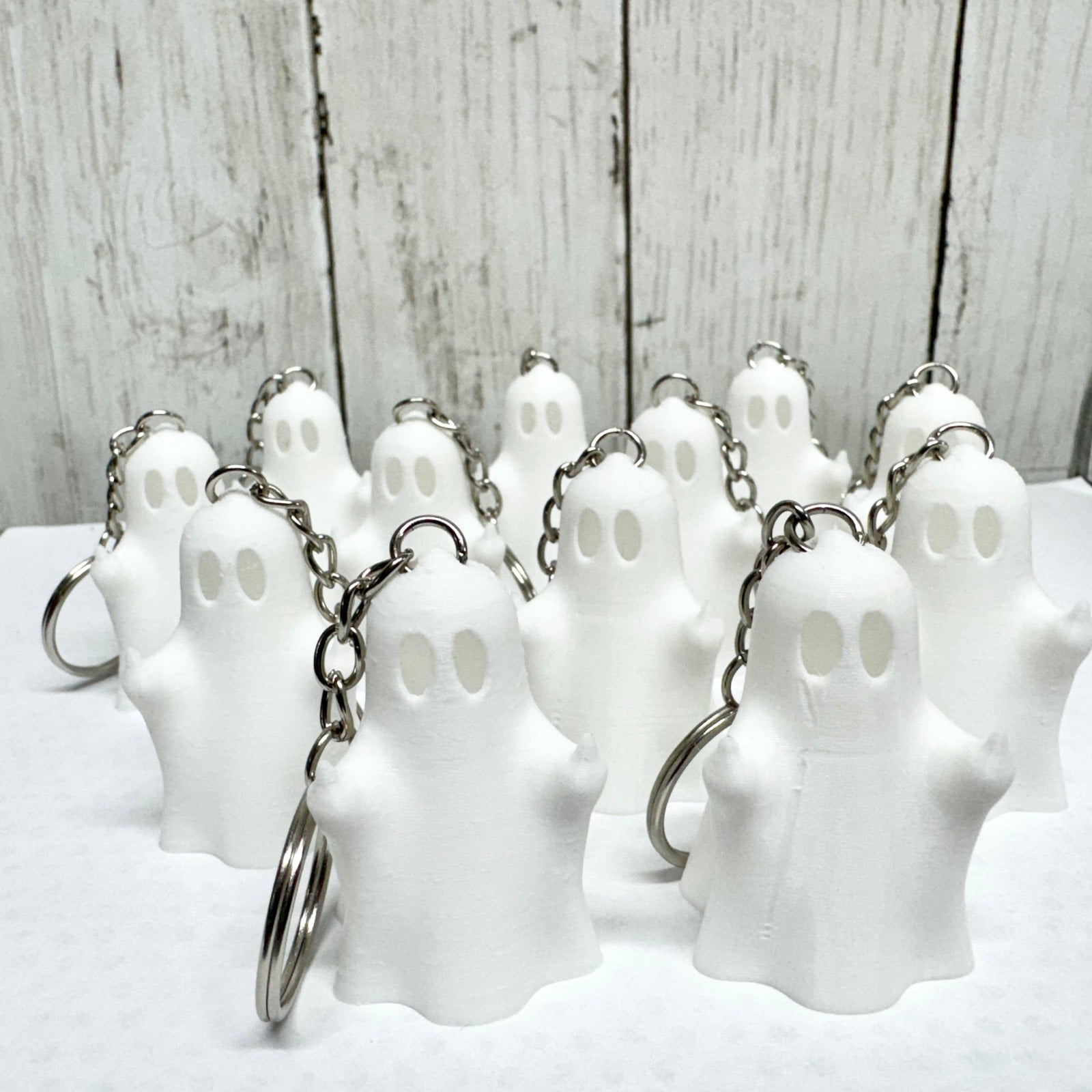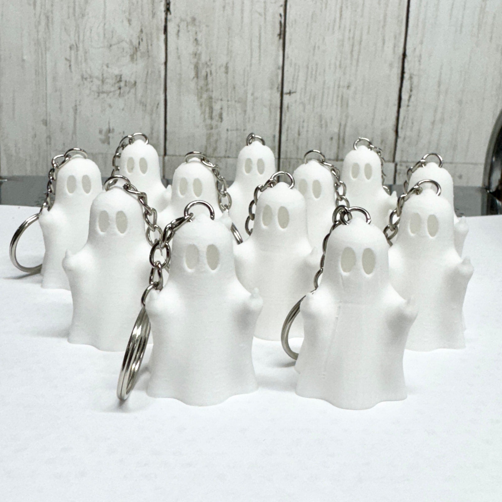 * One 3D printed ghost keychain with a chain attachment.
