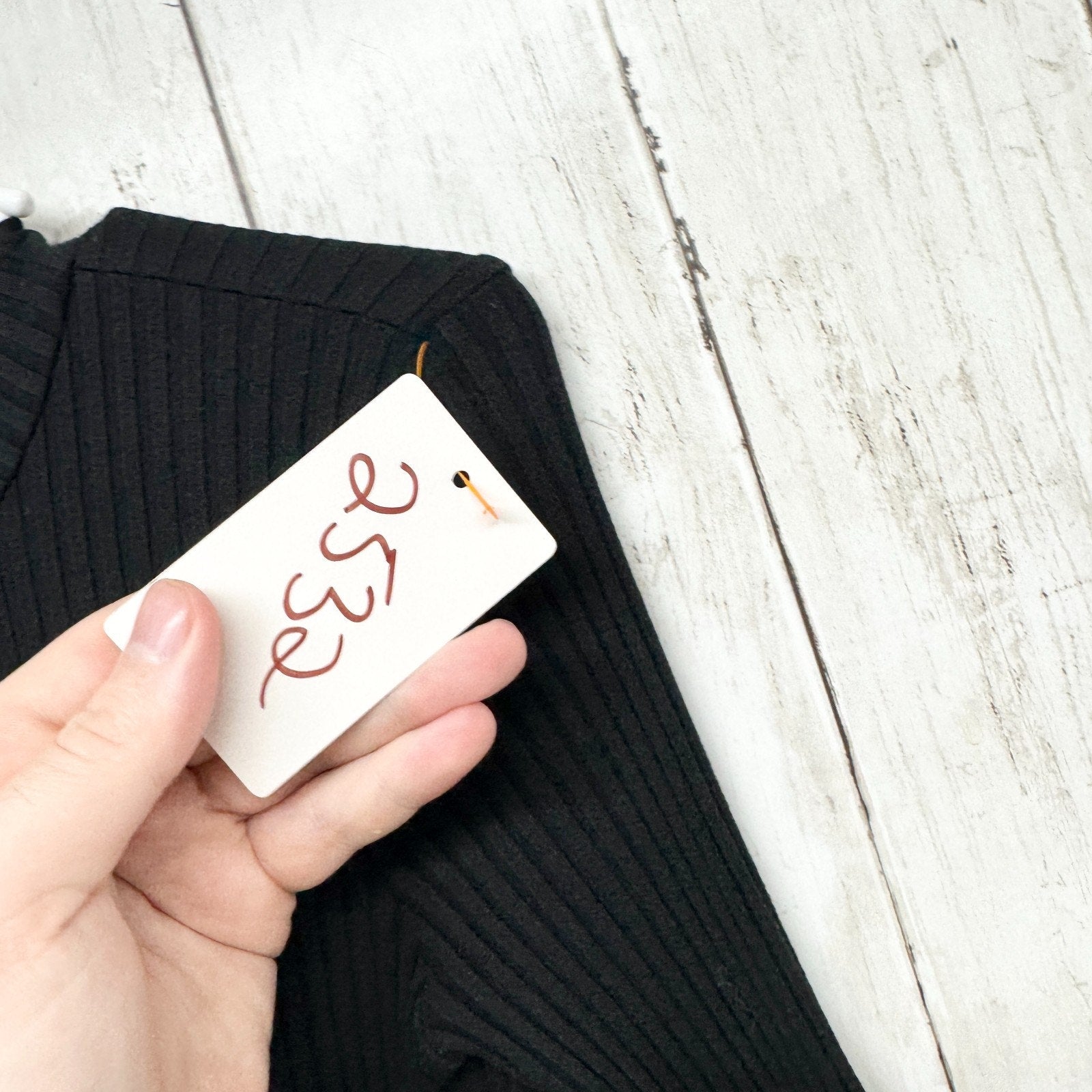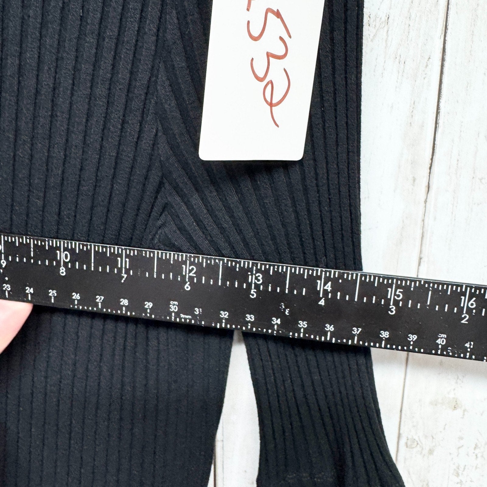 3x1 NYC Sweater Women Size Medium Black Ribbed Crewneck Half Sleeve Button Front