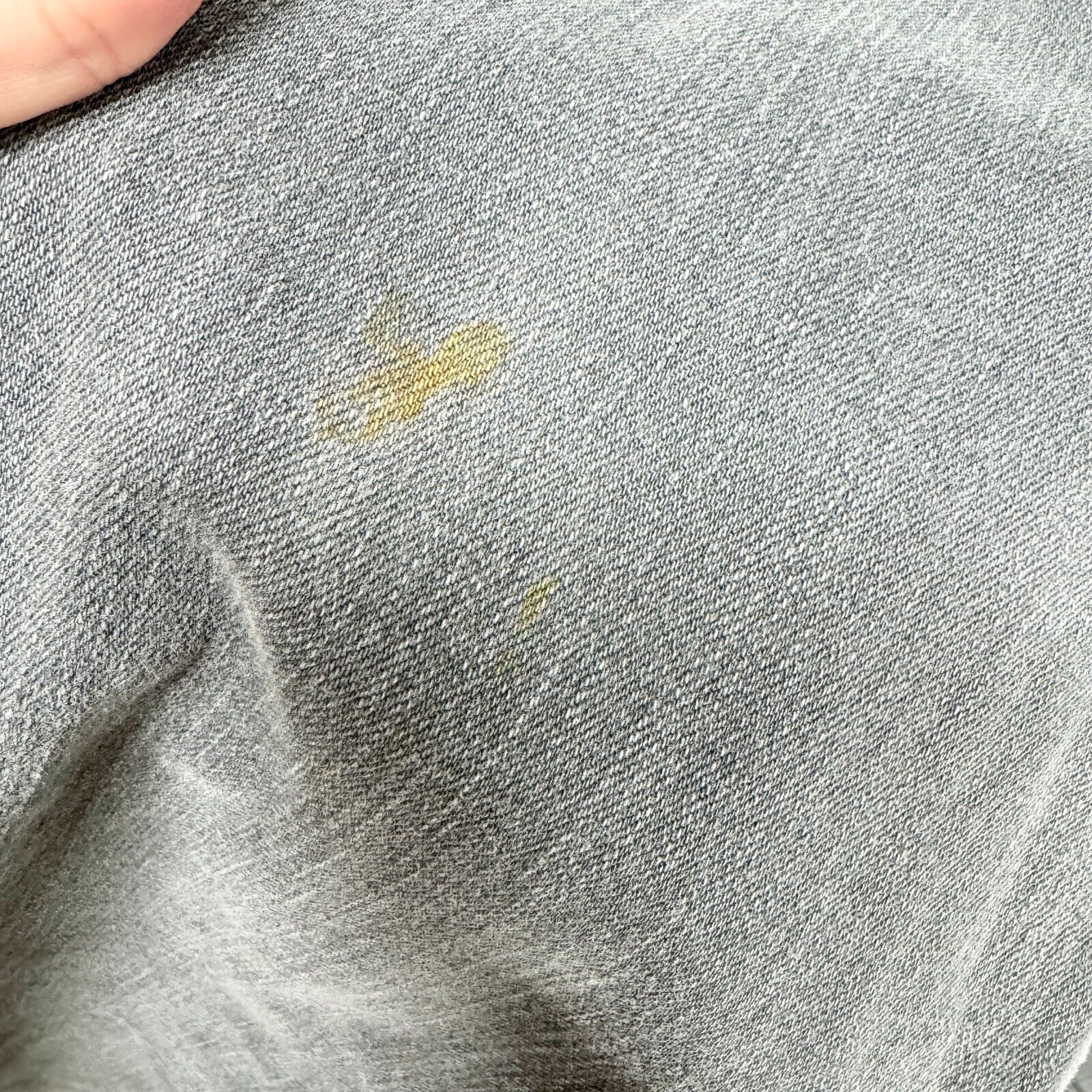 Please note this item has a stain on the back of the pant leg shown in the pictures