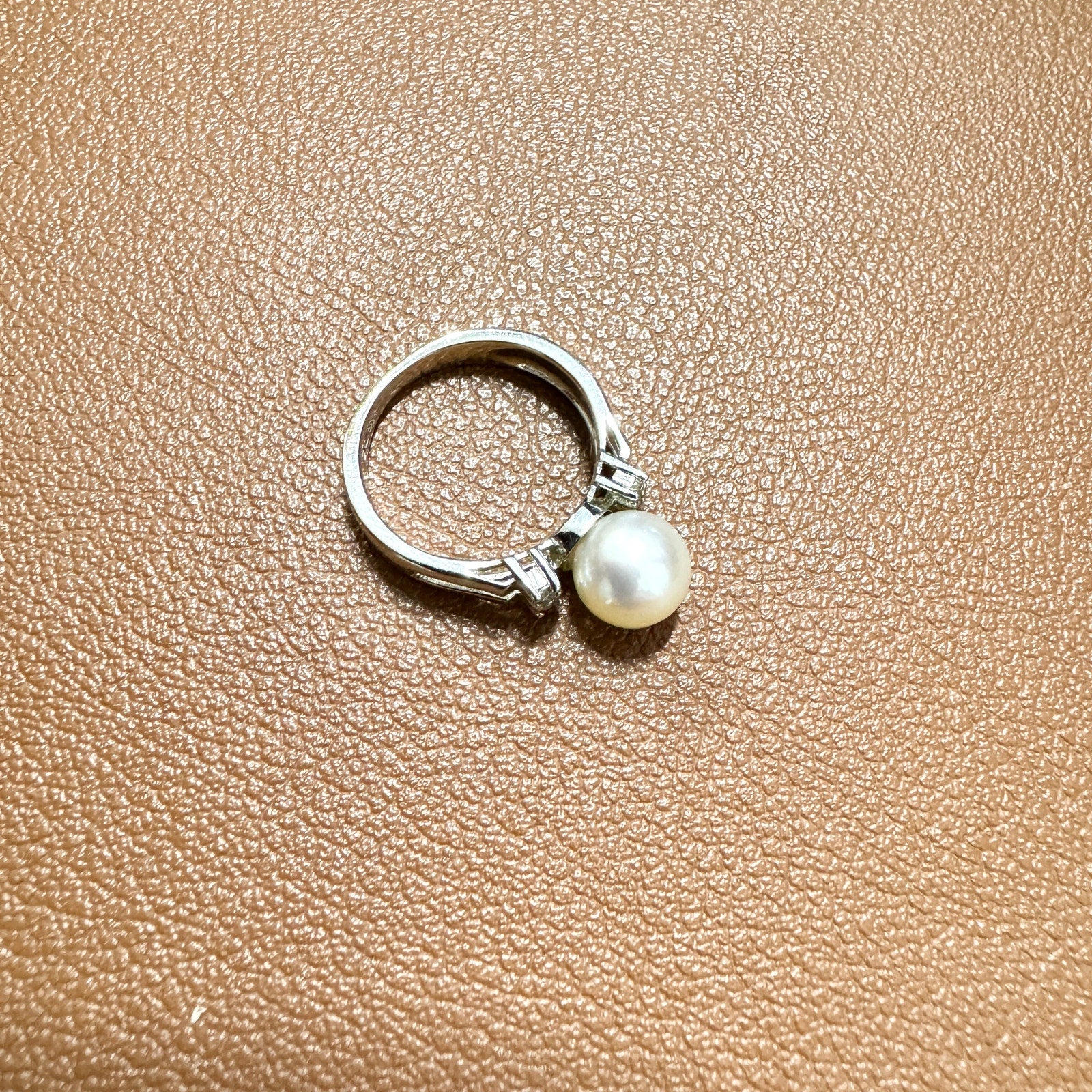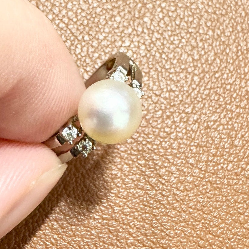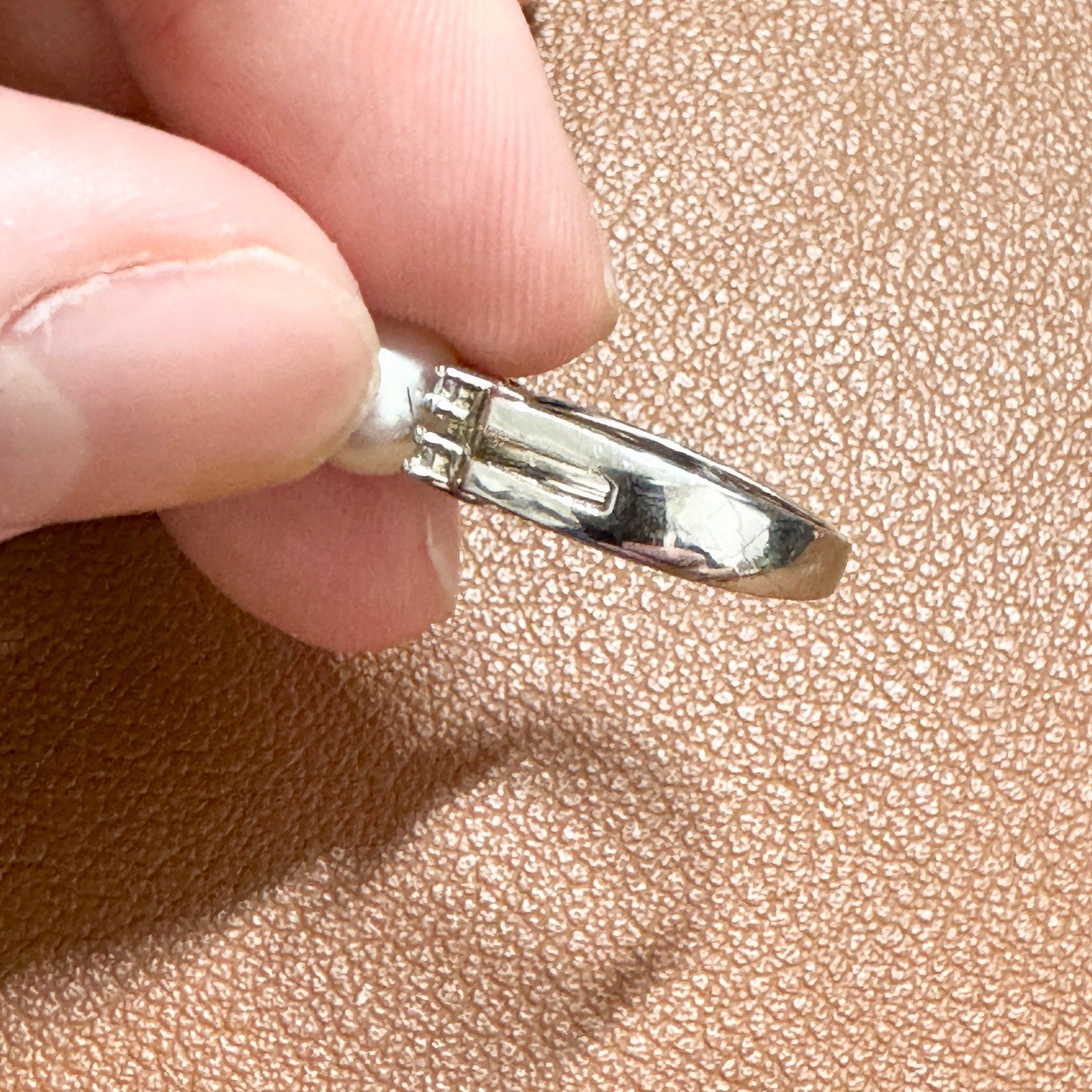 925 Sterling Silver Pearl and White Stone Ring Size 5