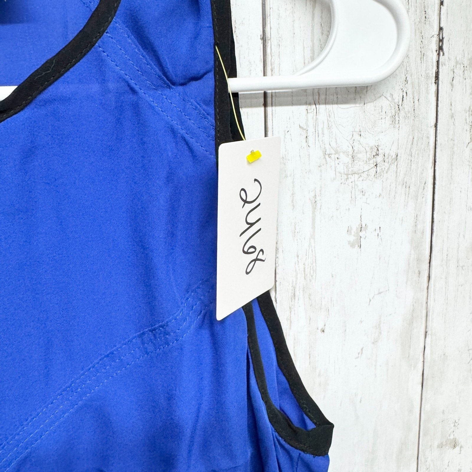 A.L.C. Shirt Women Size Small Blue Silk Sleeveless Tank Blouse Black Trim Detail