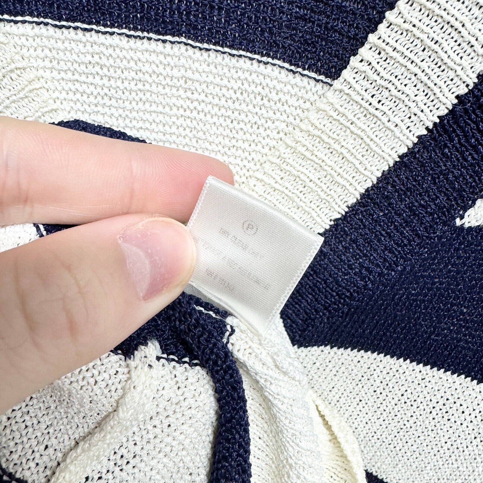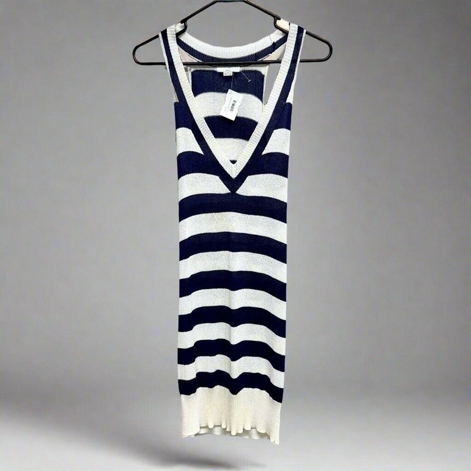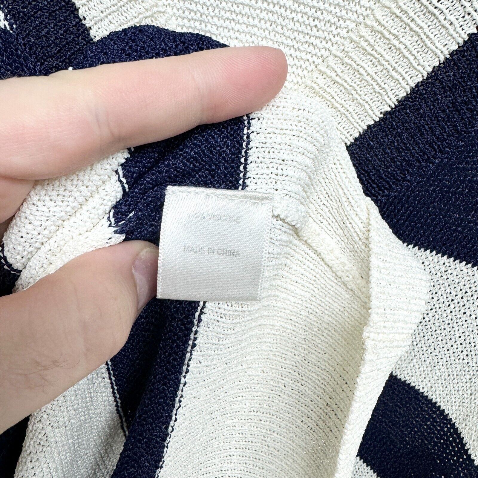 Adam Lippes White Navy Striped V Neck Sleeveless Knit Maxi Dress Size XS