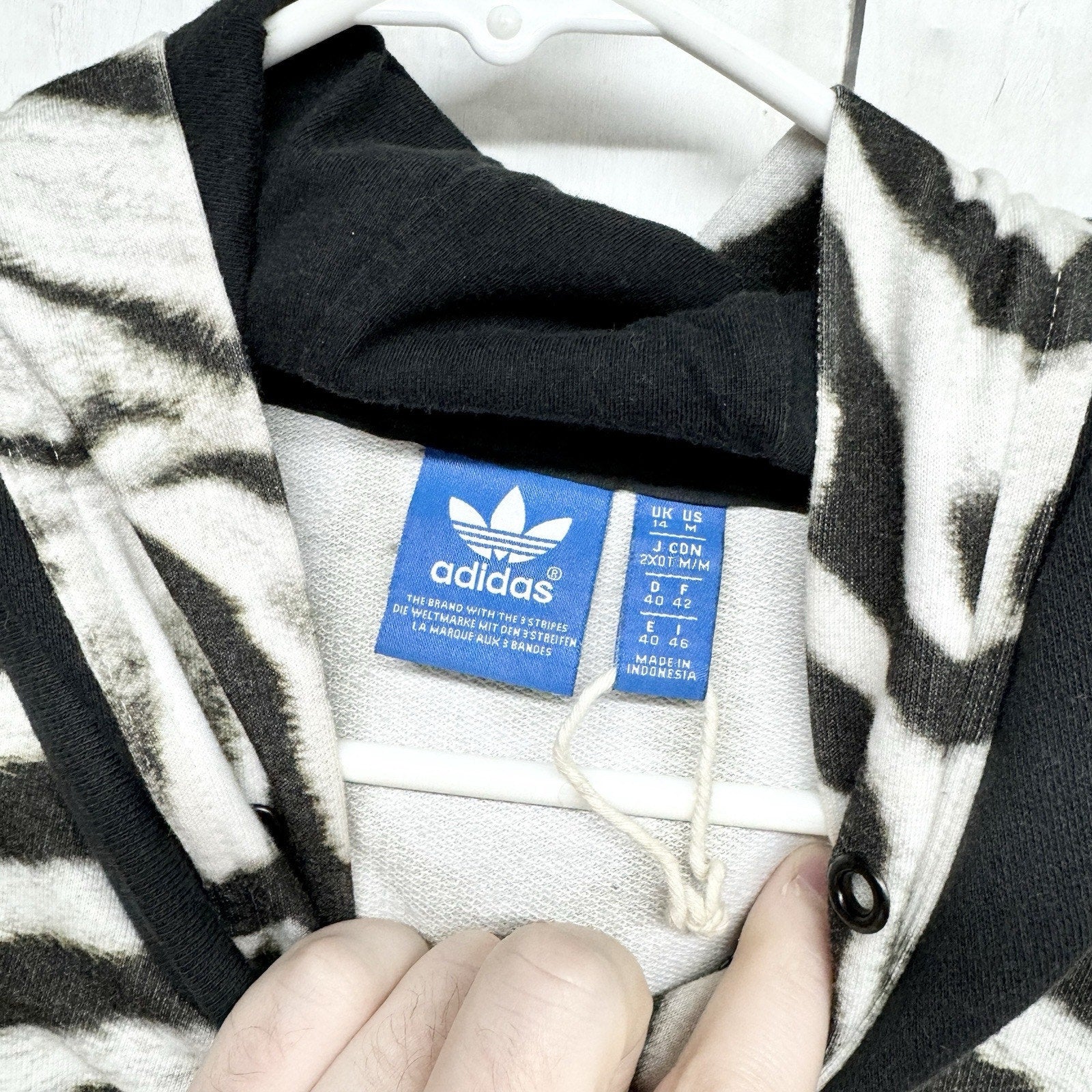 ADIDAS Hoodie Women Size M Long Sleeve Cotton Zebra Double Pocket Graphic Logo