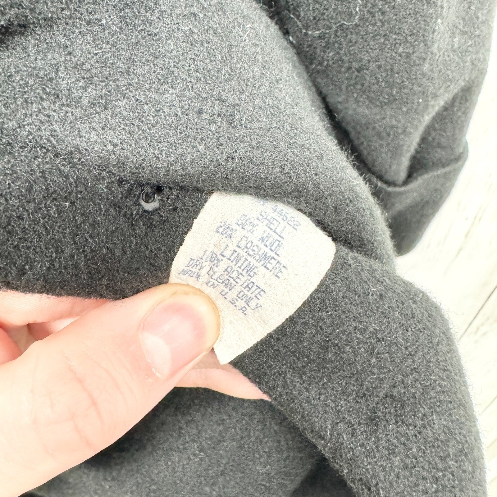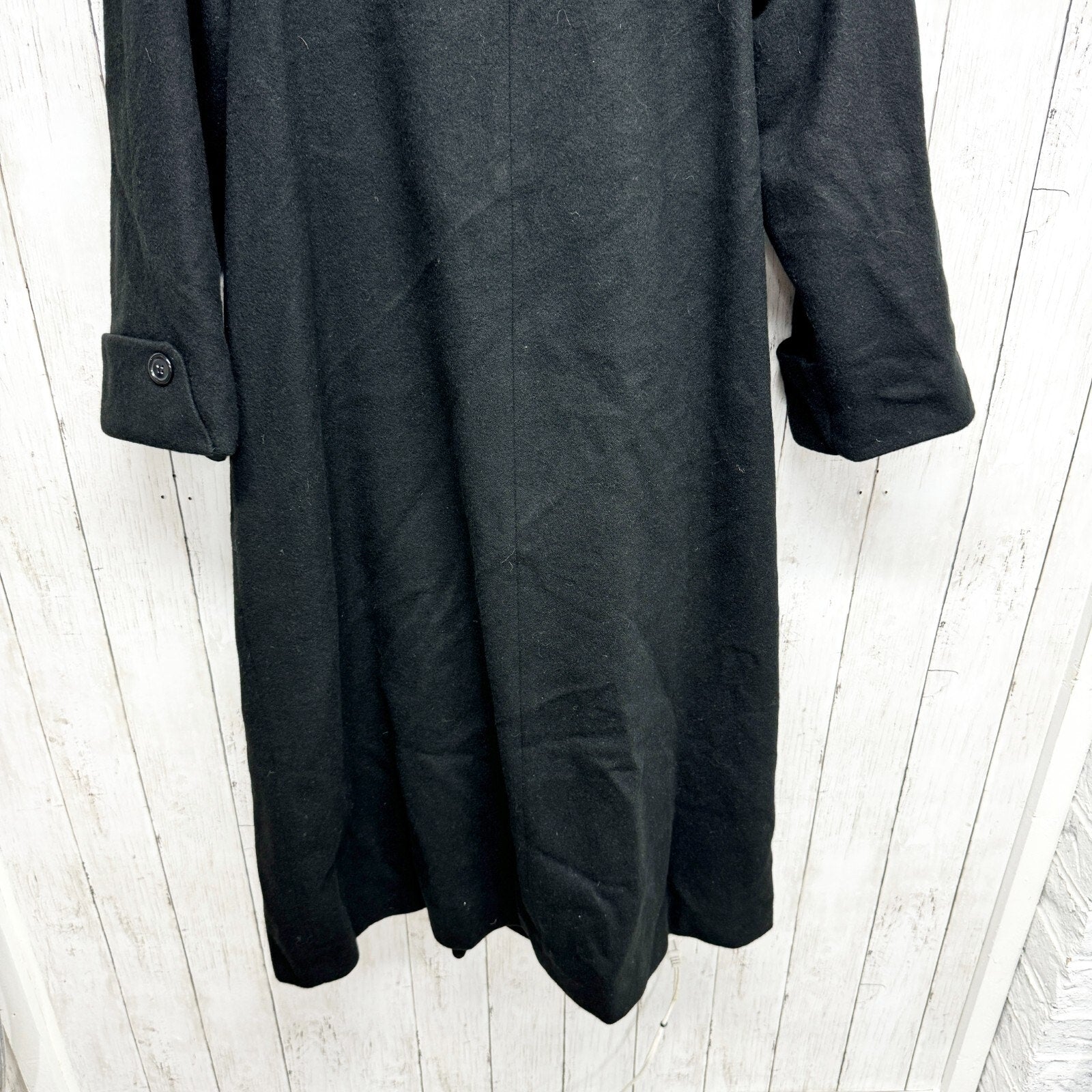 Albert Nipon Coat Women 10P Black Long Collared Button Down Peacoat Front Pocket