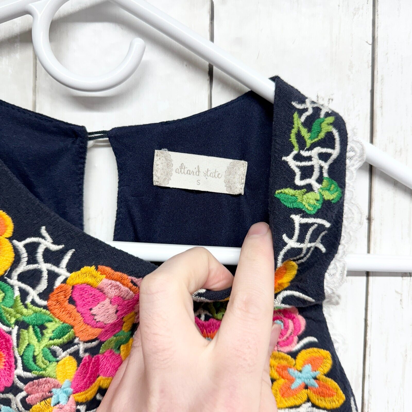 Altar'd State Tunic W Small Blue Striped Embroidered Babydoll Floral Sleeveless Small, blue, striped, embroidered, babydoll, floral, sleeveless, flowy, boho-chic