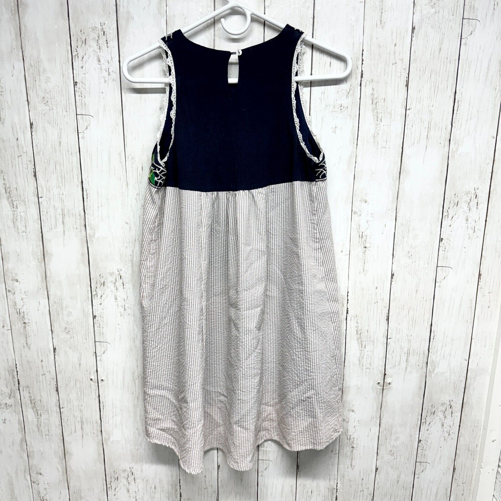 Altar'd State Tunic W Small Blue Striped Embroidered Babydoll Floral Sleeveless