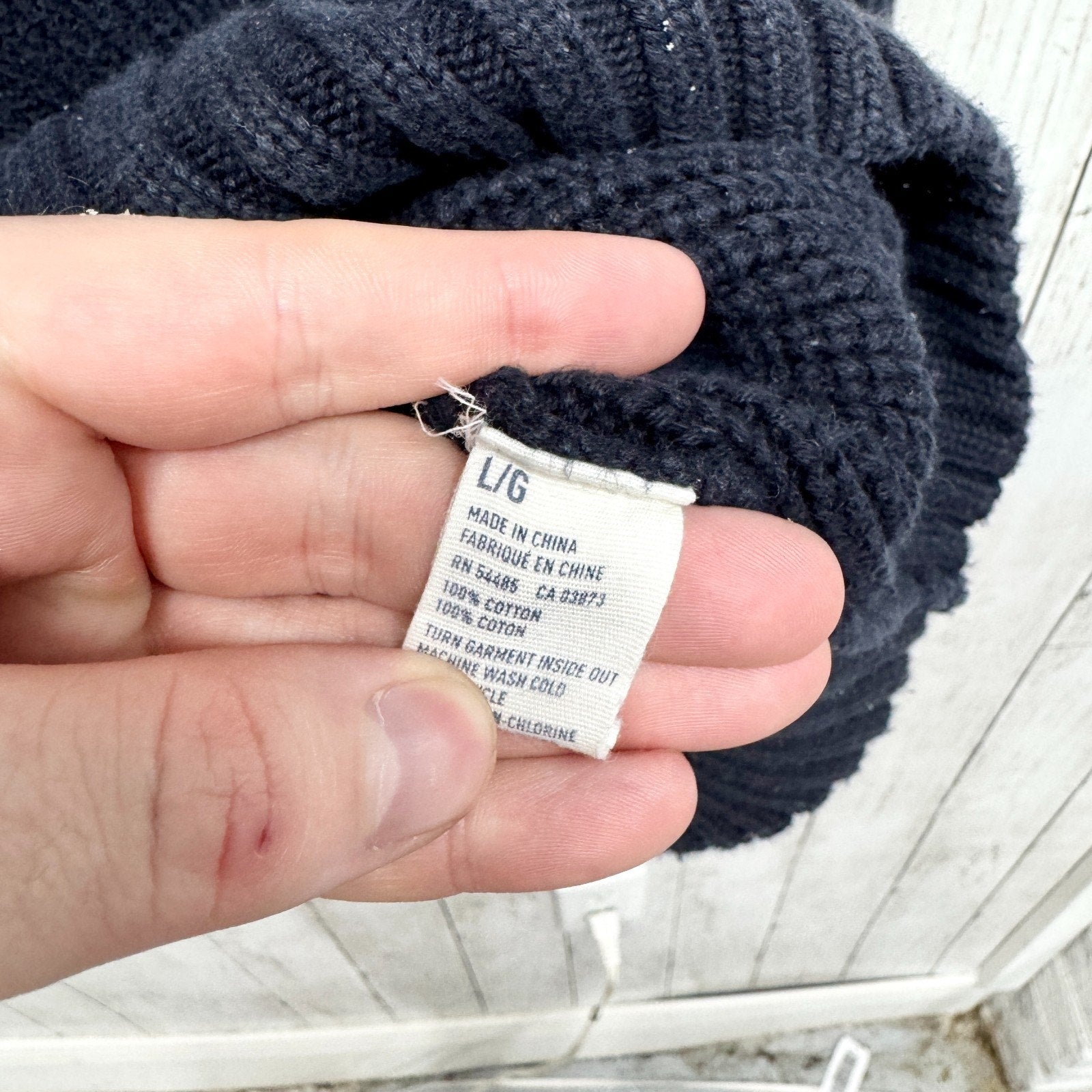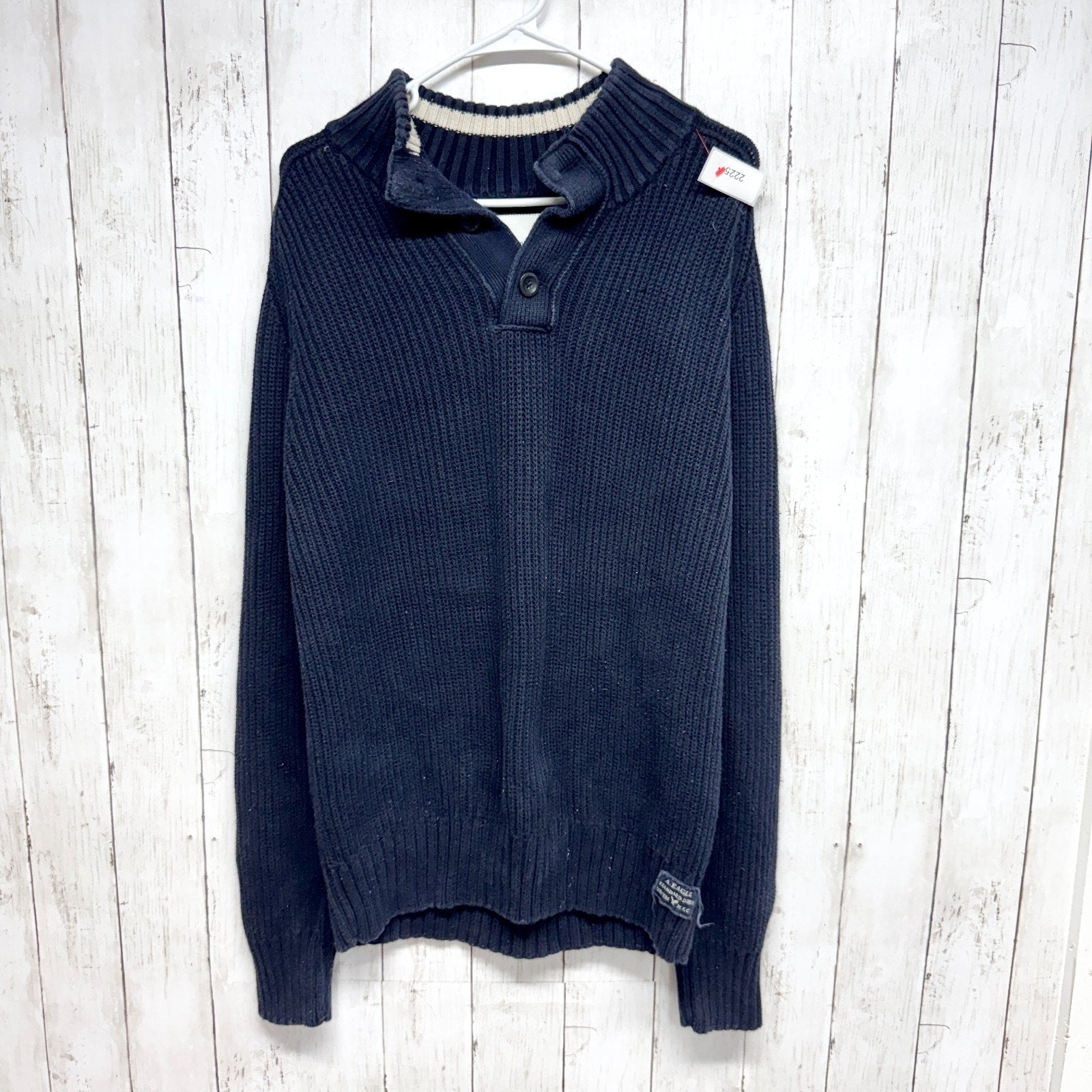 American Eagle Sweater Men Size Large Navy Button Front Cable Knit Long Sleeve