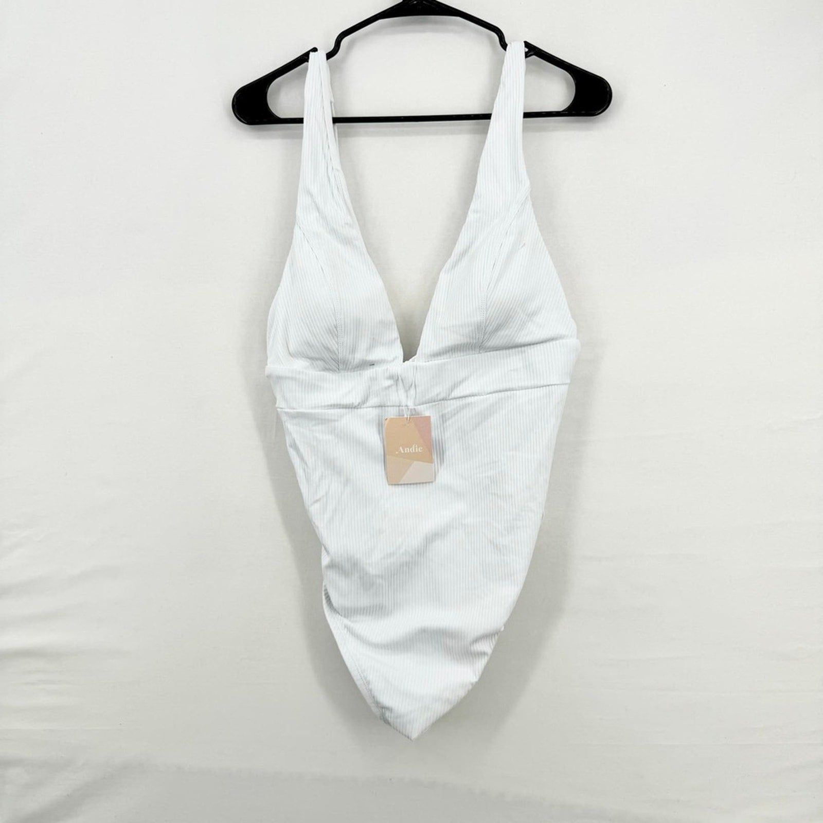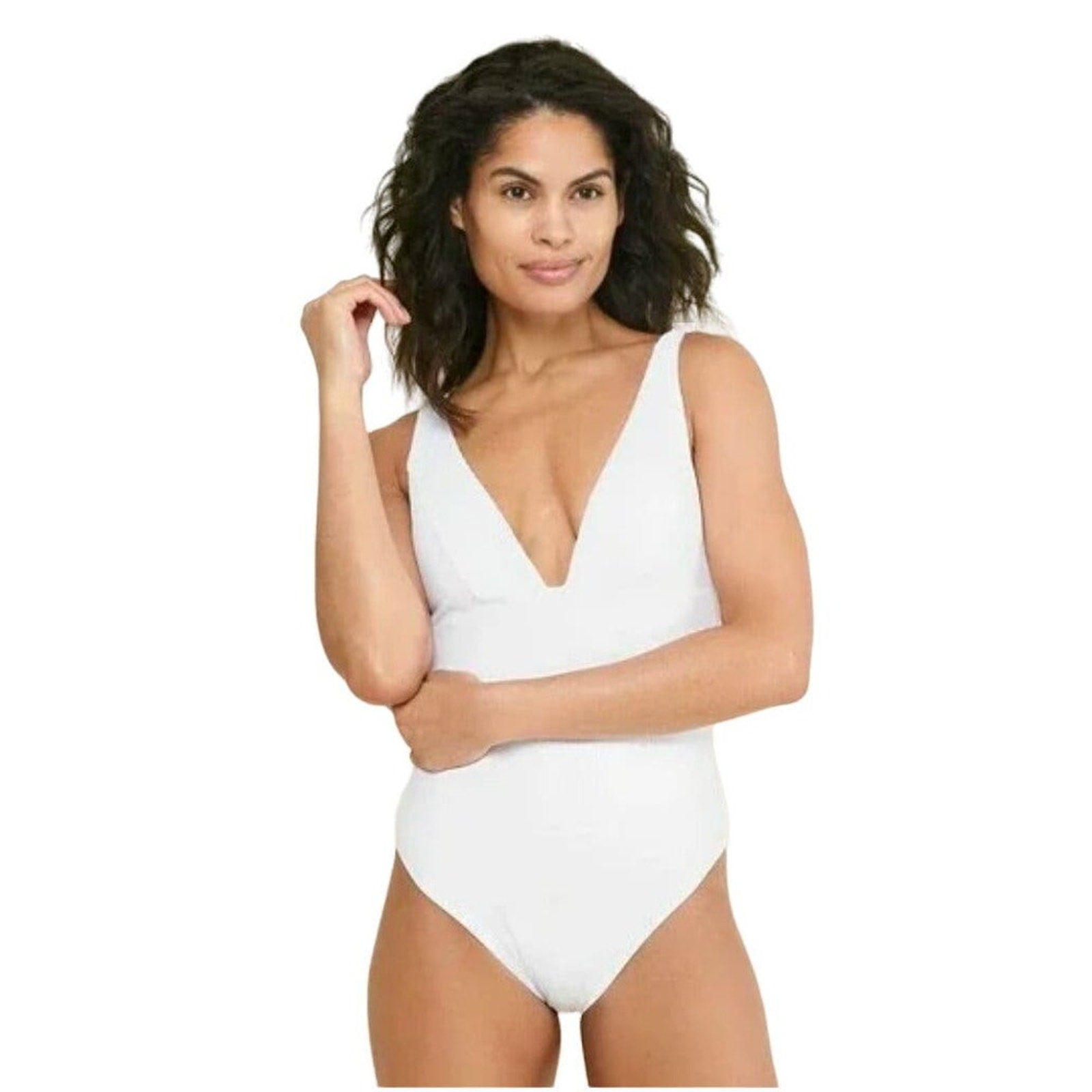 Andie Sardina Ribbed One Piece White Sleeveless Swimwear Stretch Beach XXL Tall