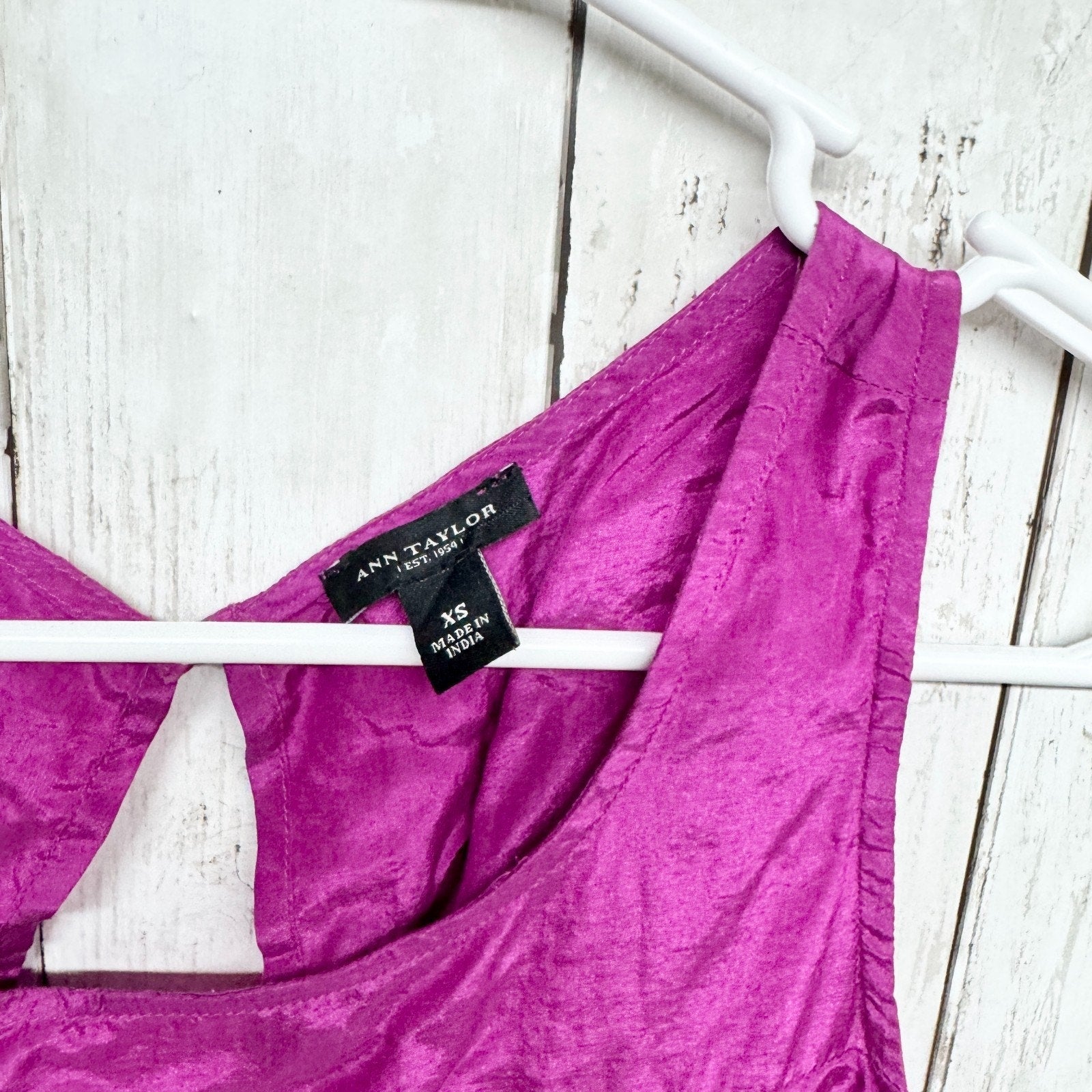 Ann Taylor Shirt Women Size XS Fuchsia Ruffle Tiered Sleeveless Blouse Tank Top