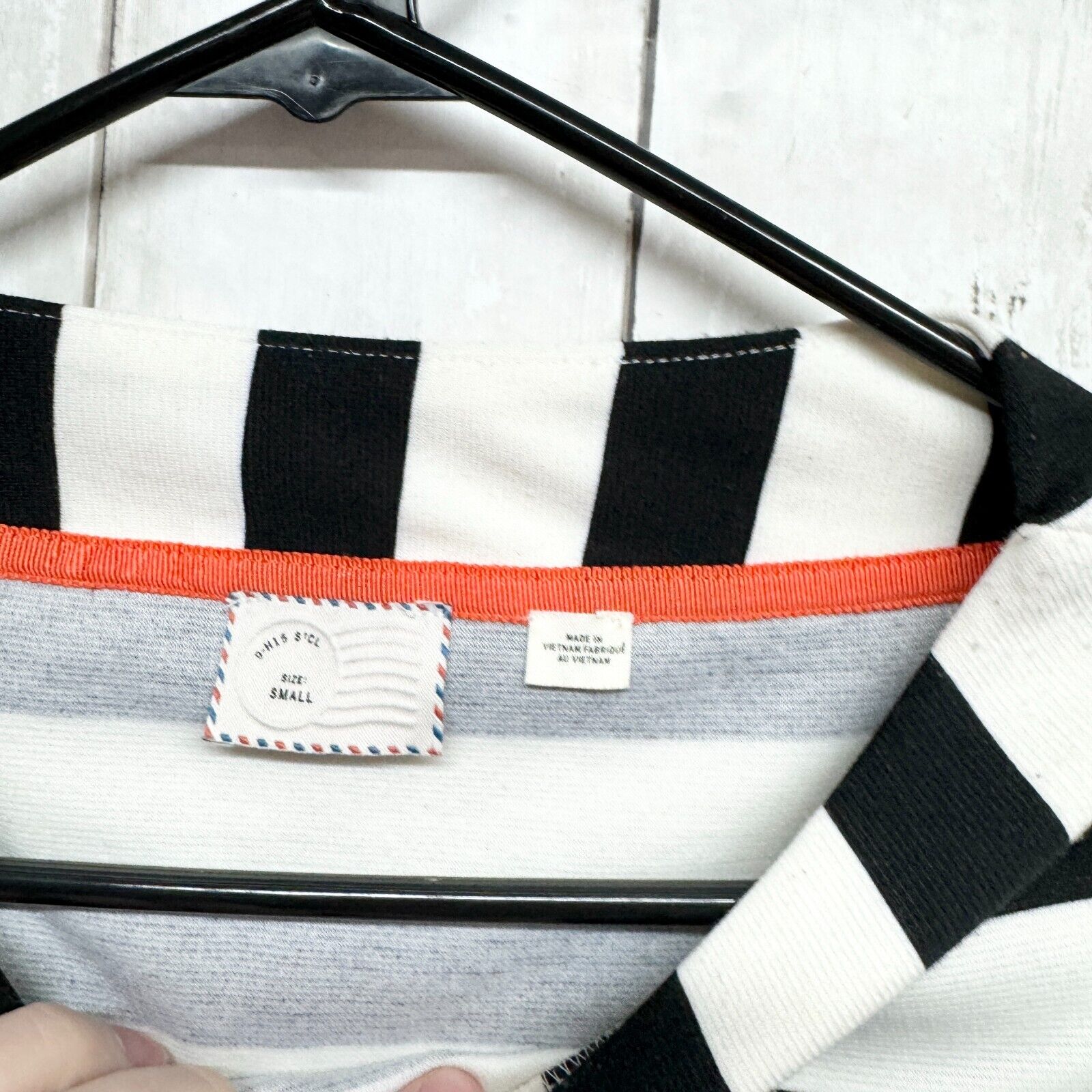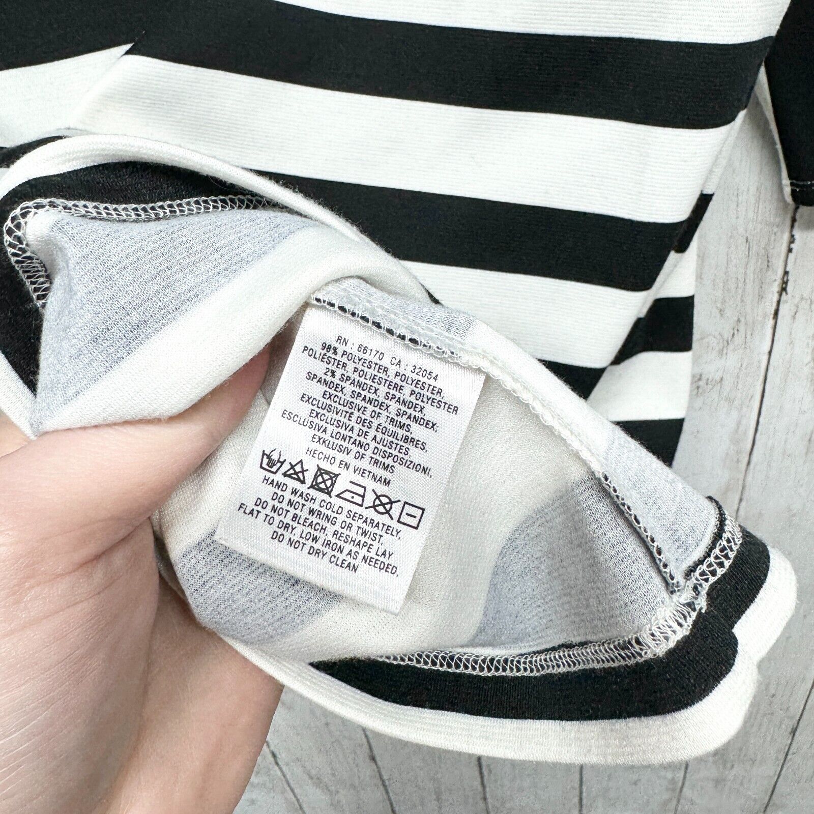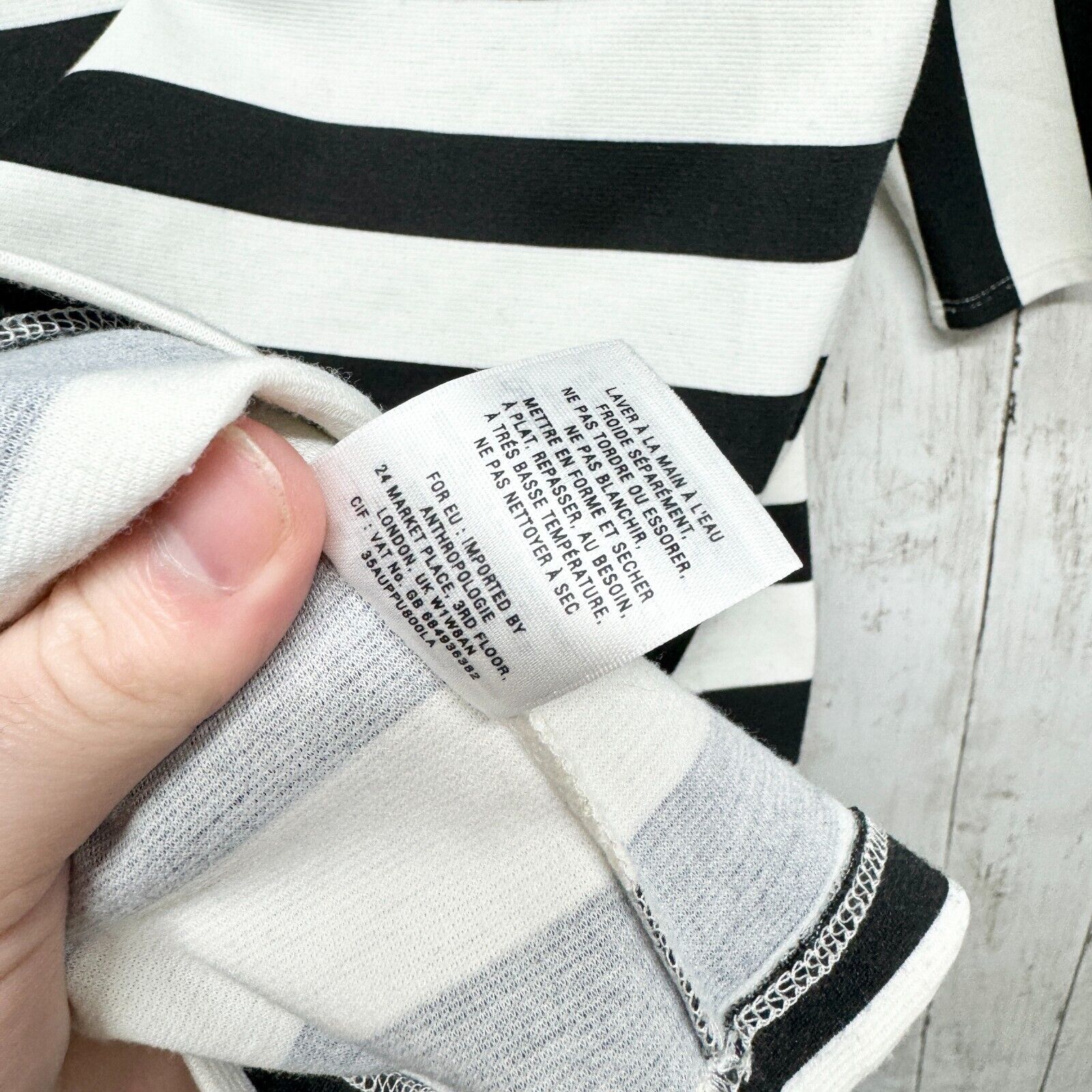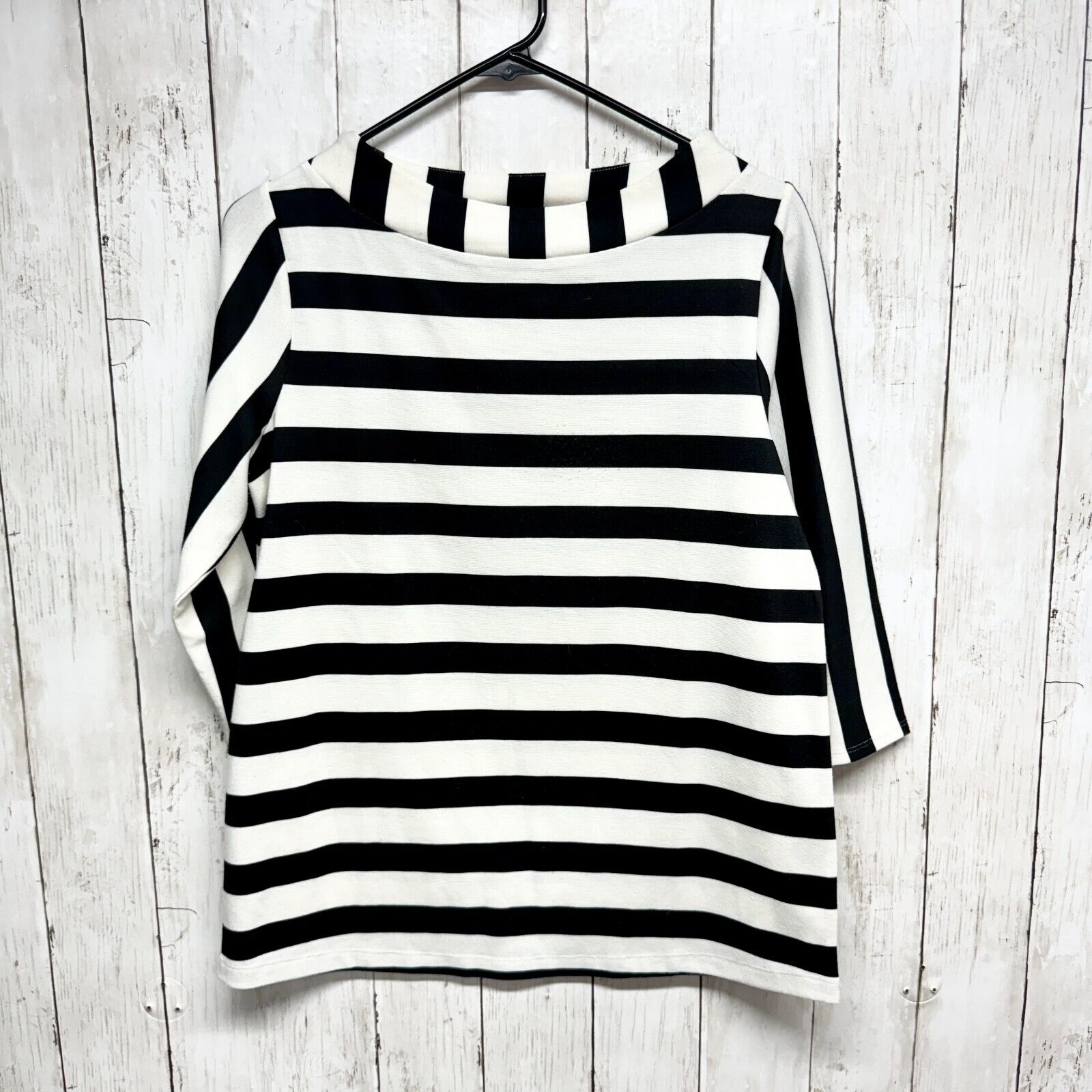 ANTHROPOLOGIE Top Women Size Small Mock Neck 3/4 Sleeve Black & White Polyester