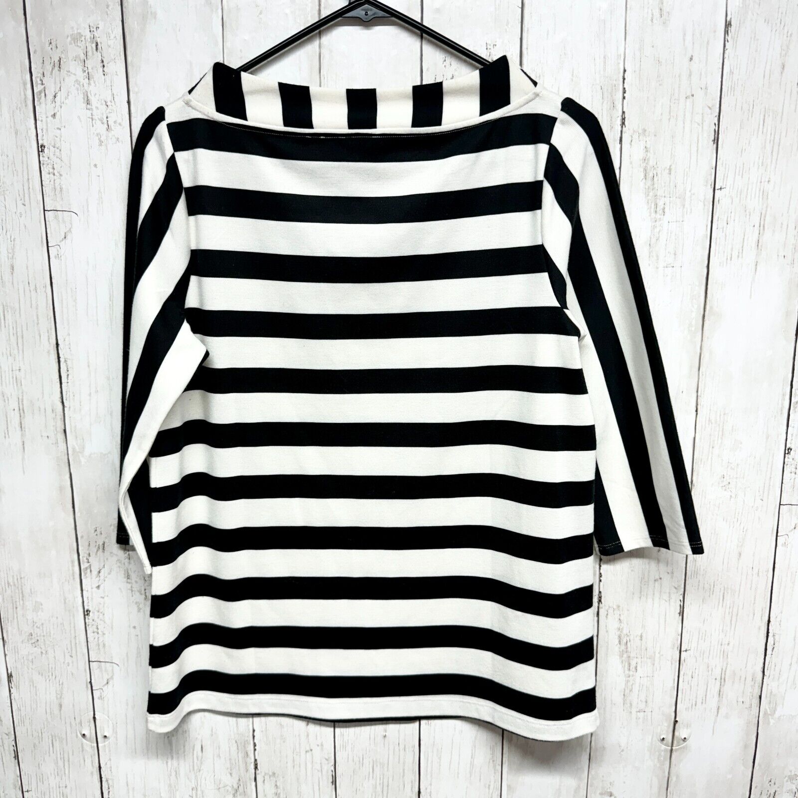 ANTHROPOLOGIE Top Women Size Small Mock Neck 3/4 Sleeve Black & White Polyester sleek, modern, versatile, monochrome, lightweight, stretchy, sophisticated, timeless