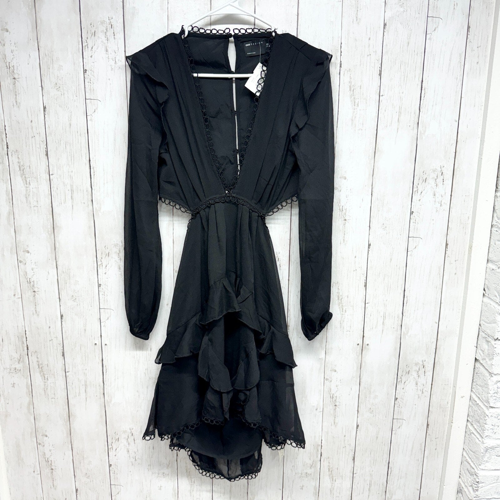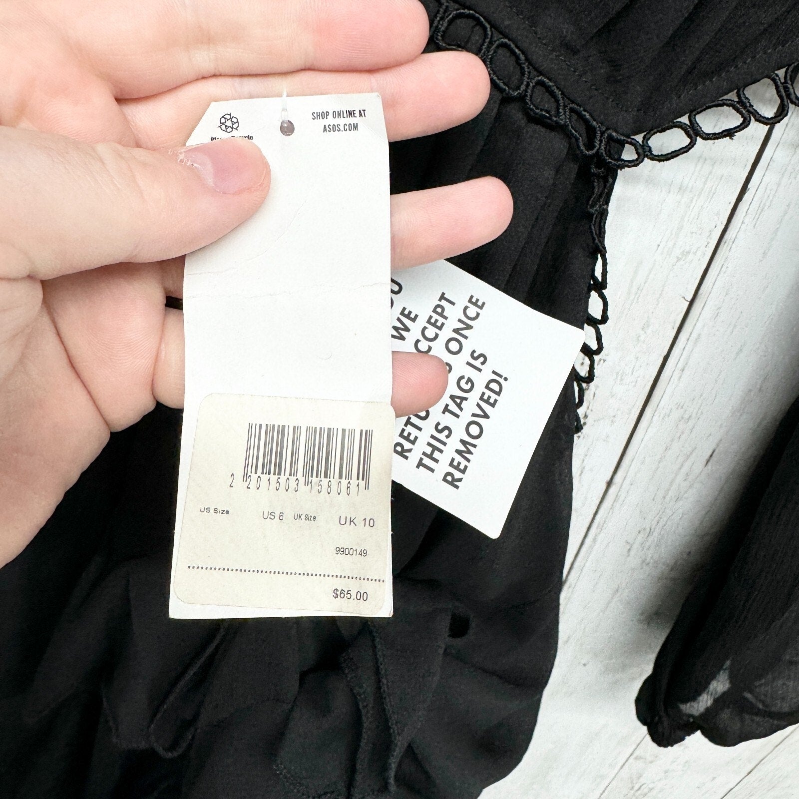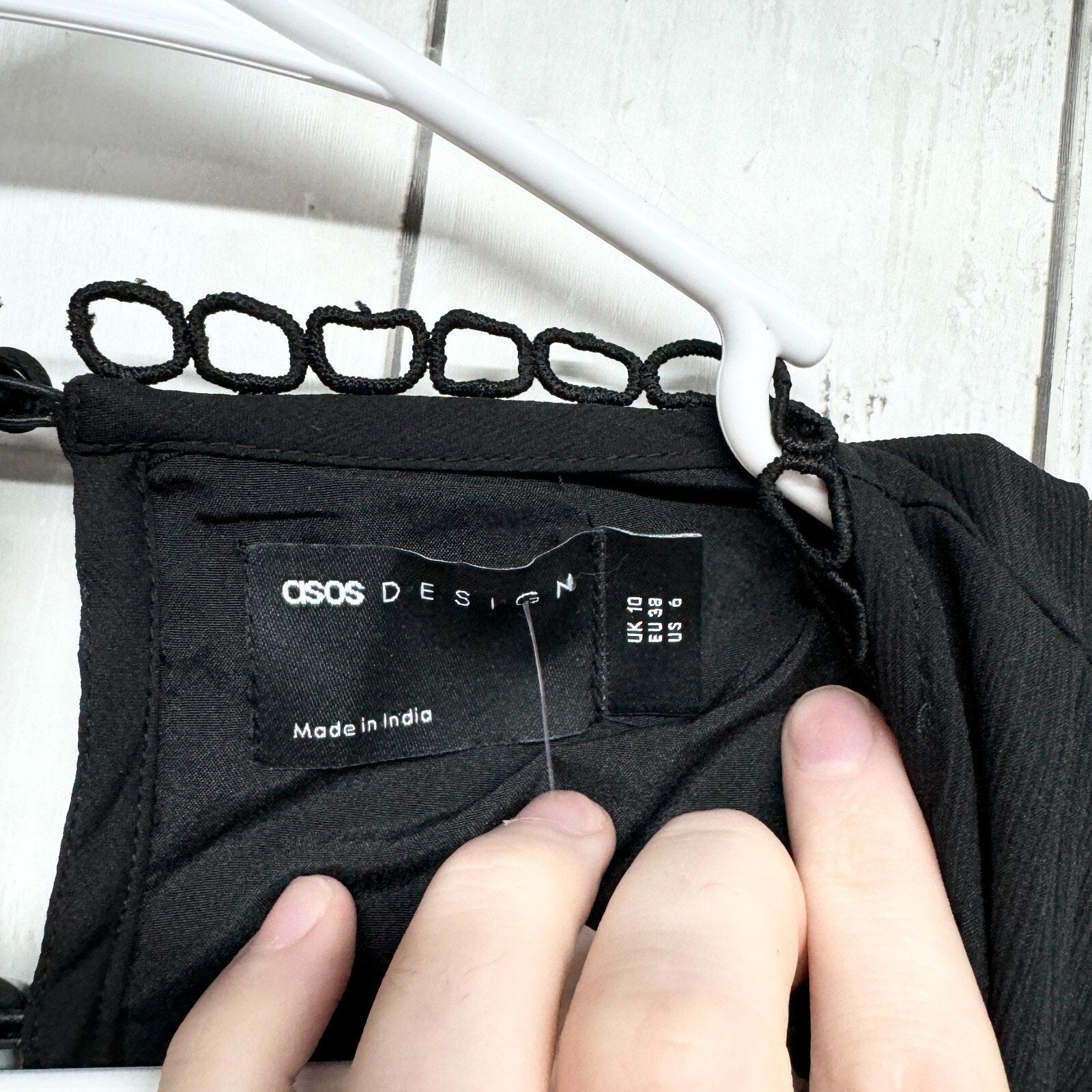 ASOS Dress Women Size 6 Mini Laced Open Black Pleated Ruffled Black Summer