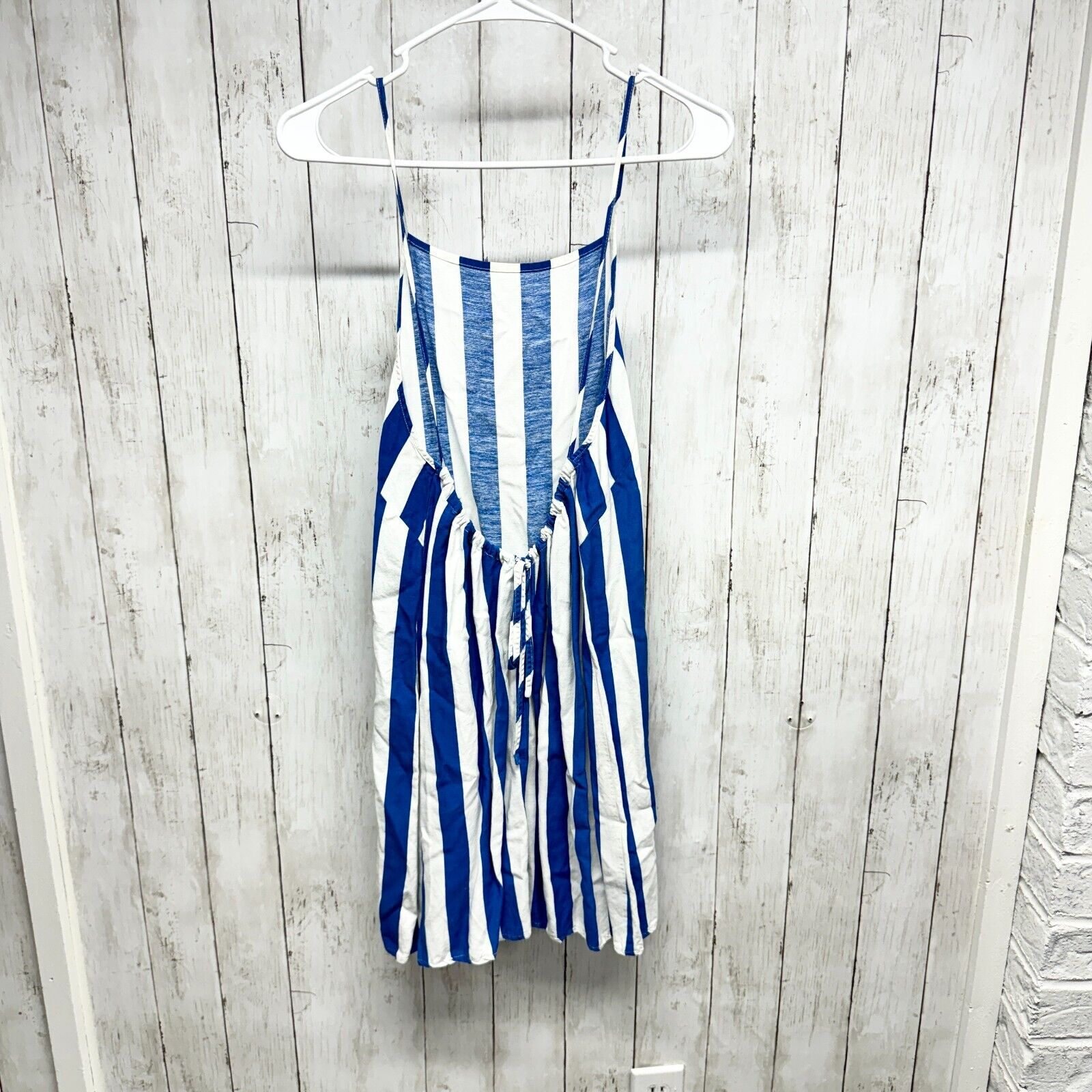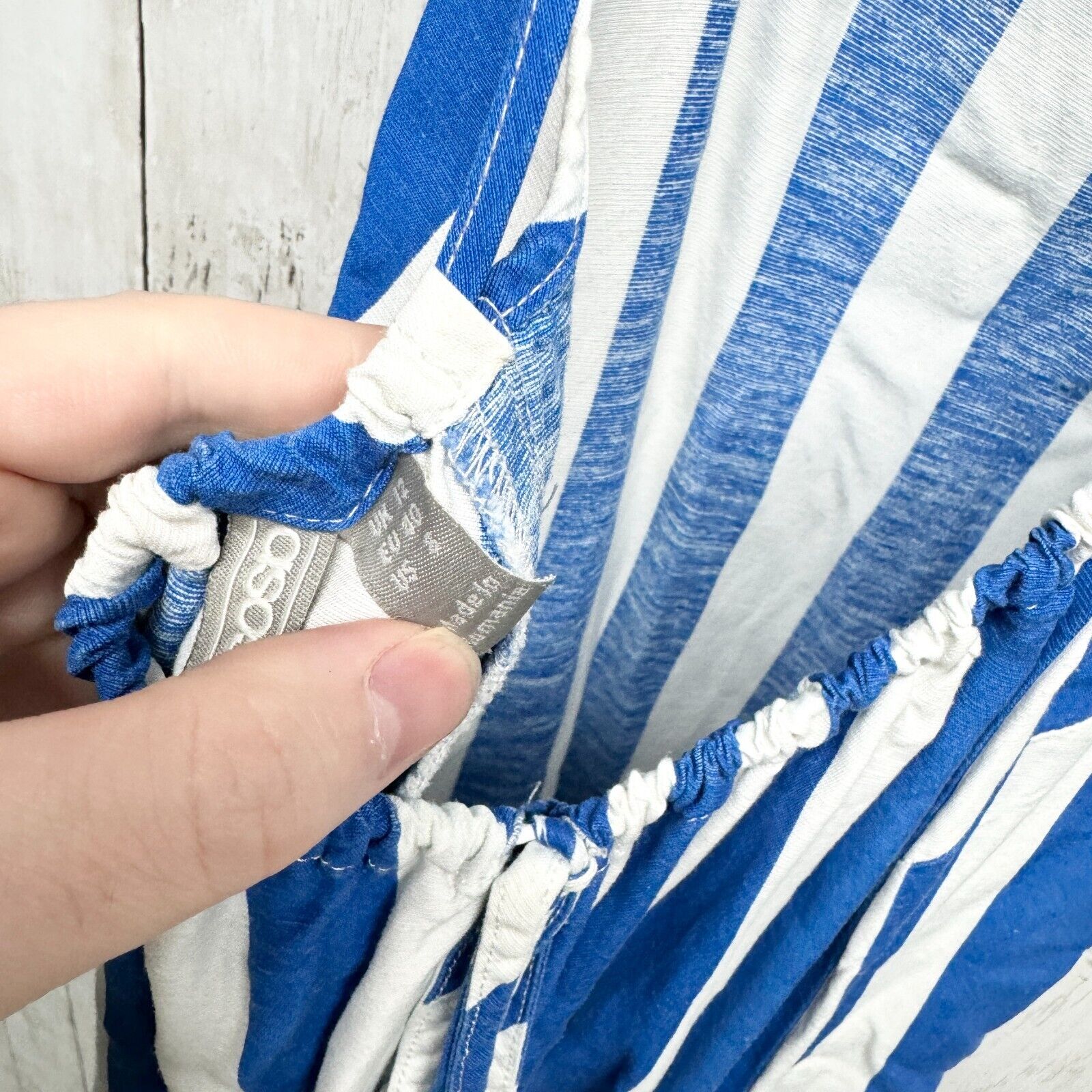 ASOS Dress Women Sz 8 Curve Blue Striped Midi Tiered Sleeveless Beach Open Back embroidered, paisley, crop, raw hem, floral, boho, vintage, distressed, mid-rise, trendy
