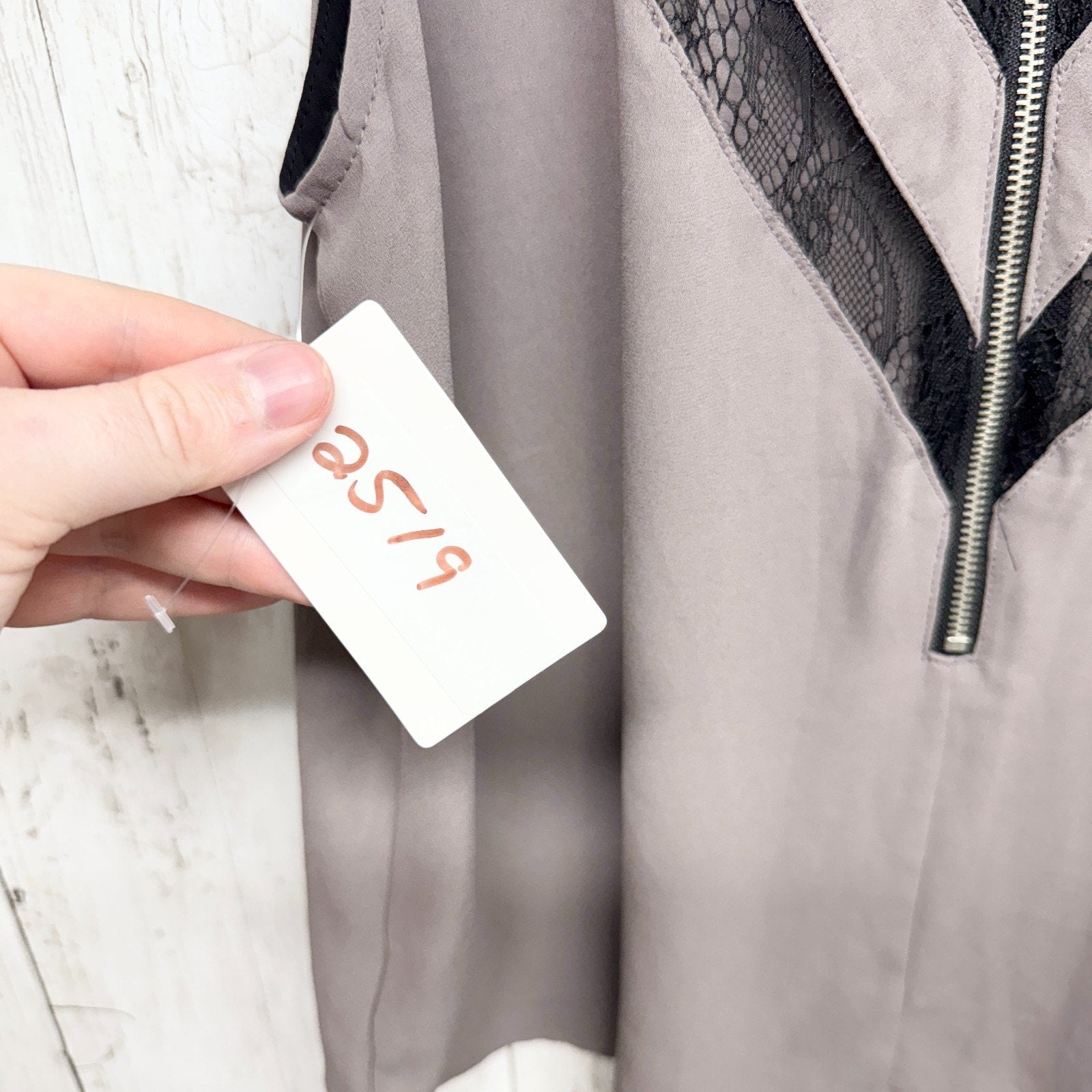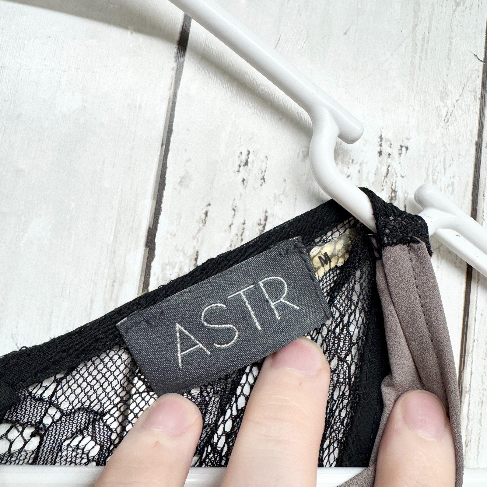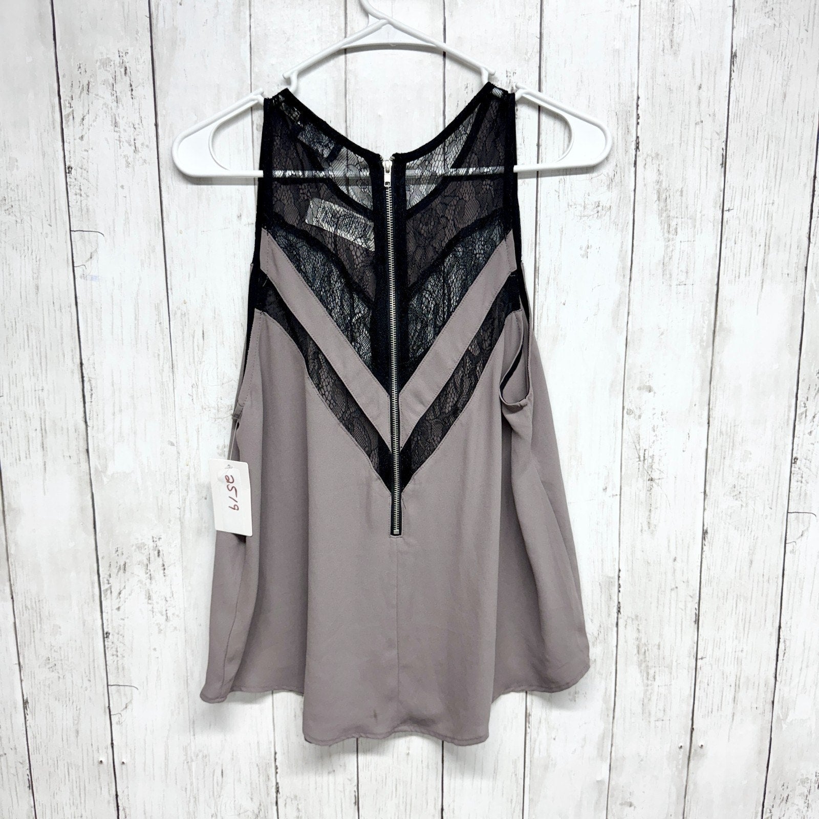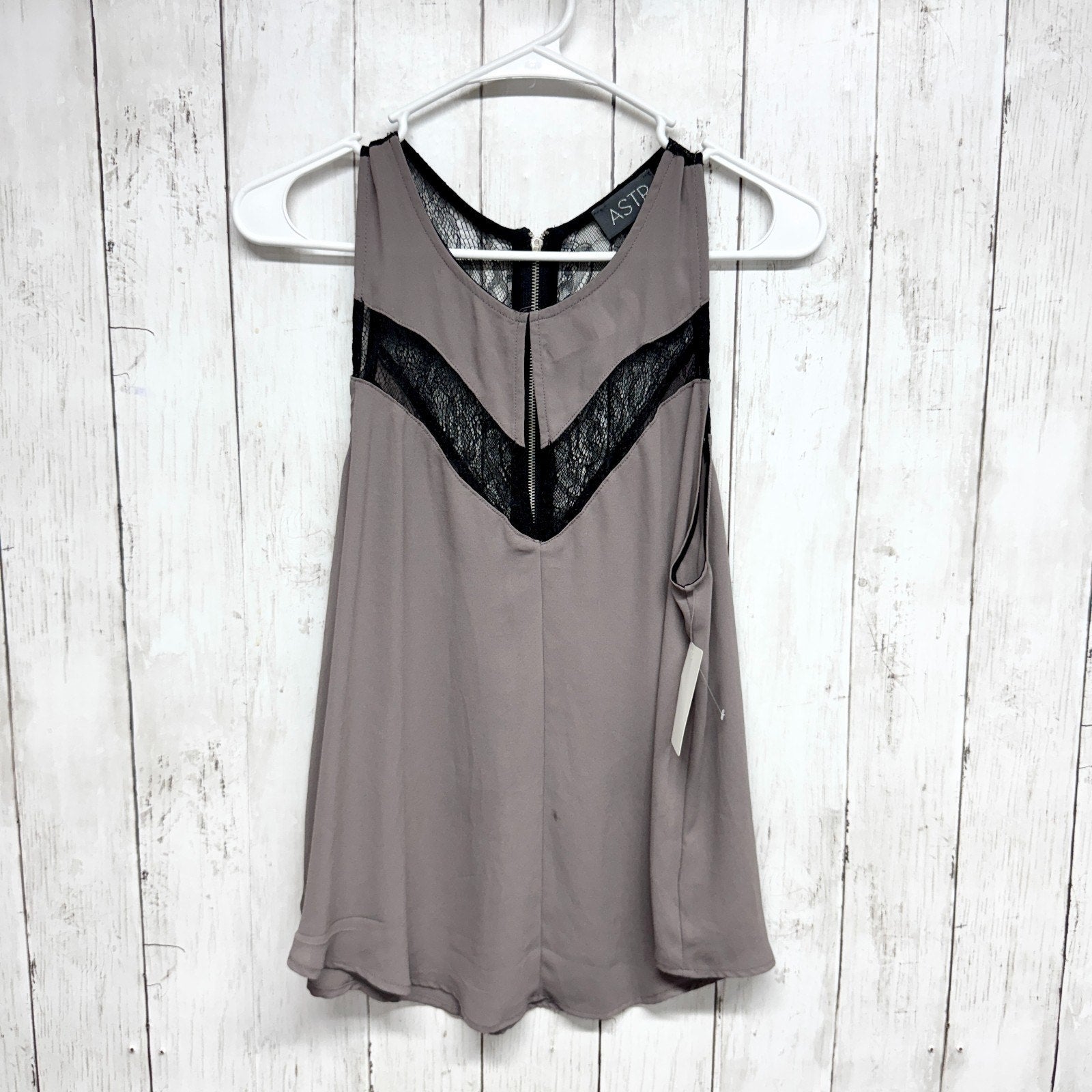 ASTR Blouse Women Size Medium Gray Black Lace Inset Scoop Neck Sleeveless Top
