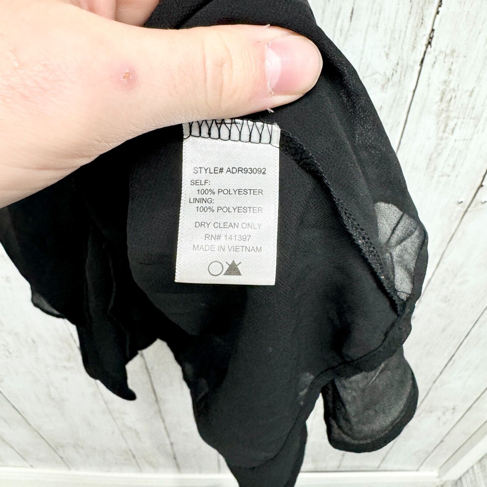 Please refer to the images for dimensions, size labels, and care/content information.