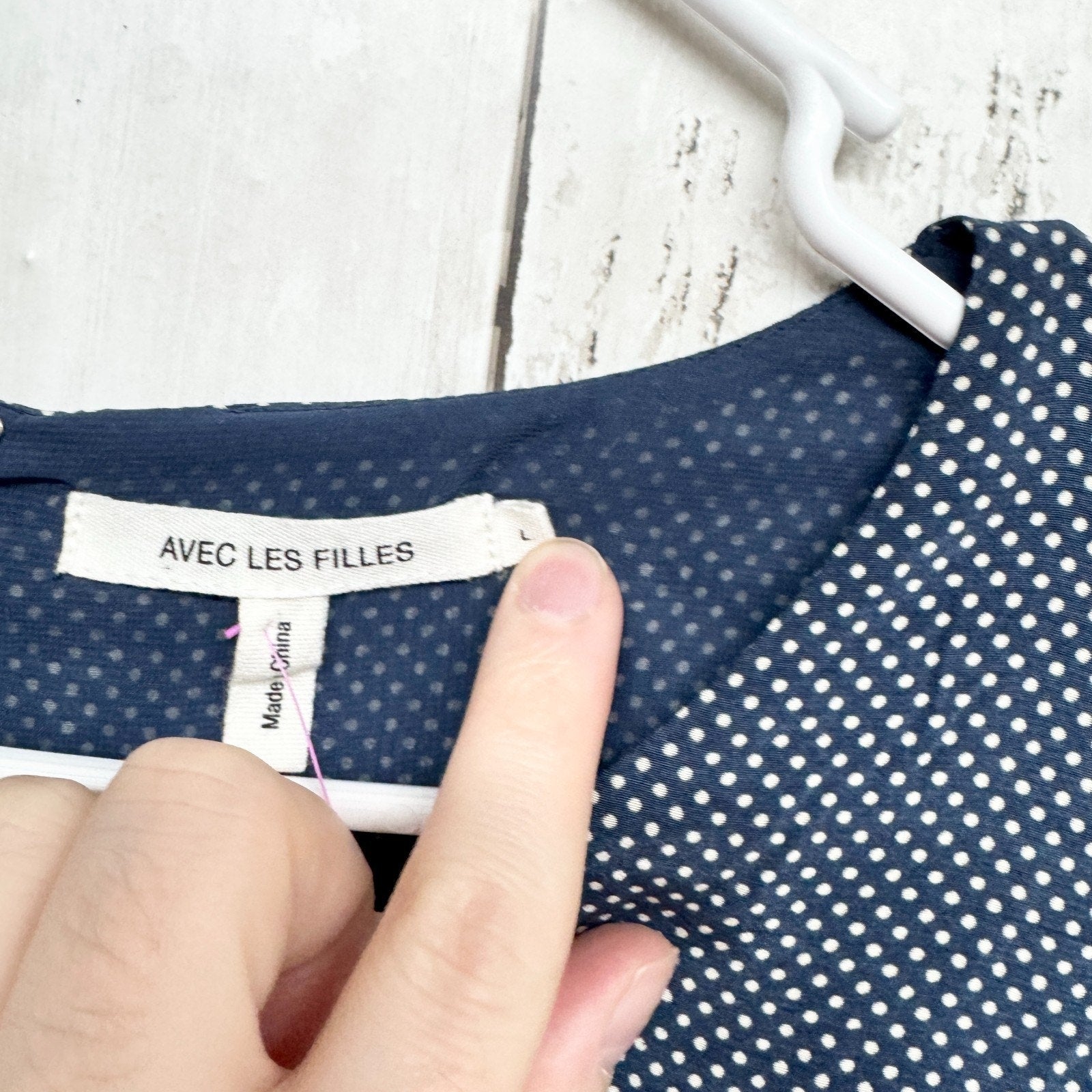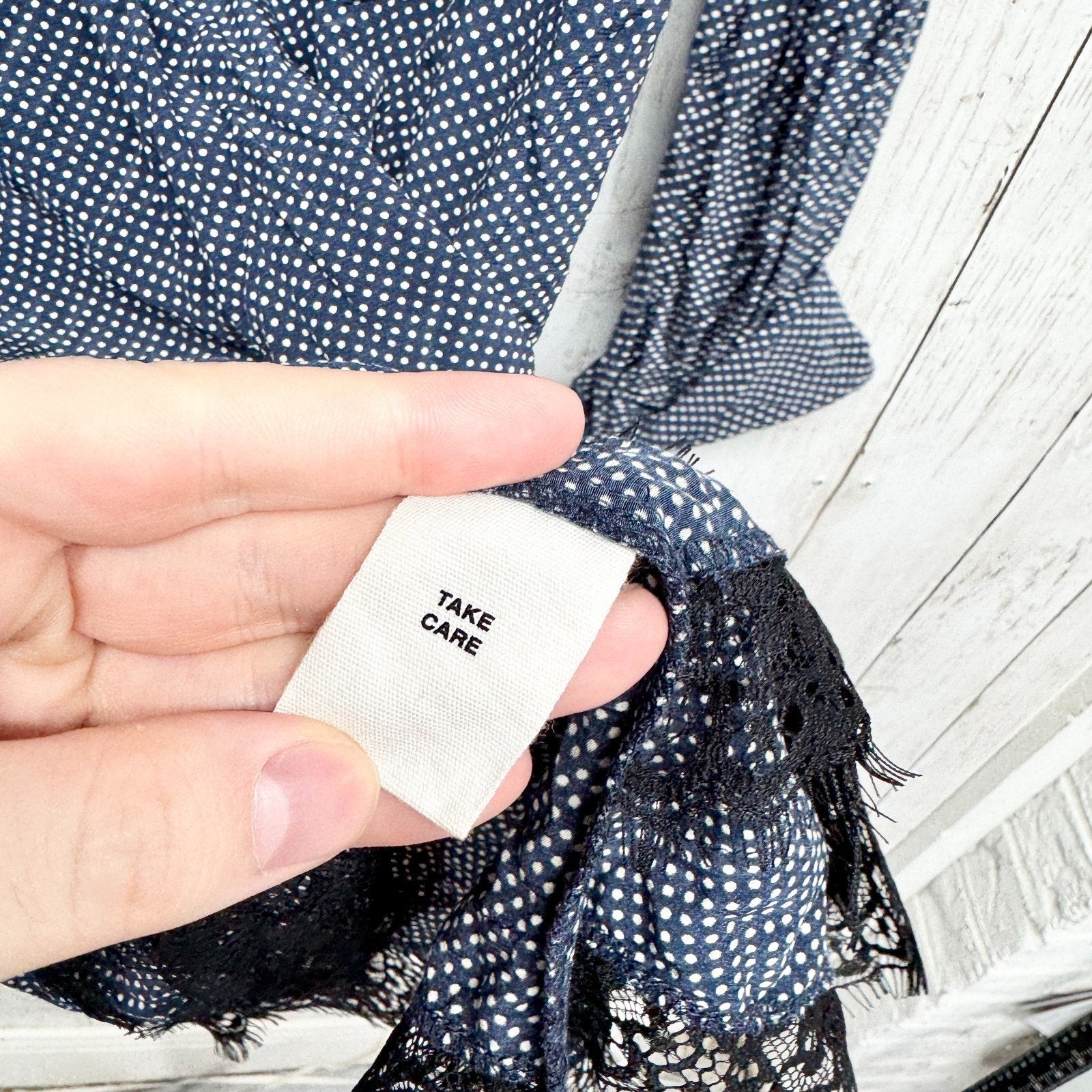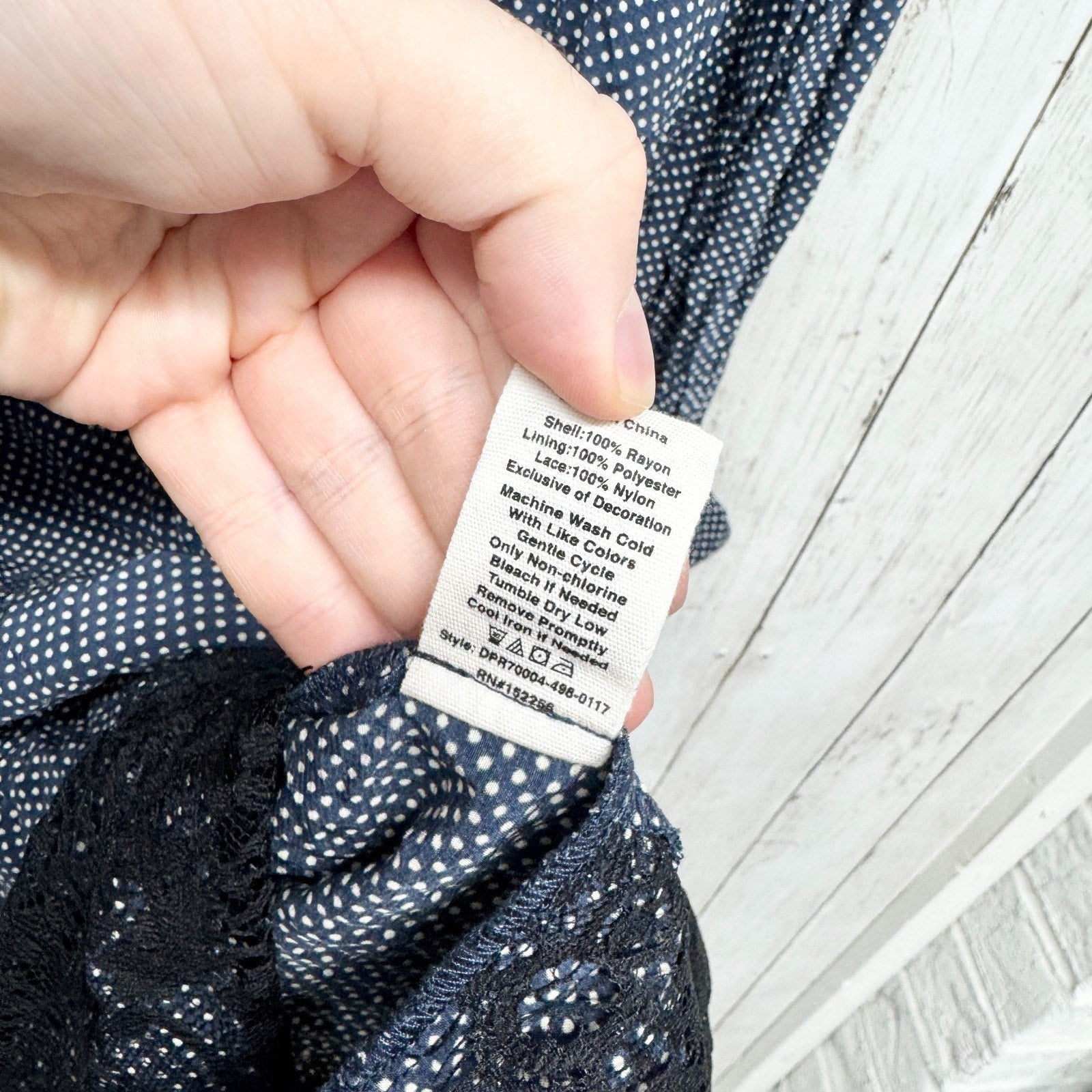 Avec Les Filles Dress Women Size Large Polka Dot Lace Trim Long Sleeve Mini Zip