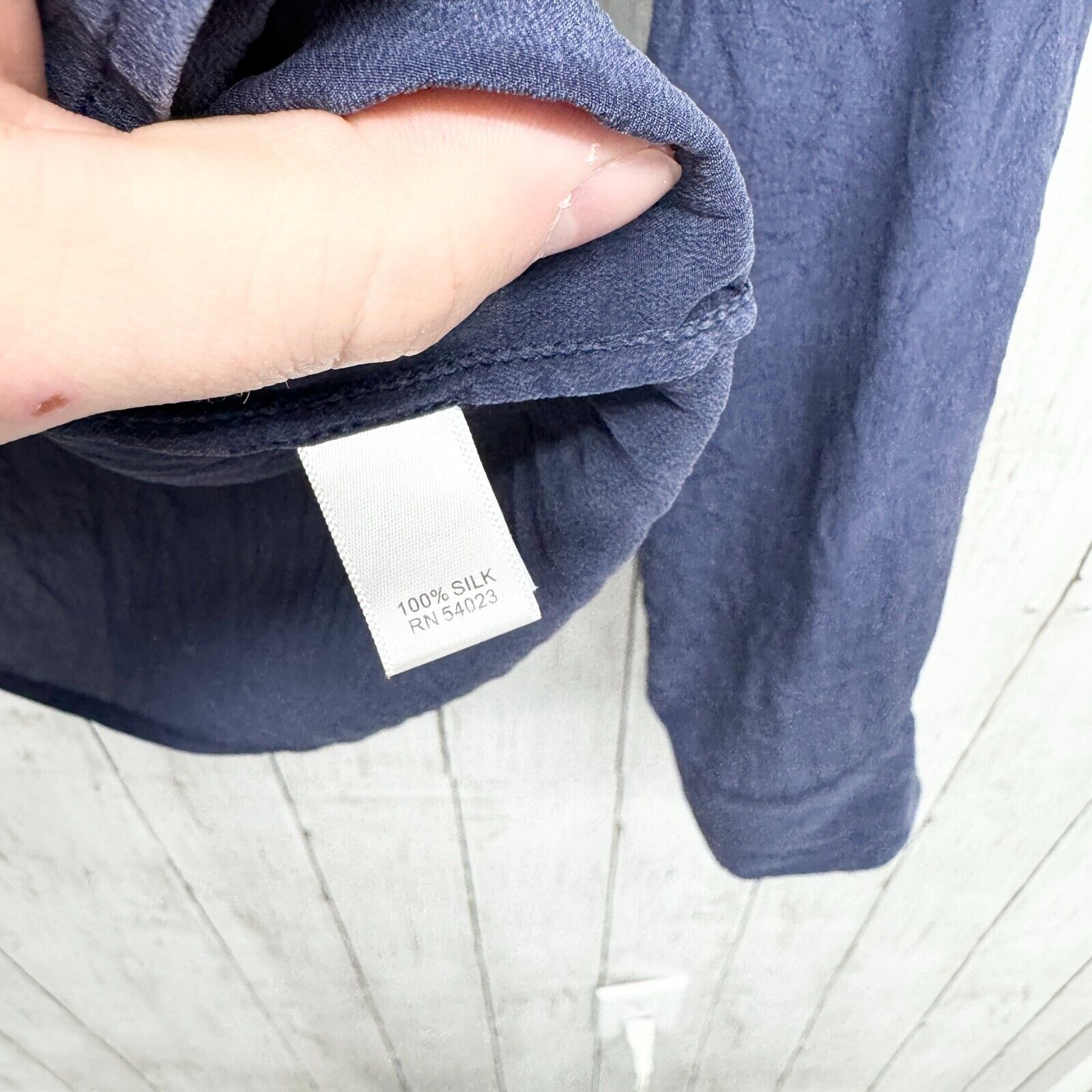 Banana Republic Women’s Size Small Long Sleeve Blue 100% Silk Open Neck Blouse