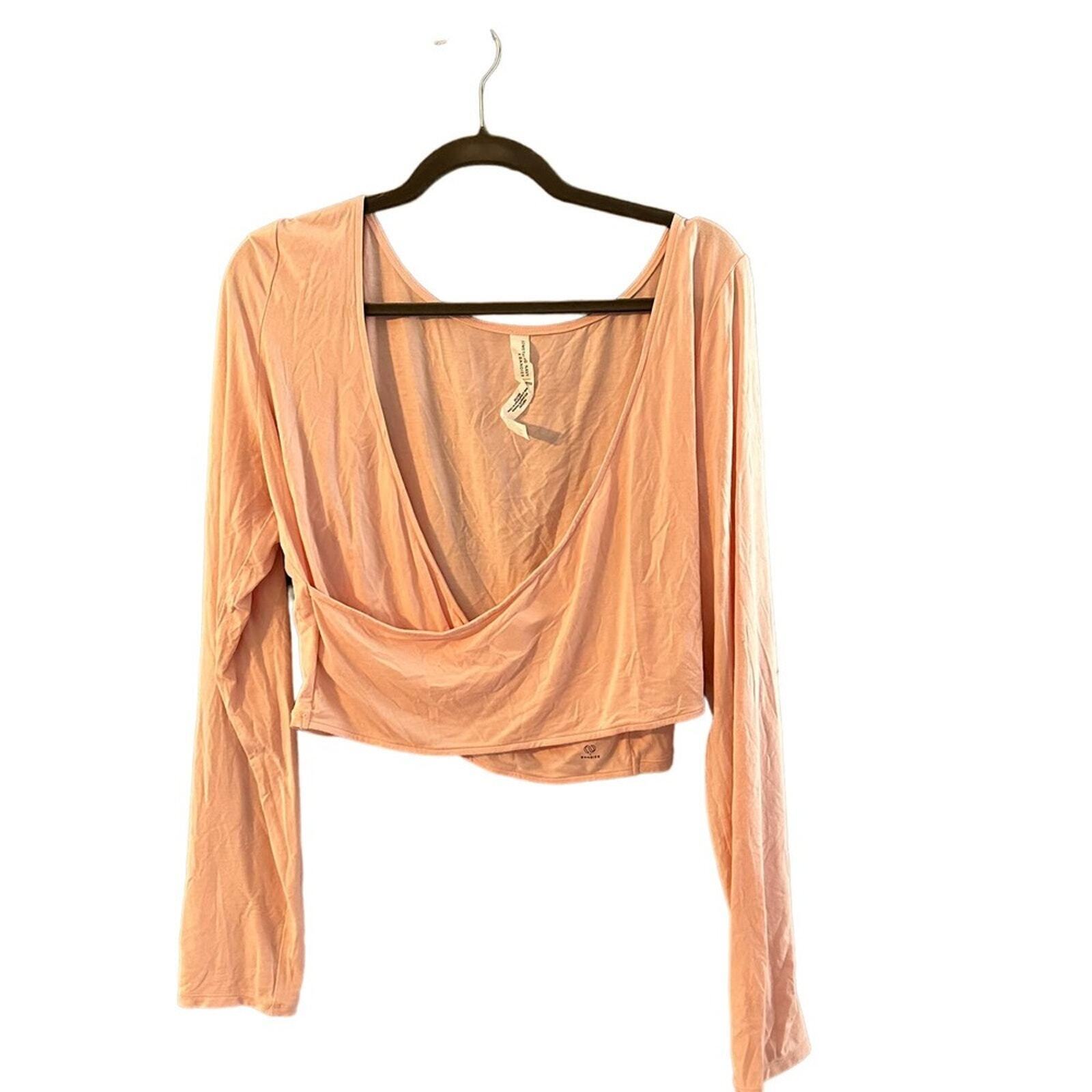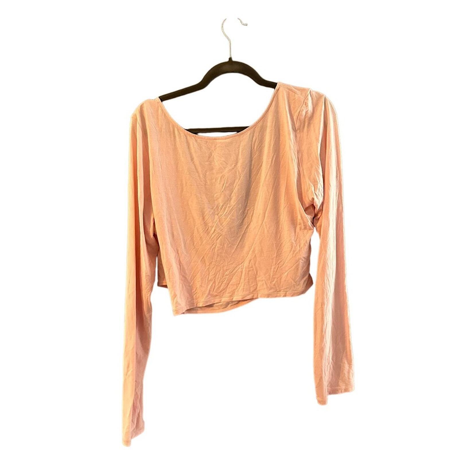 BANDIER X SOMETHING NAVY Top Women Size 2XL Cropped Crossover Pale Blush Pink Long Sleeve apparel, top, trendy, stylish, cropped, lightweight, feminine, comfortable, casual, contemporary, versatile, chic, modern, breathable, soft