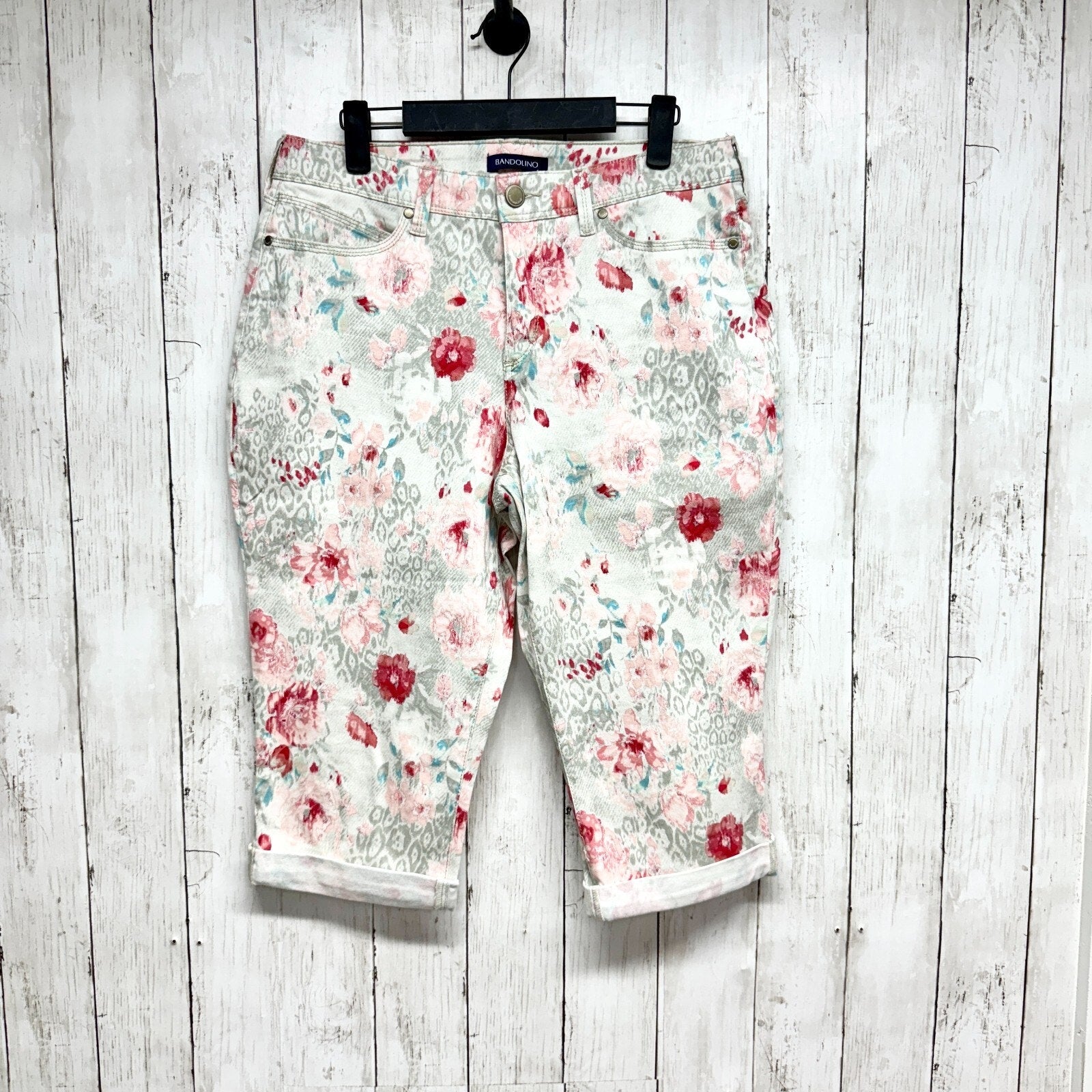 Bandolino Shorts Women Size 10 Simone Skimmer Floral Bermuda Cuffed Hem Zip Fly