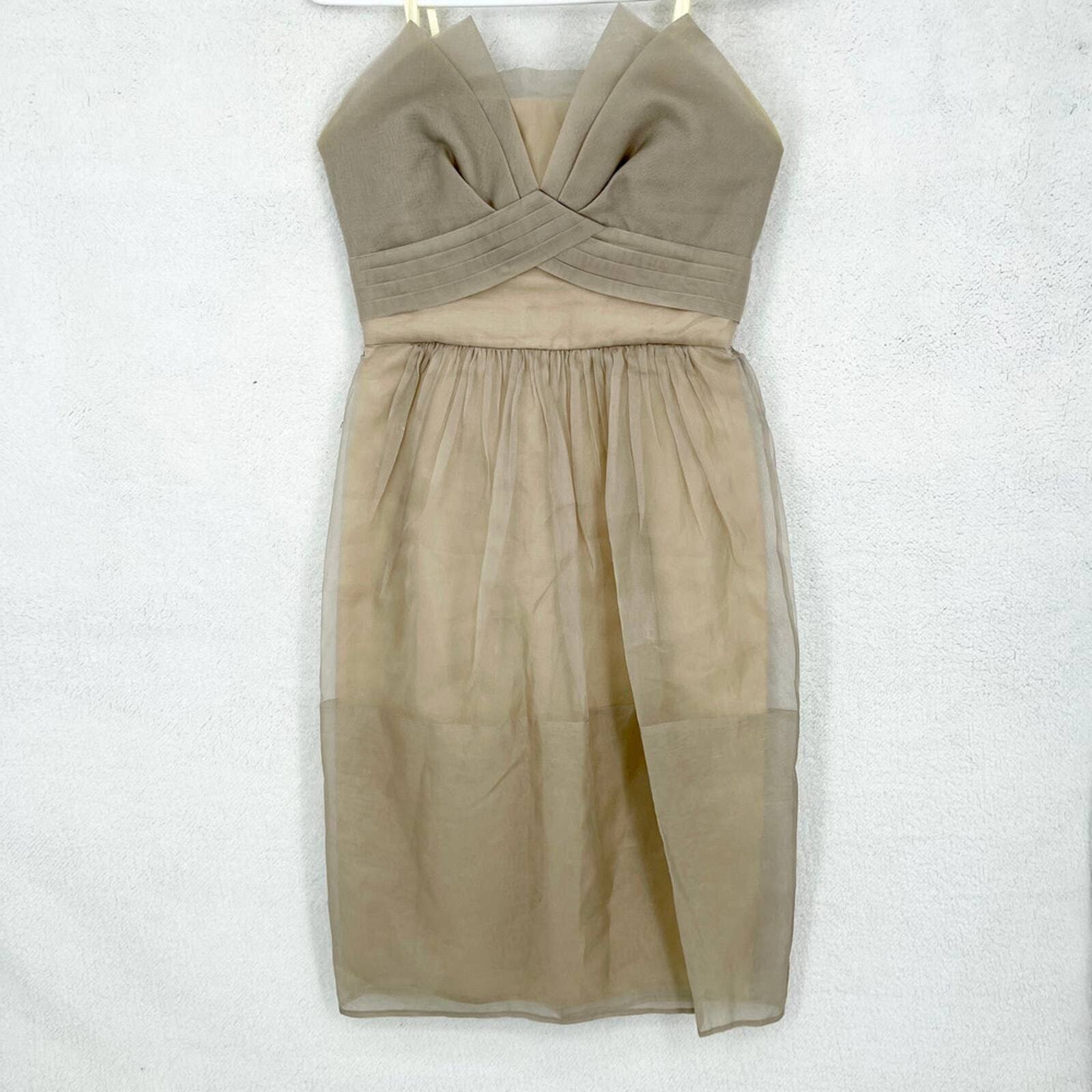 BCBGMAXAZRIA Runaway Silk Strapless Organza Cream Mini Dress Size 2