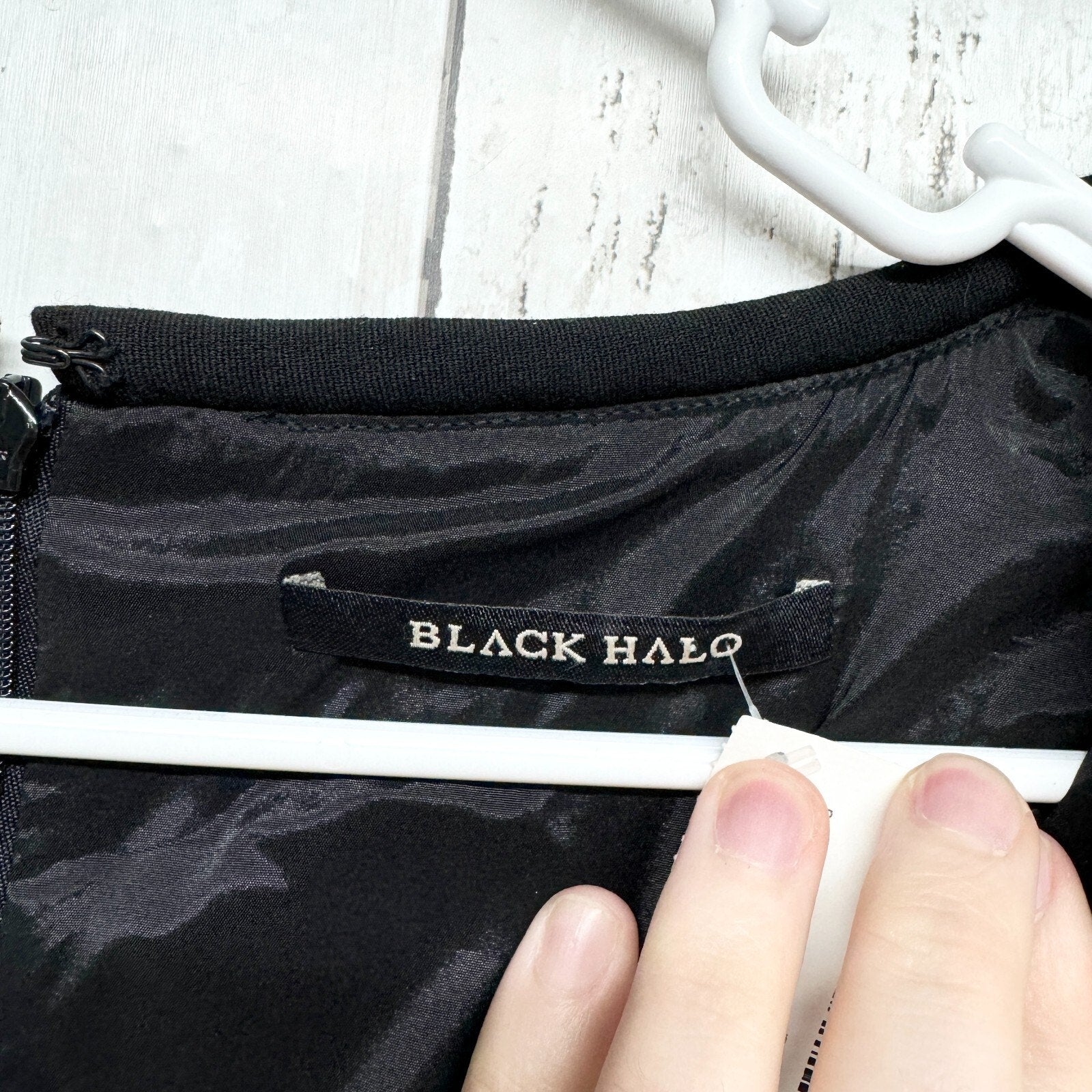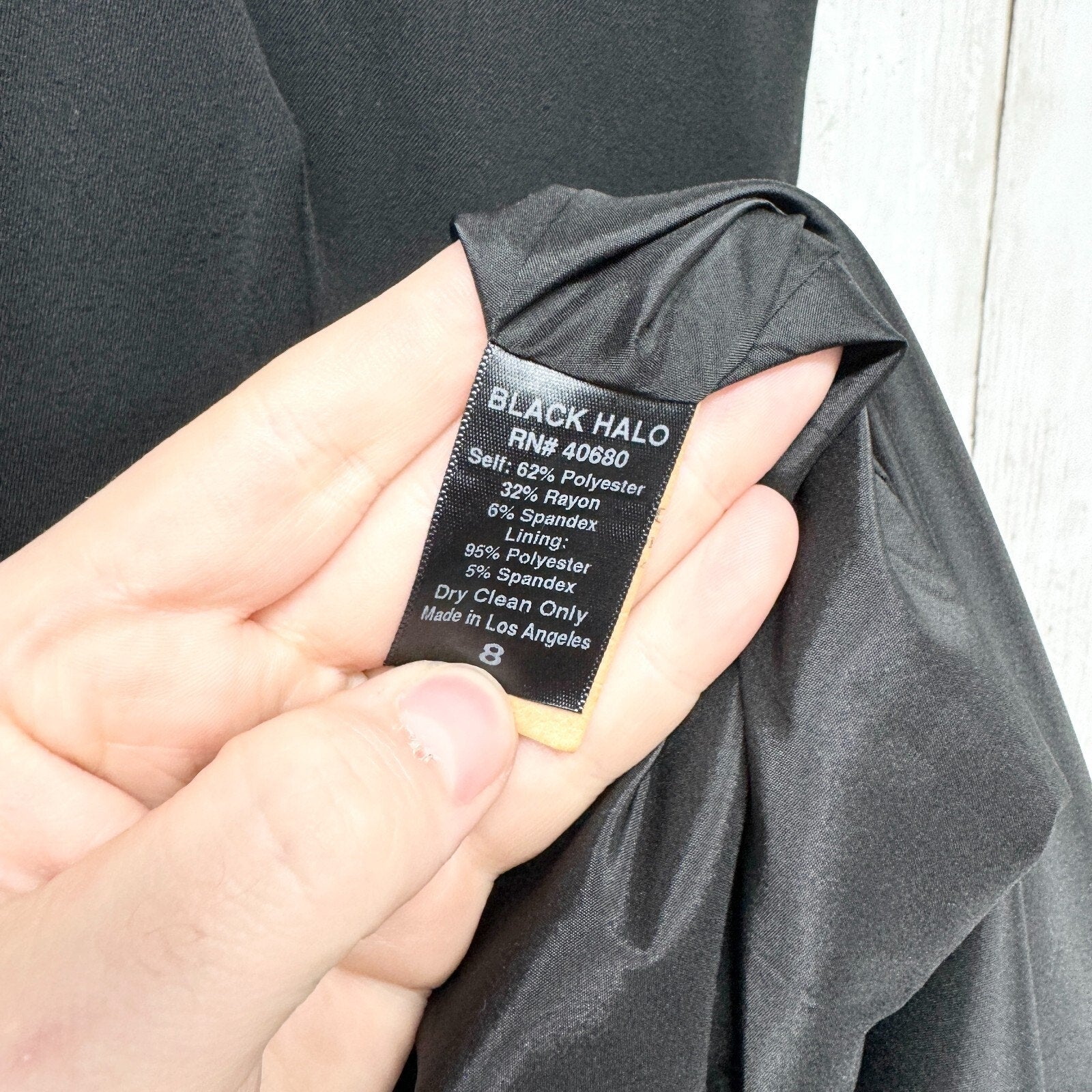 BLACK HALO Dress Women Size 8 Black Sleeveless Side Neckline Mini Pleated