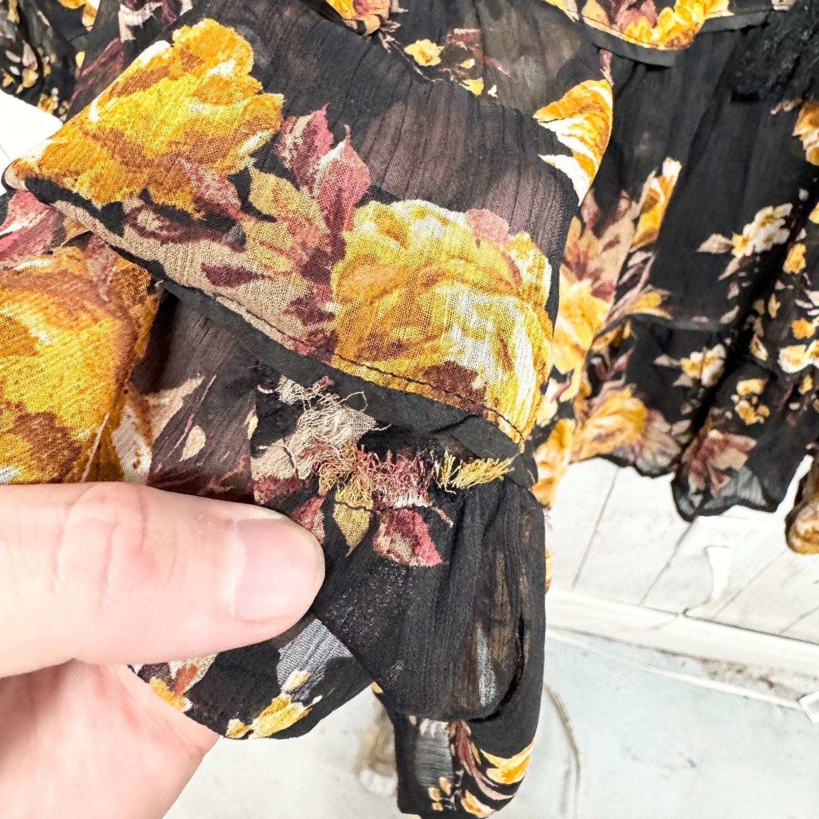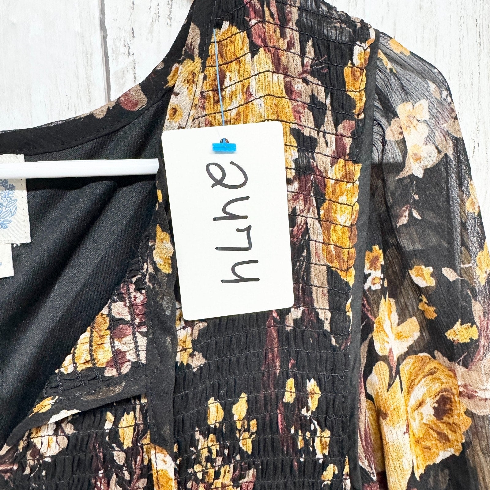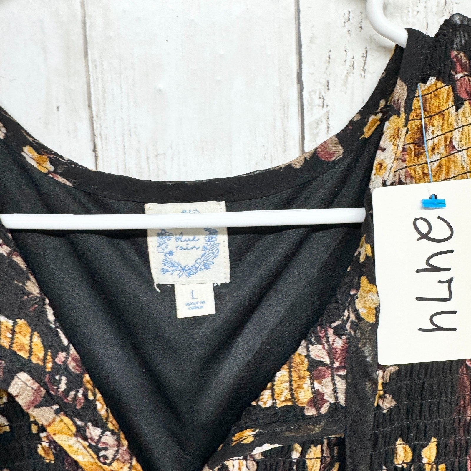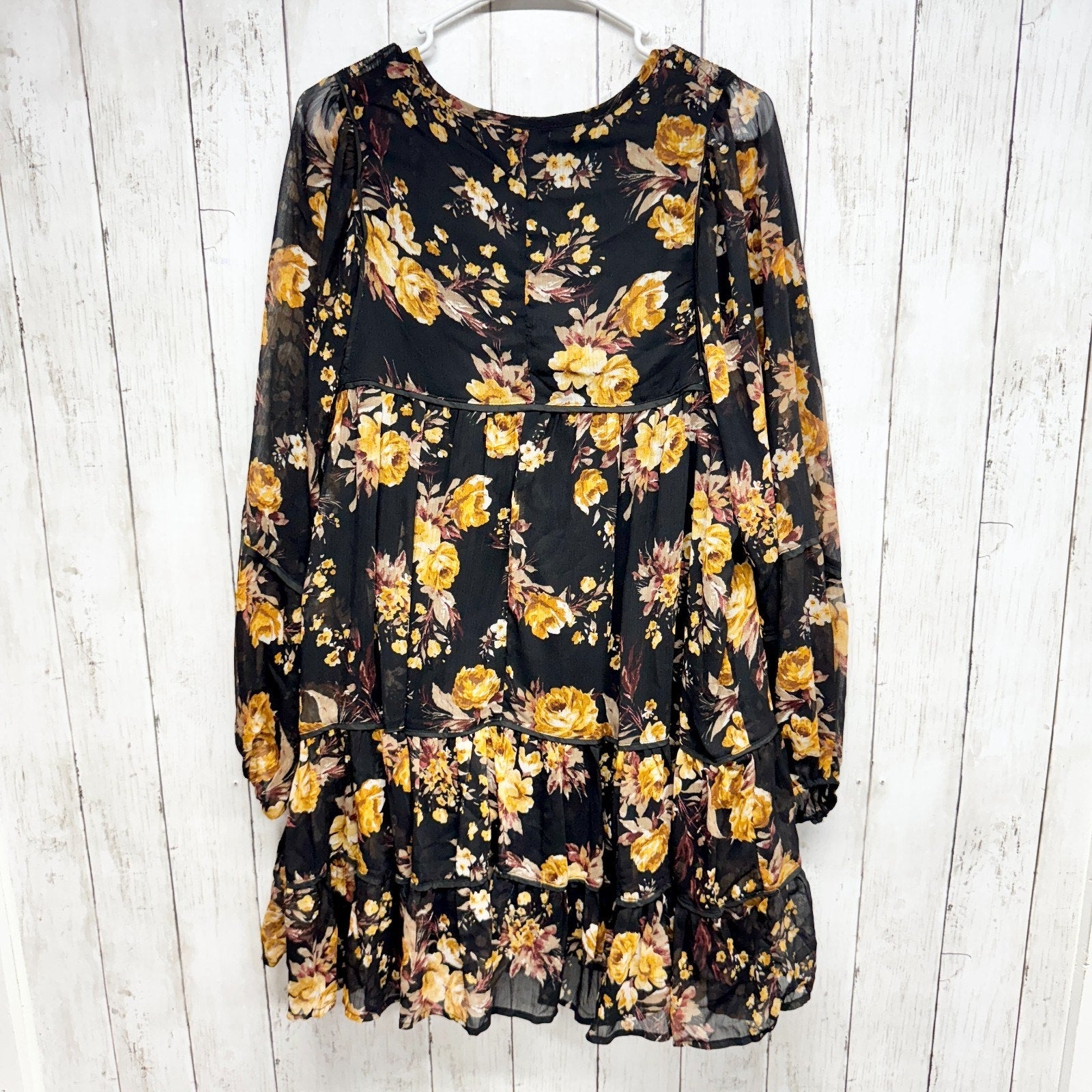 Blue Rain Dress Women Size Large Floral Ruffle Smocked Long Sleeve Swing Mini