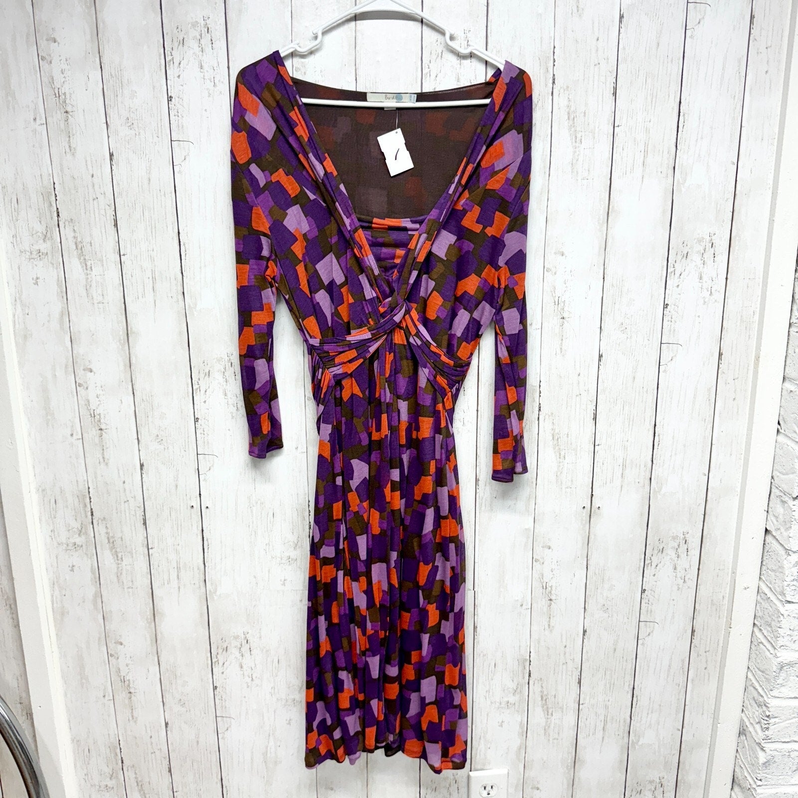 BODEN Dress Women Size 10R Midi Long Sleeve Twisted Wide Open Neck Geometric