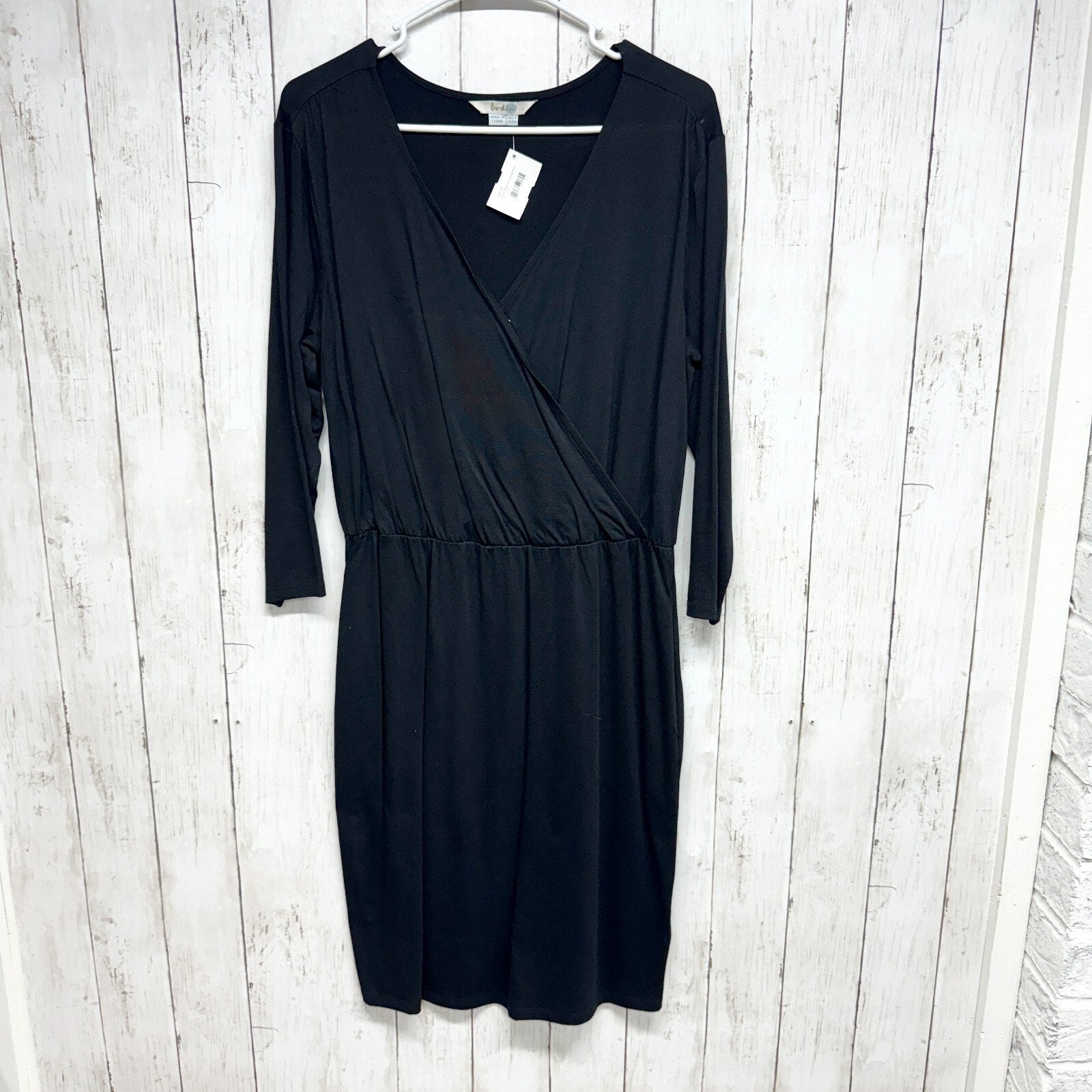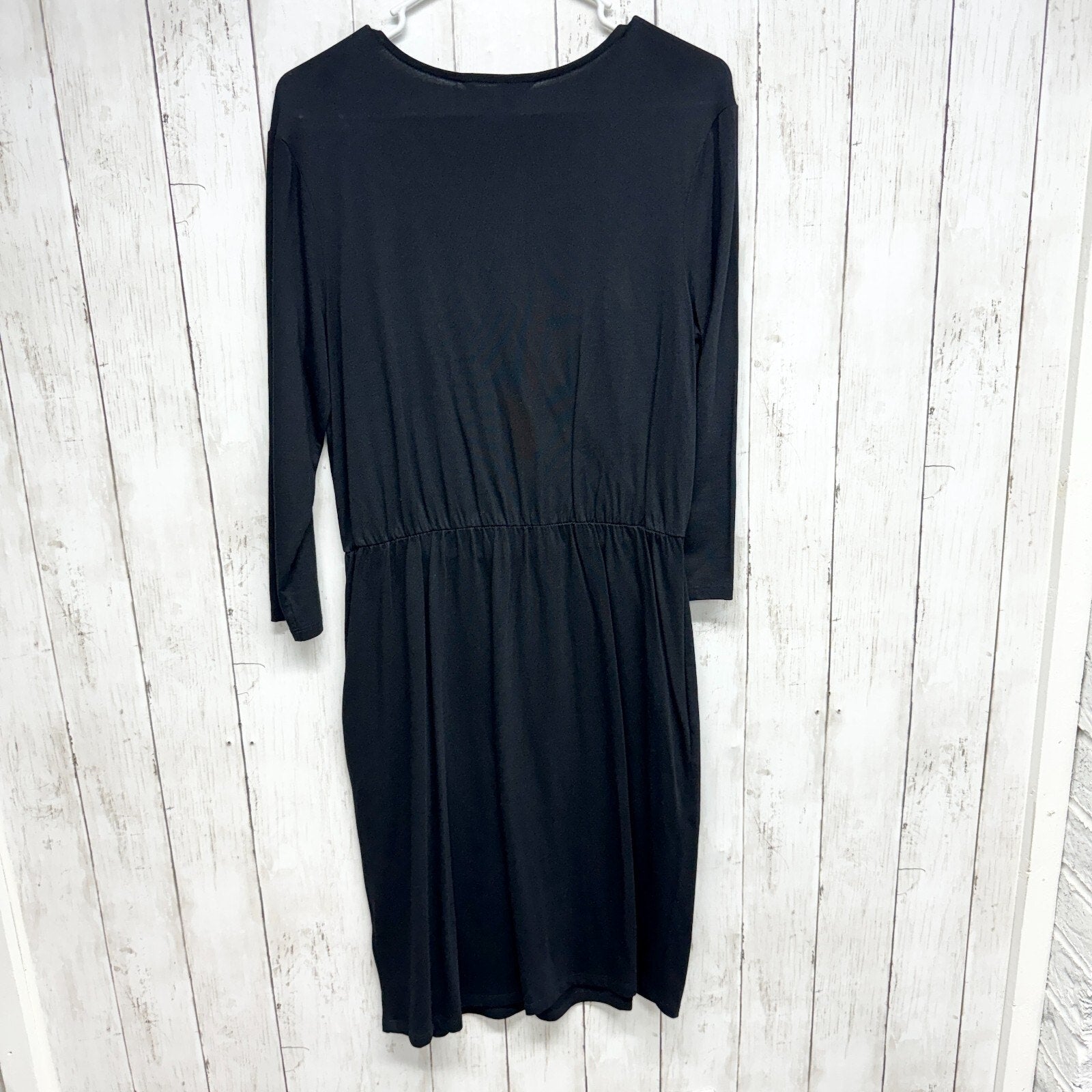 Boden Dress Women Size 8R Long Sleeve Crossover Mini Cotton V Neck Pleated Black