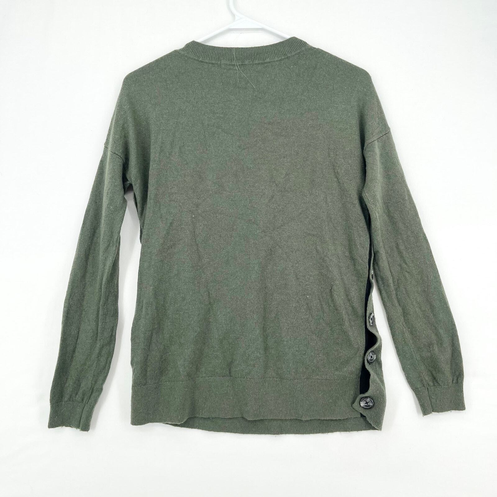 Boden Green Side Button Long Sleeve Crewneck Knit Sweater Size XS