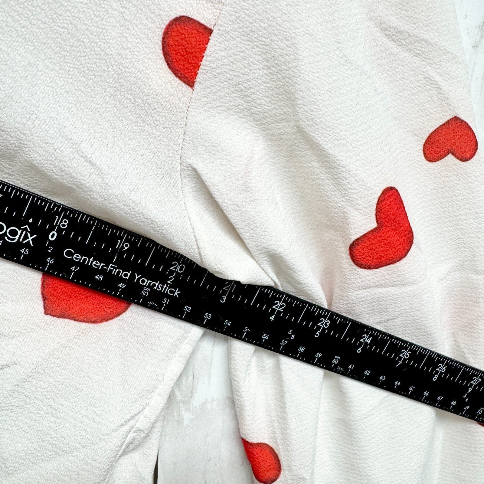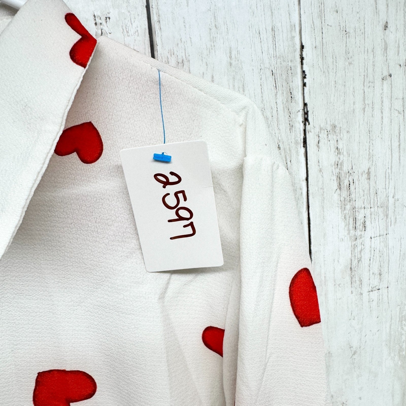 Boohoo Shirt Women Chest 42" White Heart Pattern Collared Long Sleeve Button Down Blouse