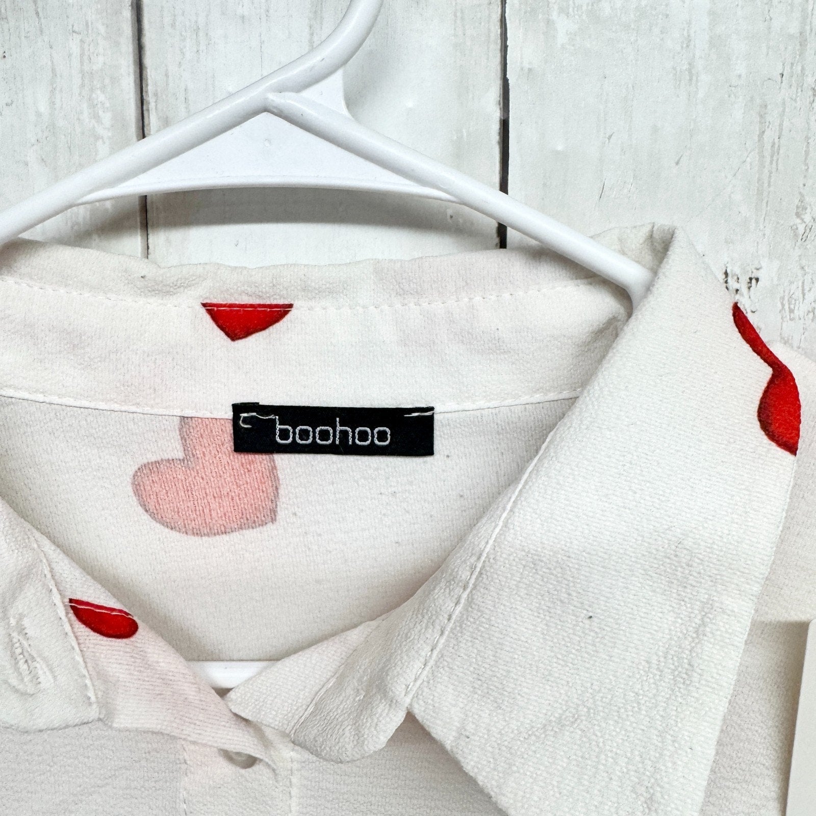 Boohoo Shirt Women Chest 42" White Heart Collared Long Sleeve Button Down Blouse