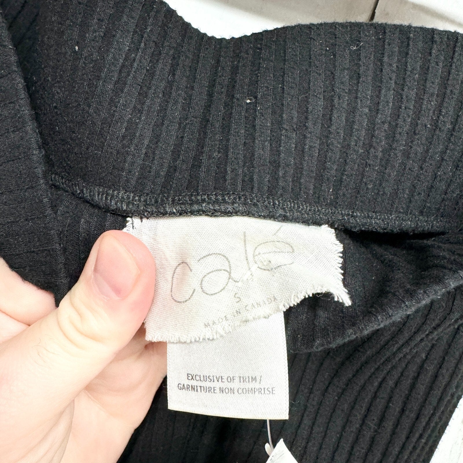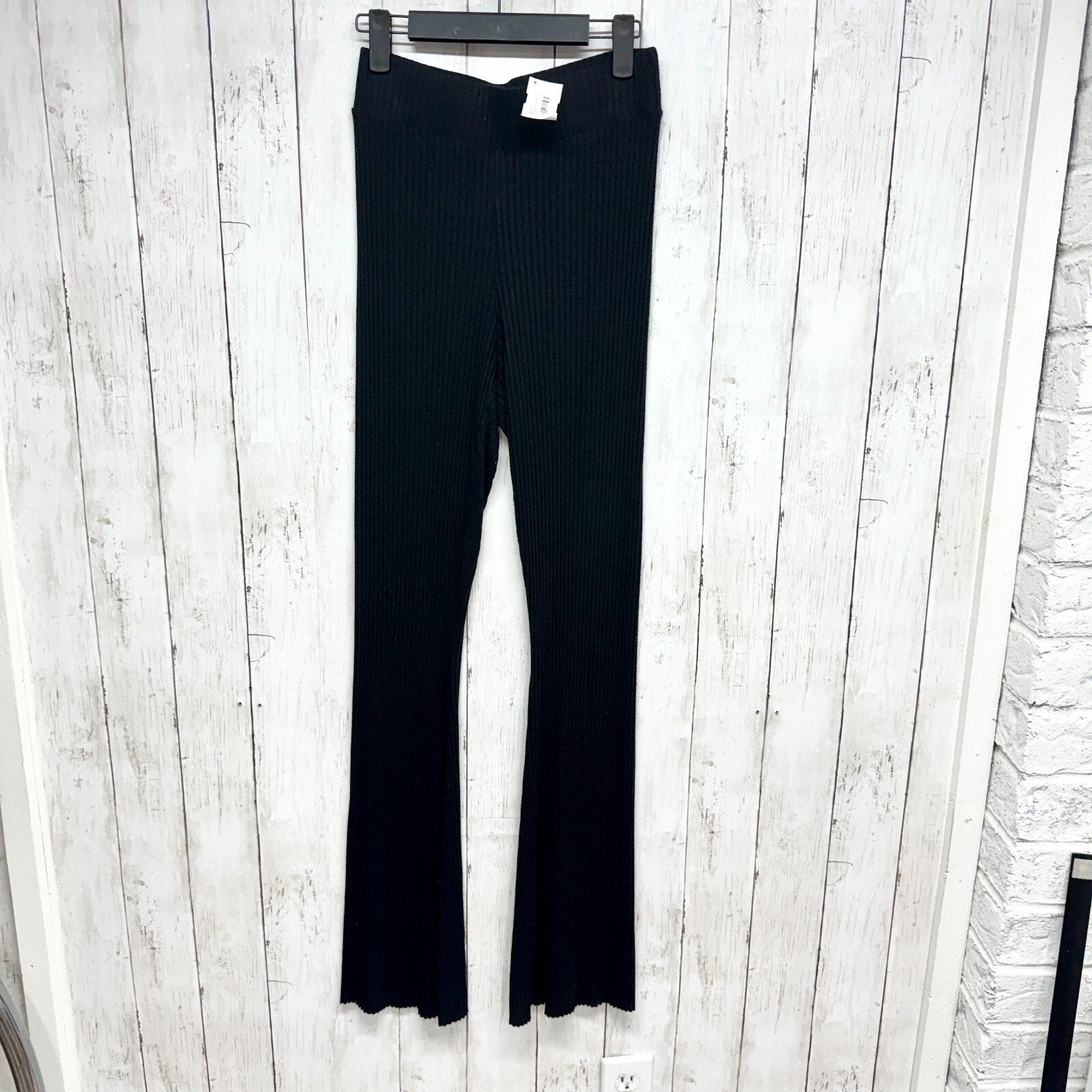 Cale Pants Women Size Small Black Flare Leggings Rib Knit Stretchy Elastic Waist