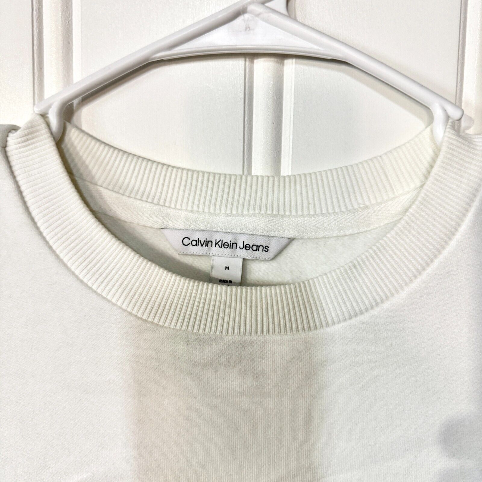 CALVIN KLEIN Sweater Mens Size Medium White Graphic Logo Long Sleeve Slim Fit minimalist, logo, long sleeve, white, men's fashion, slim fit, casualwear, versatile, stylish, comfortable, clean design, contemporary