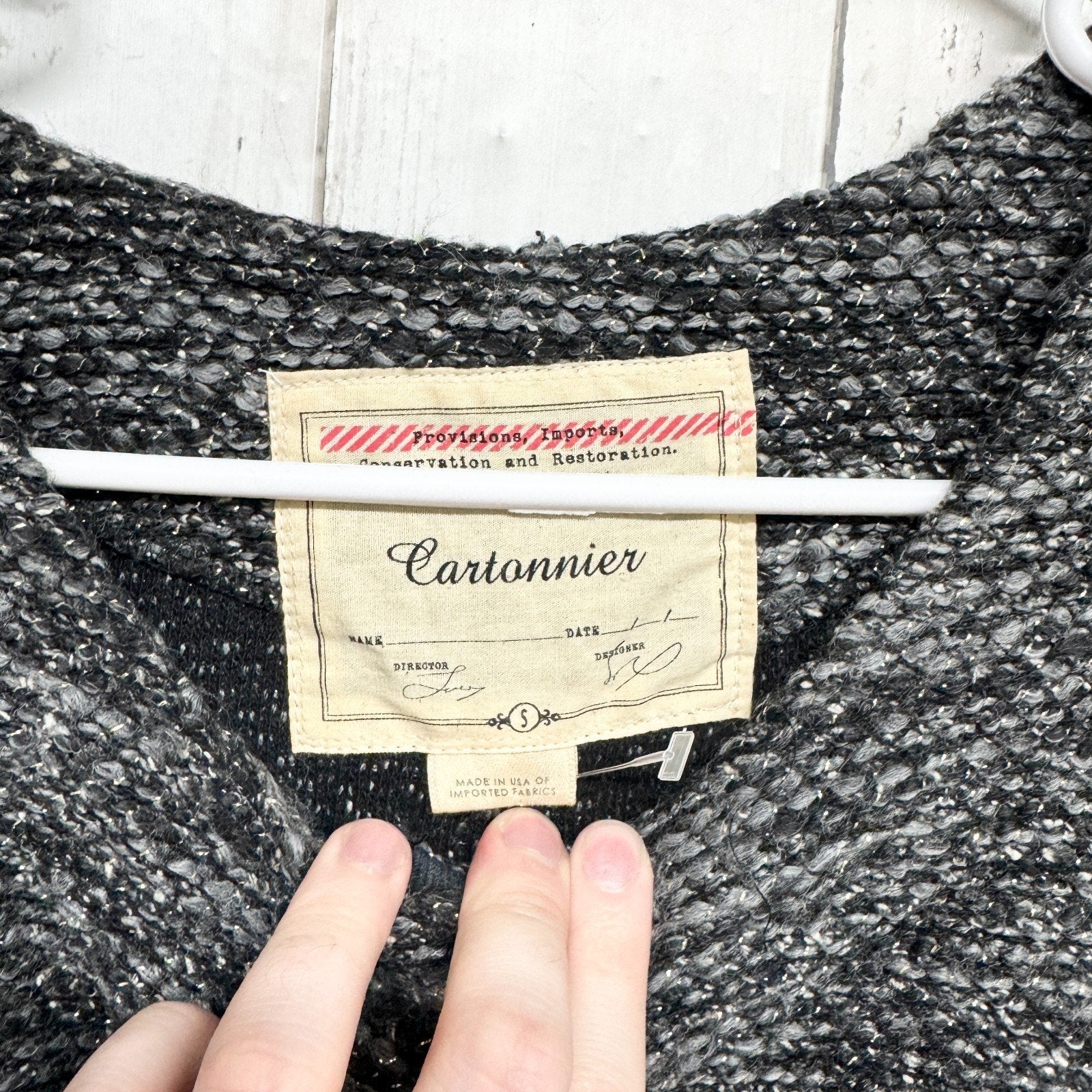 Cartonnier Jacket Women Size Small Black Gray Lurex Knit Tweed Sweater Blazer