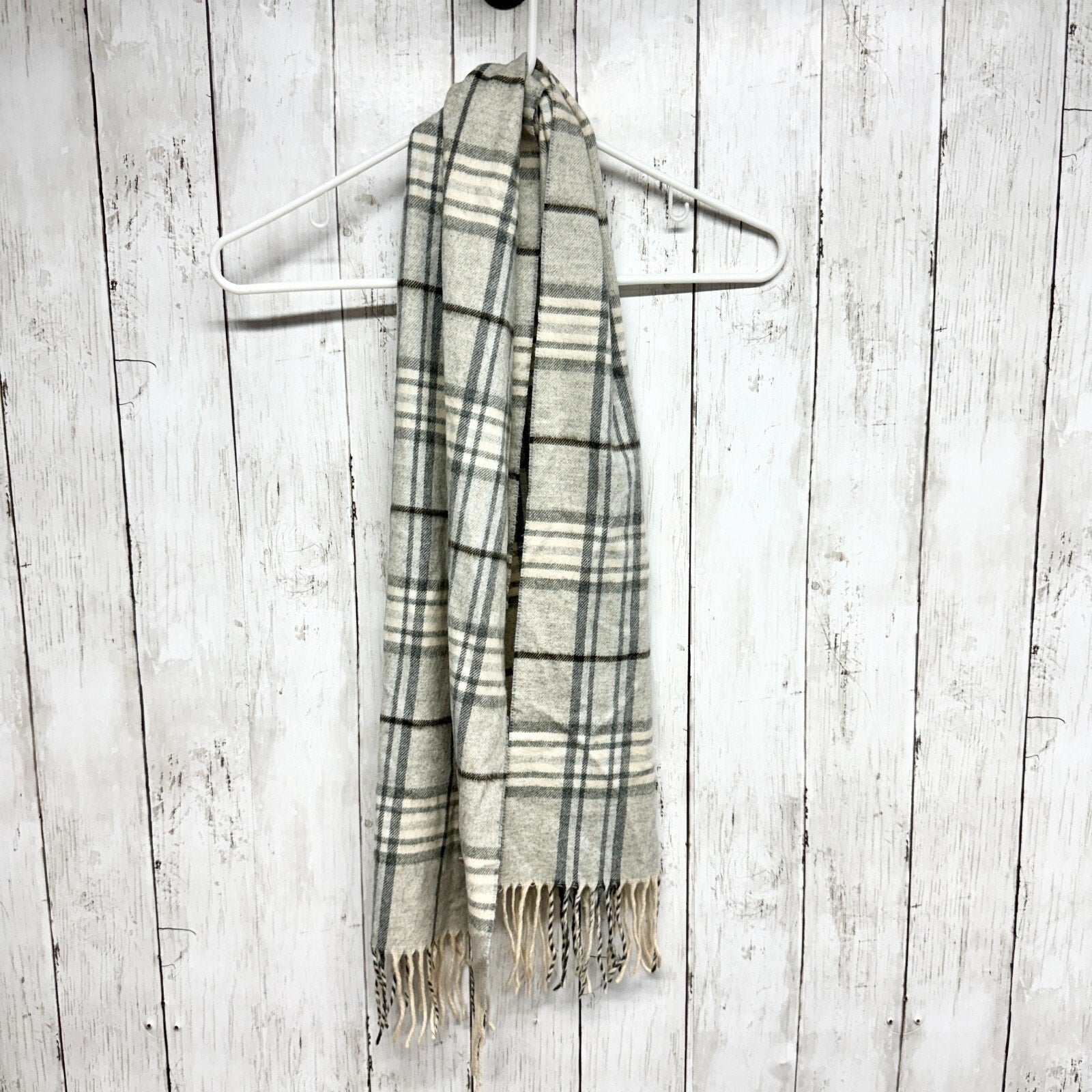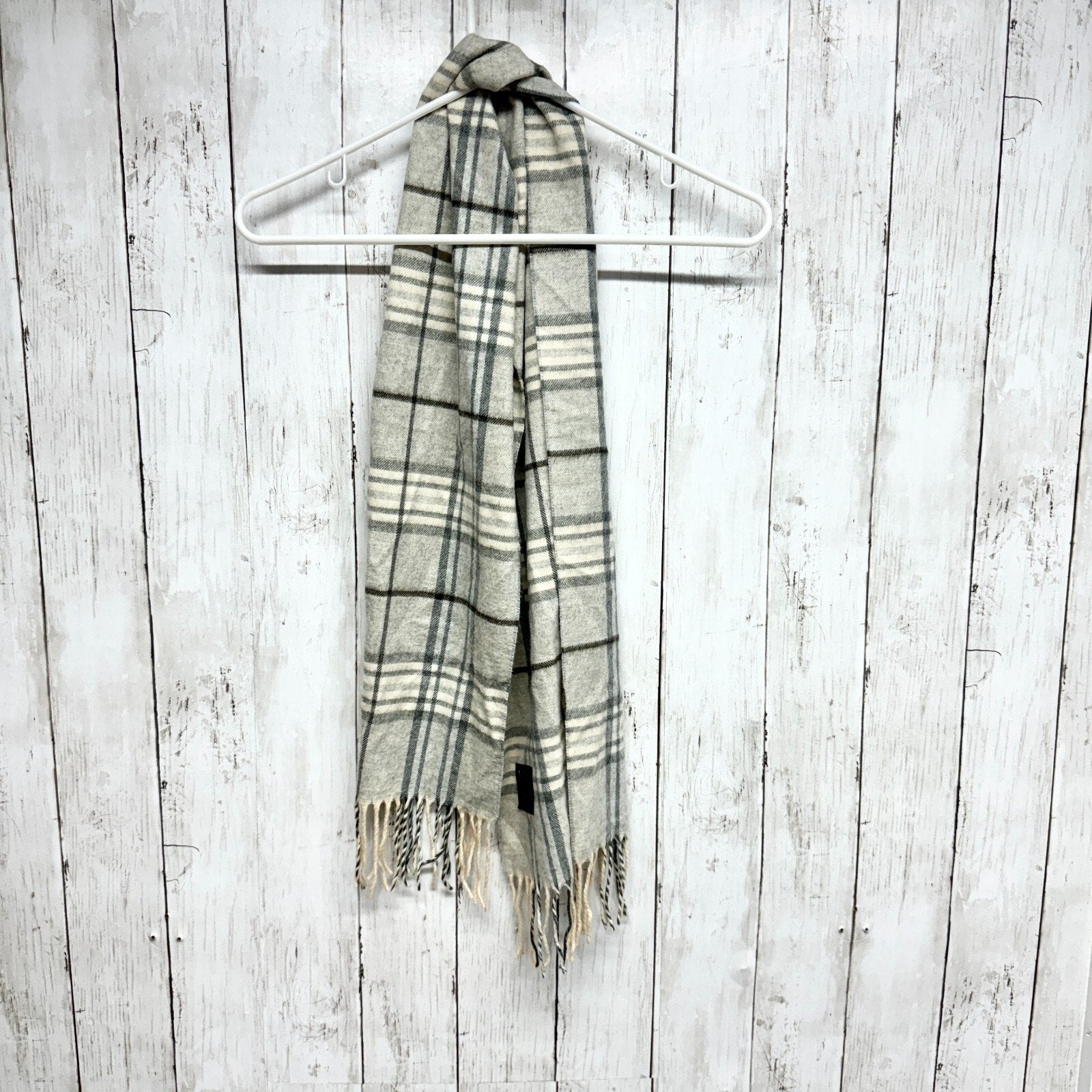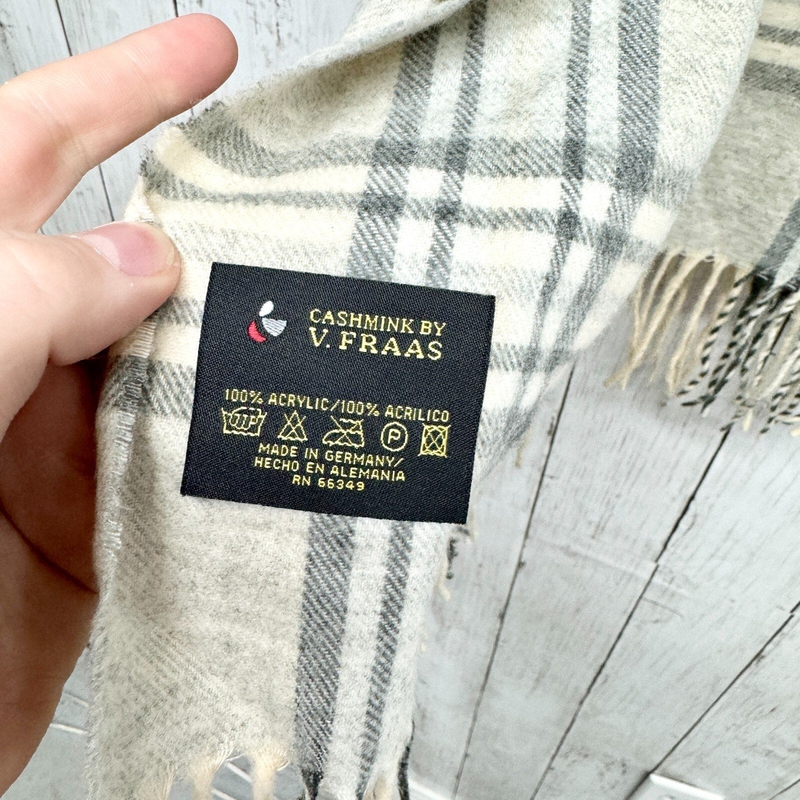 CASHMINK BY V FRAAS Scarf Unisex Grey Plaid Casual Winter Frayed End Striped
