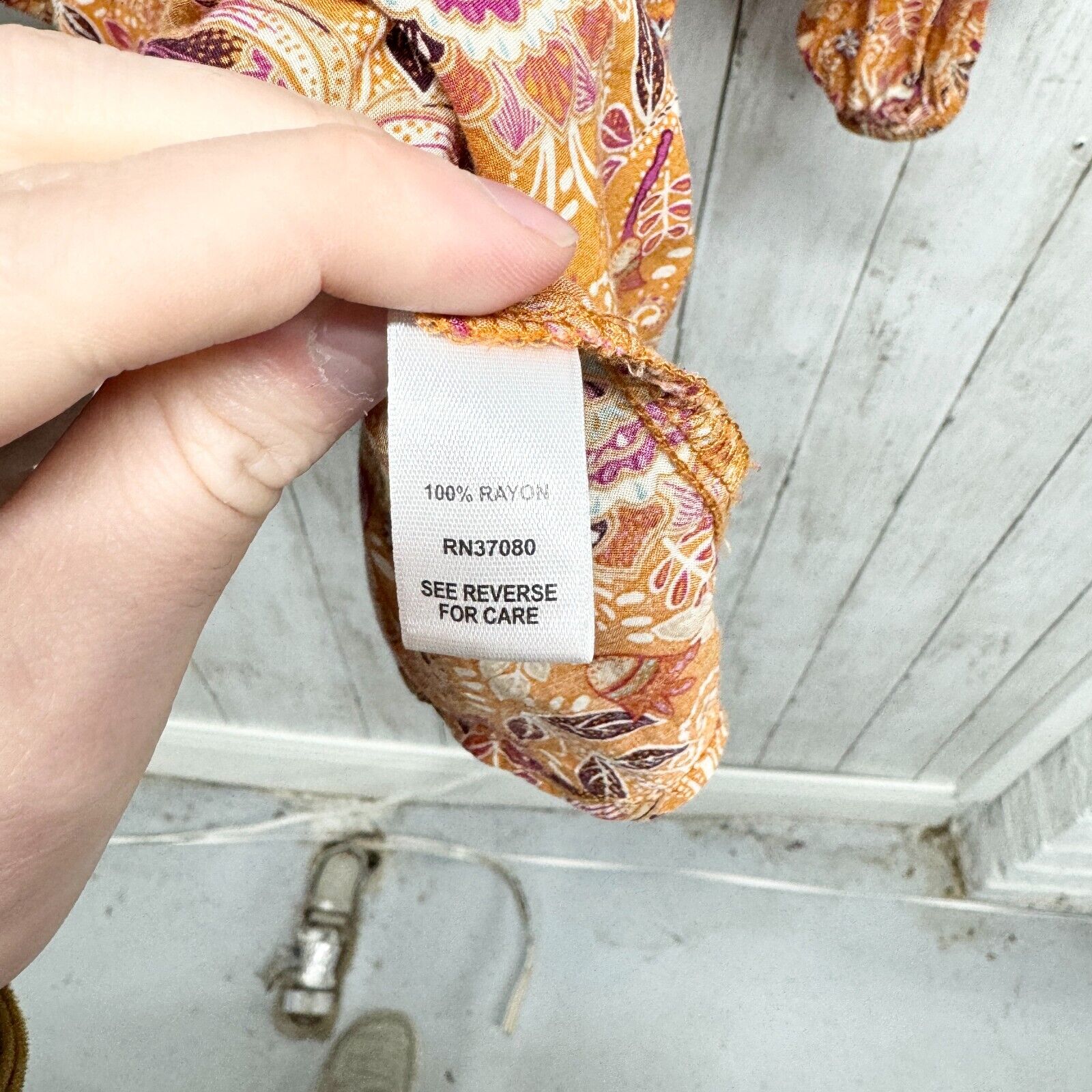 CATO Blouse Women Size 22/ 24W Colorful Puff Sleeves Tribal Boho Round Neck