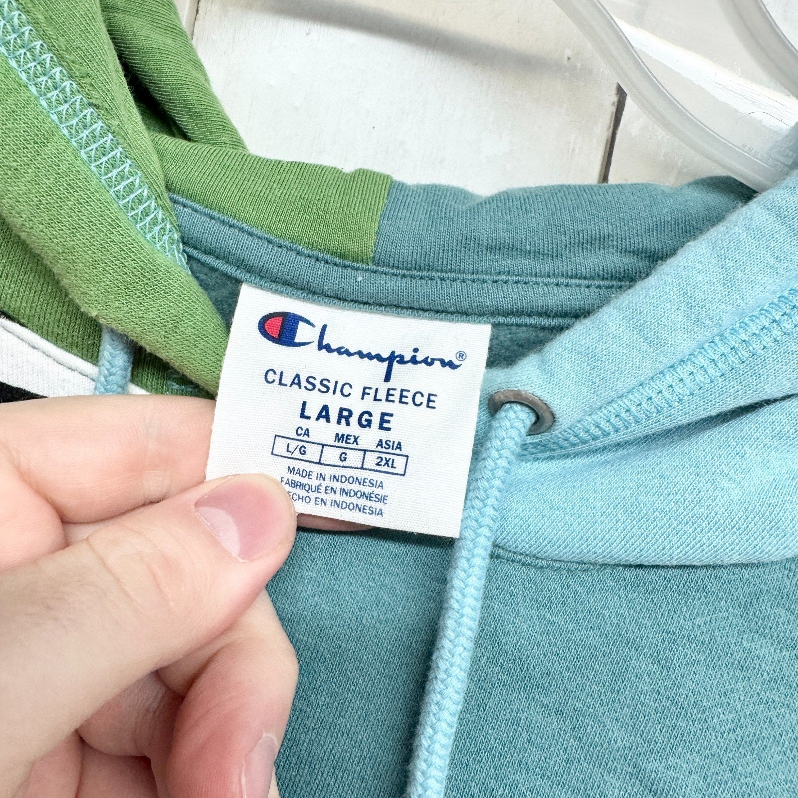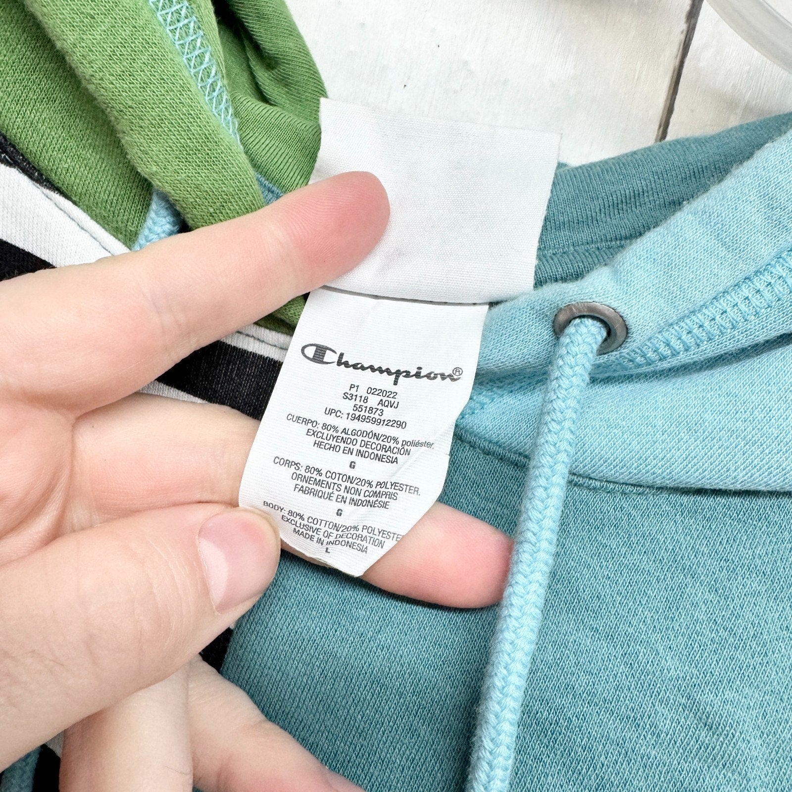 Champion Sweater Men Size Large Mixed Media Long Sleeve Hooded Sweatshirt Pocket