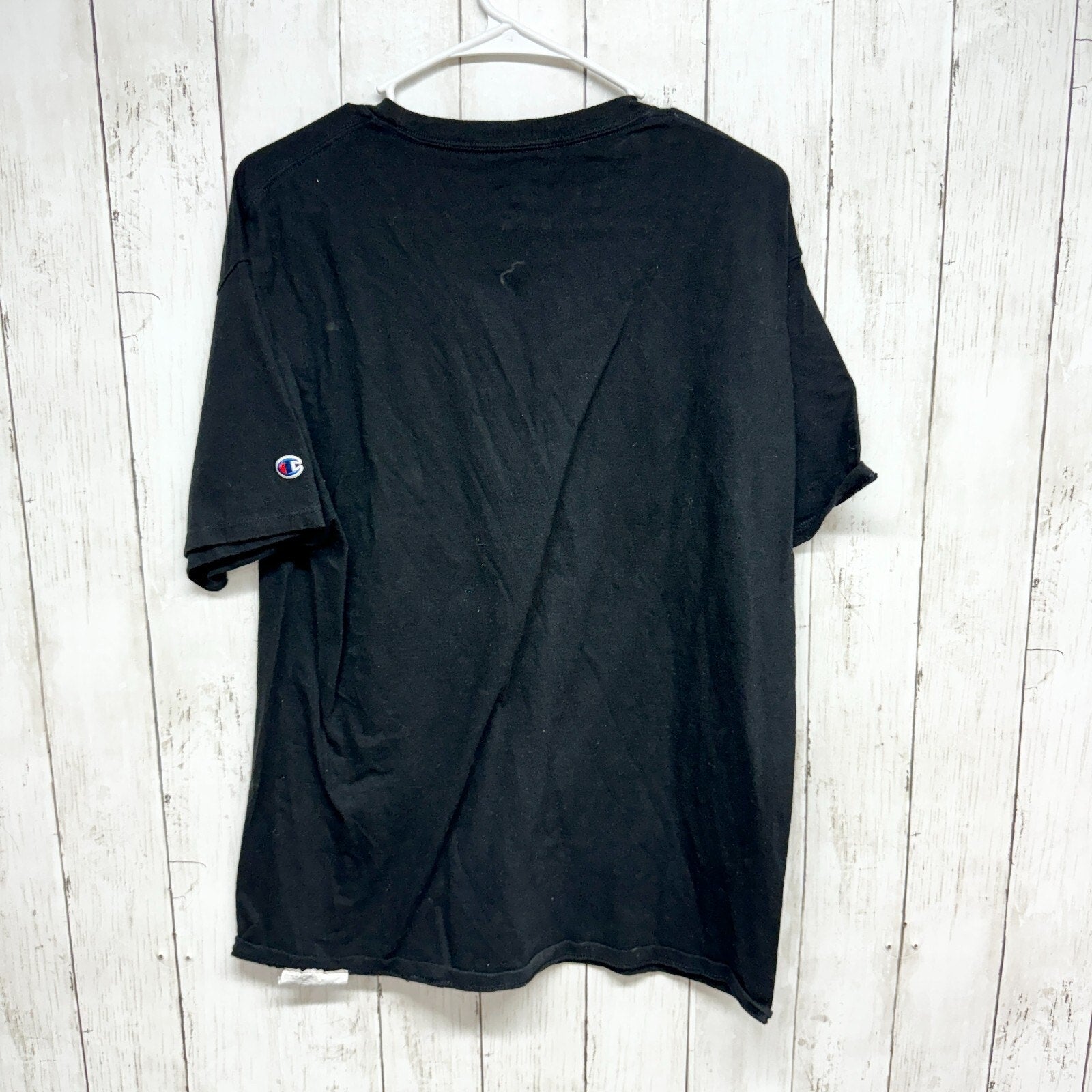CHAMPION Unisex Size Large Black Short Sleeve Graphic Logo Cotton T Shirt Casual