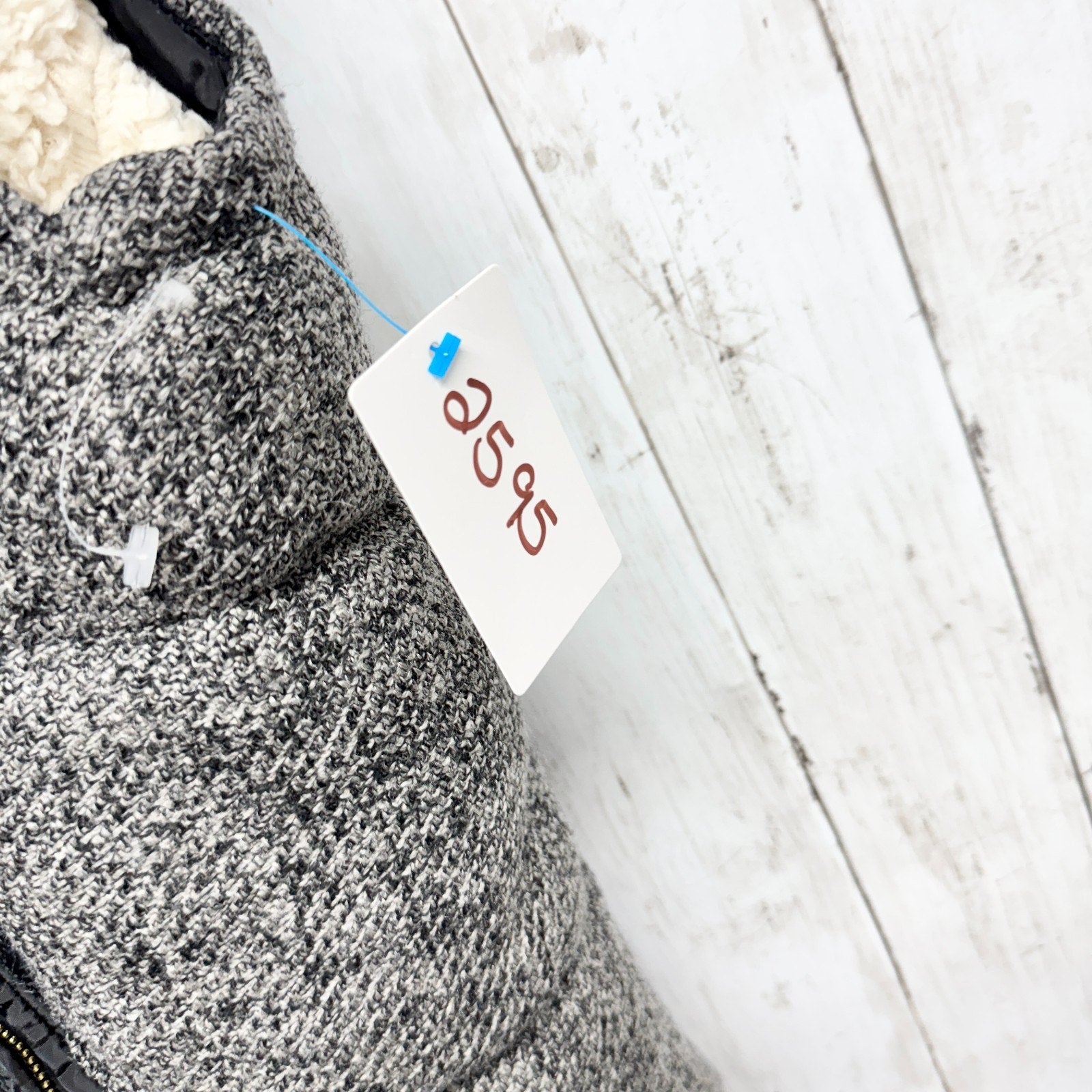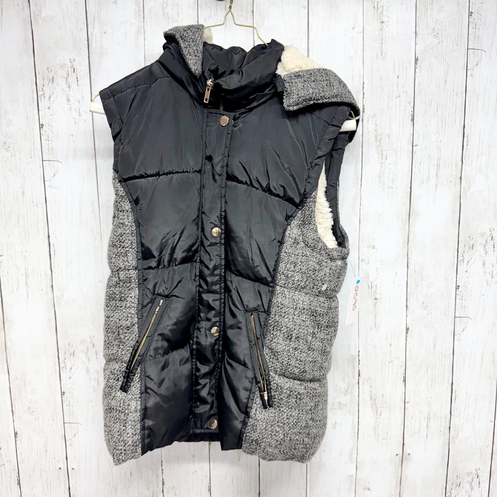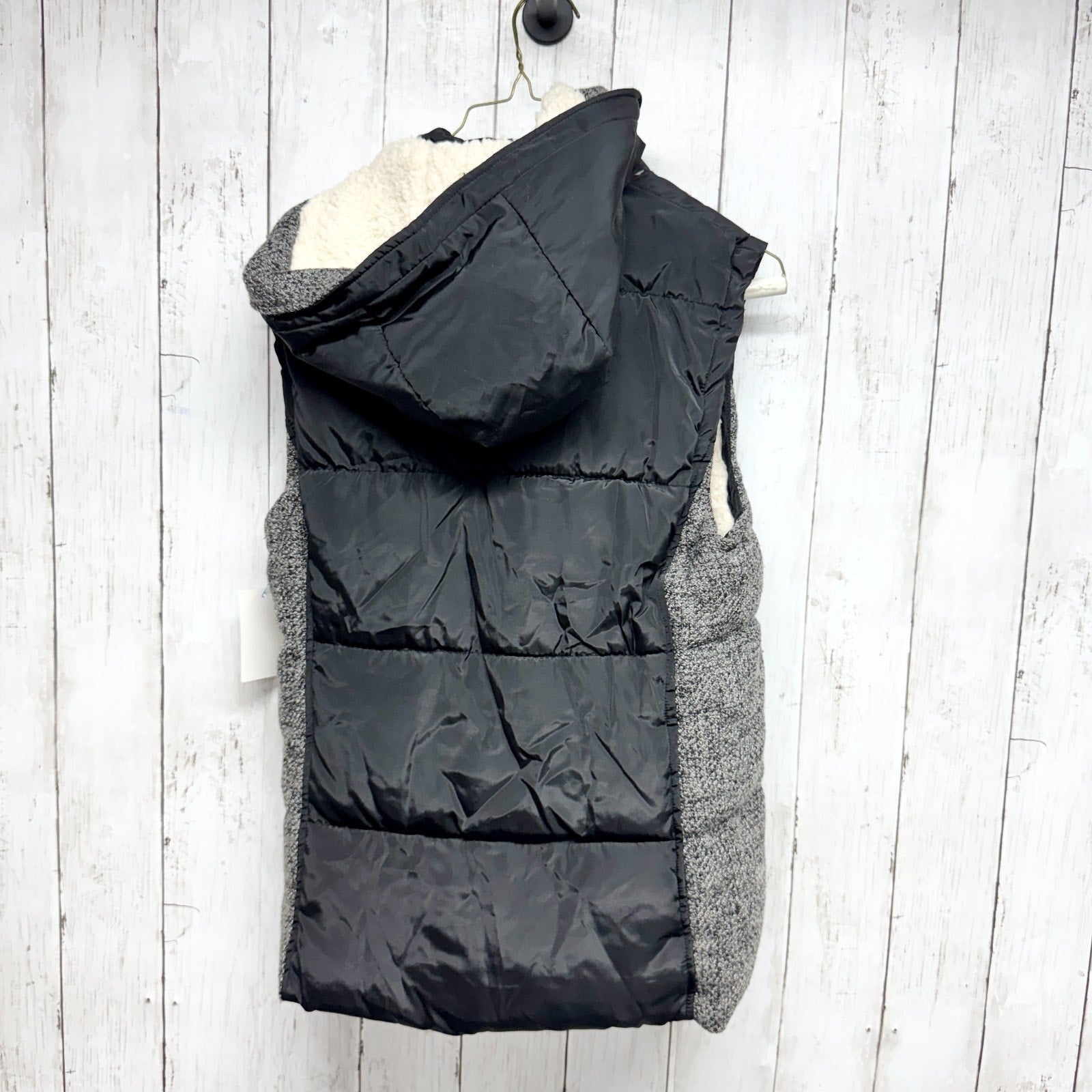 Ci Sono Vest Women Size Medium Black Gray Puffer Hooded Faux Fur Full Zip Pocket