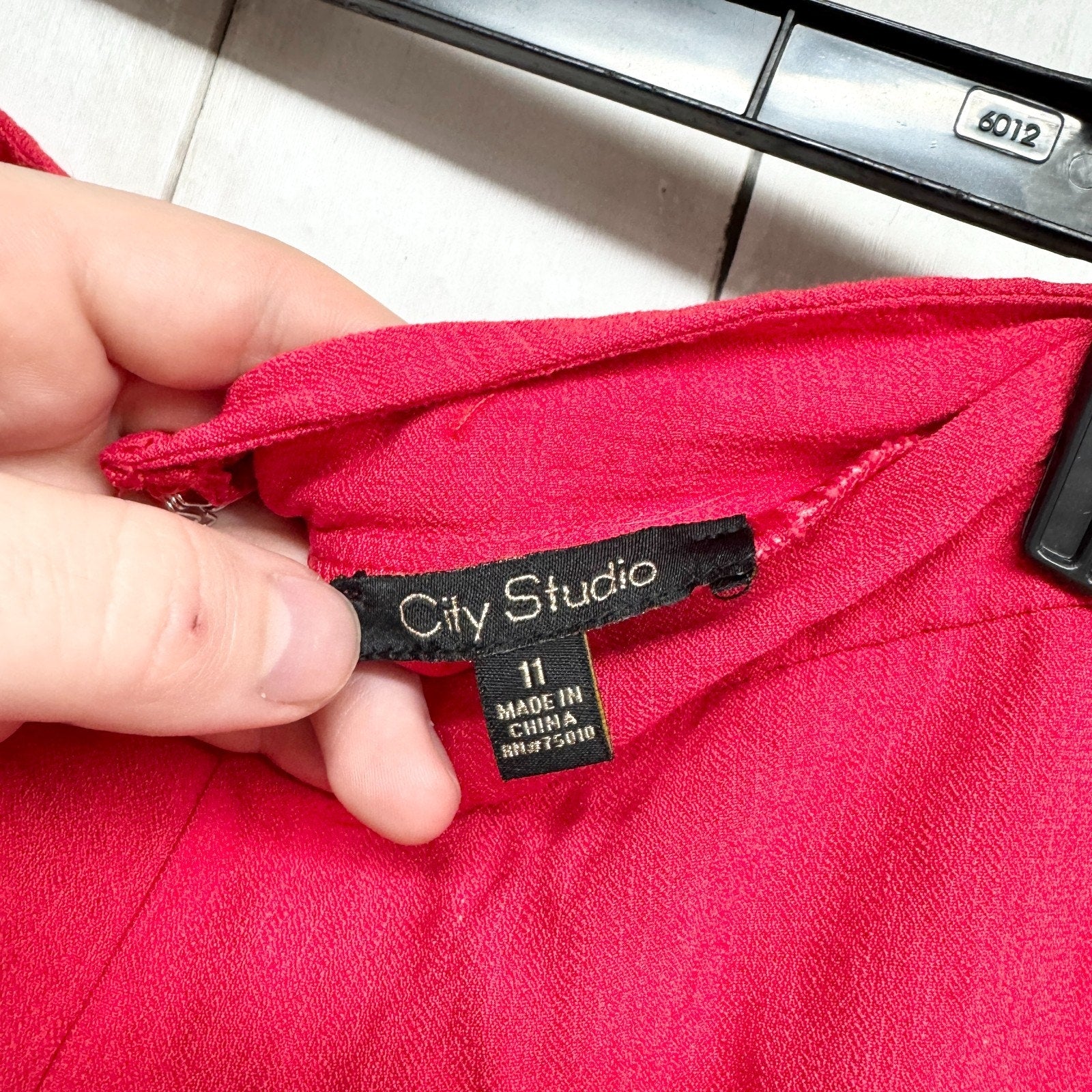 City Studio Pants Women Size 11 Red Crop Wide Leg Zip Back Casual Flared Pockets