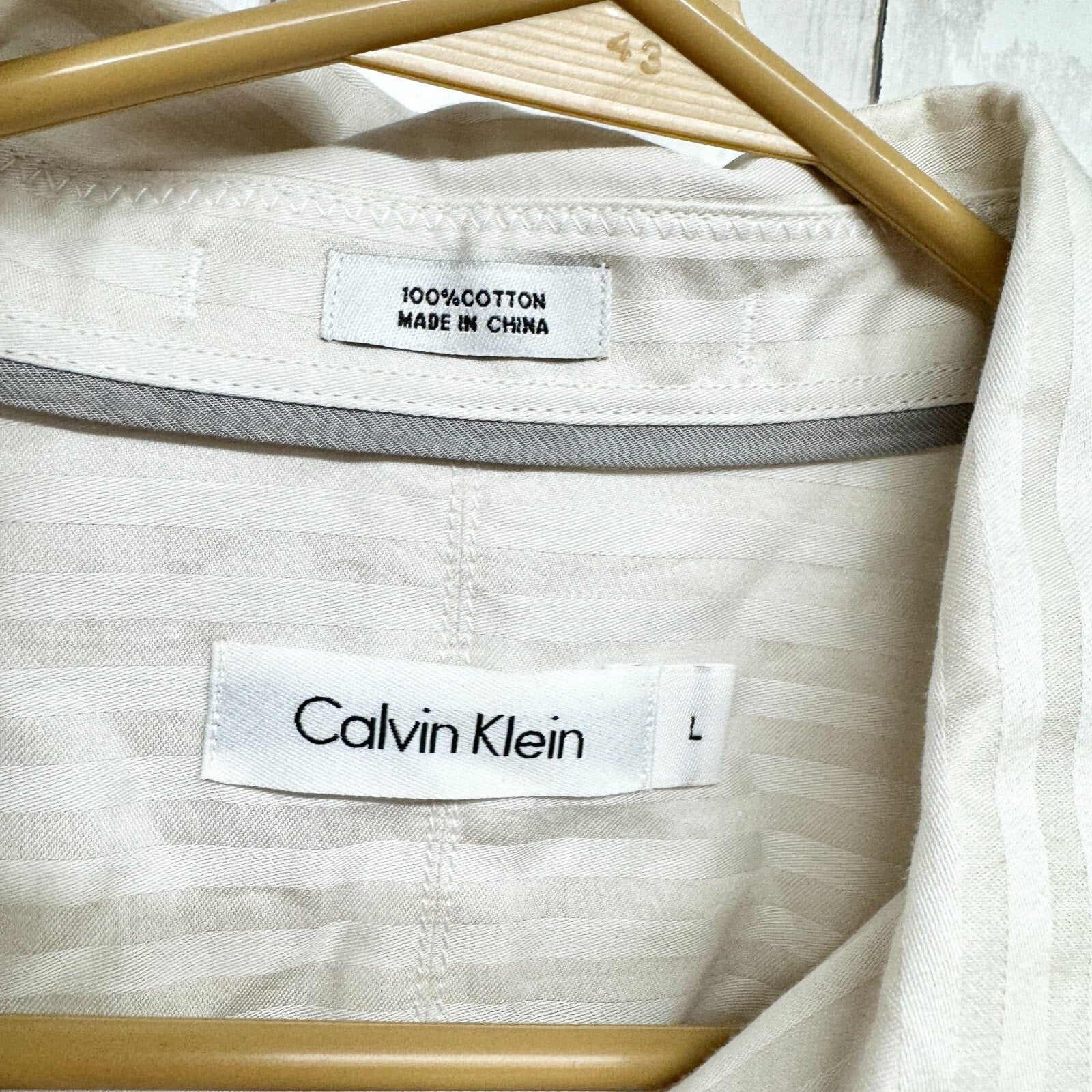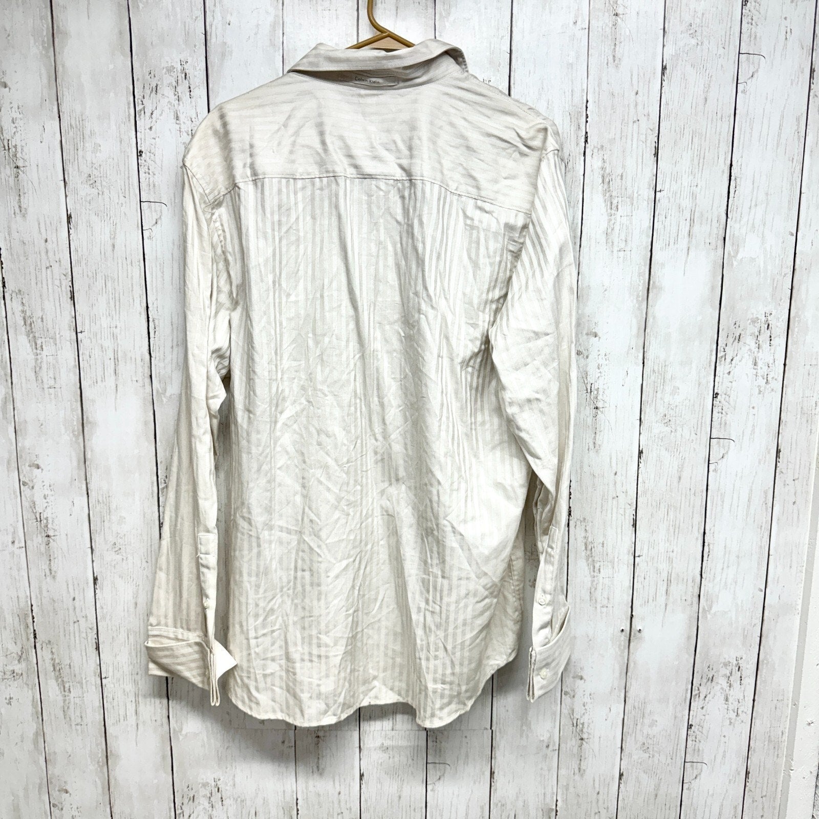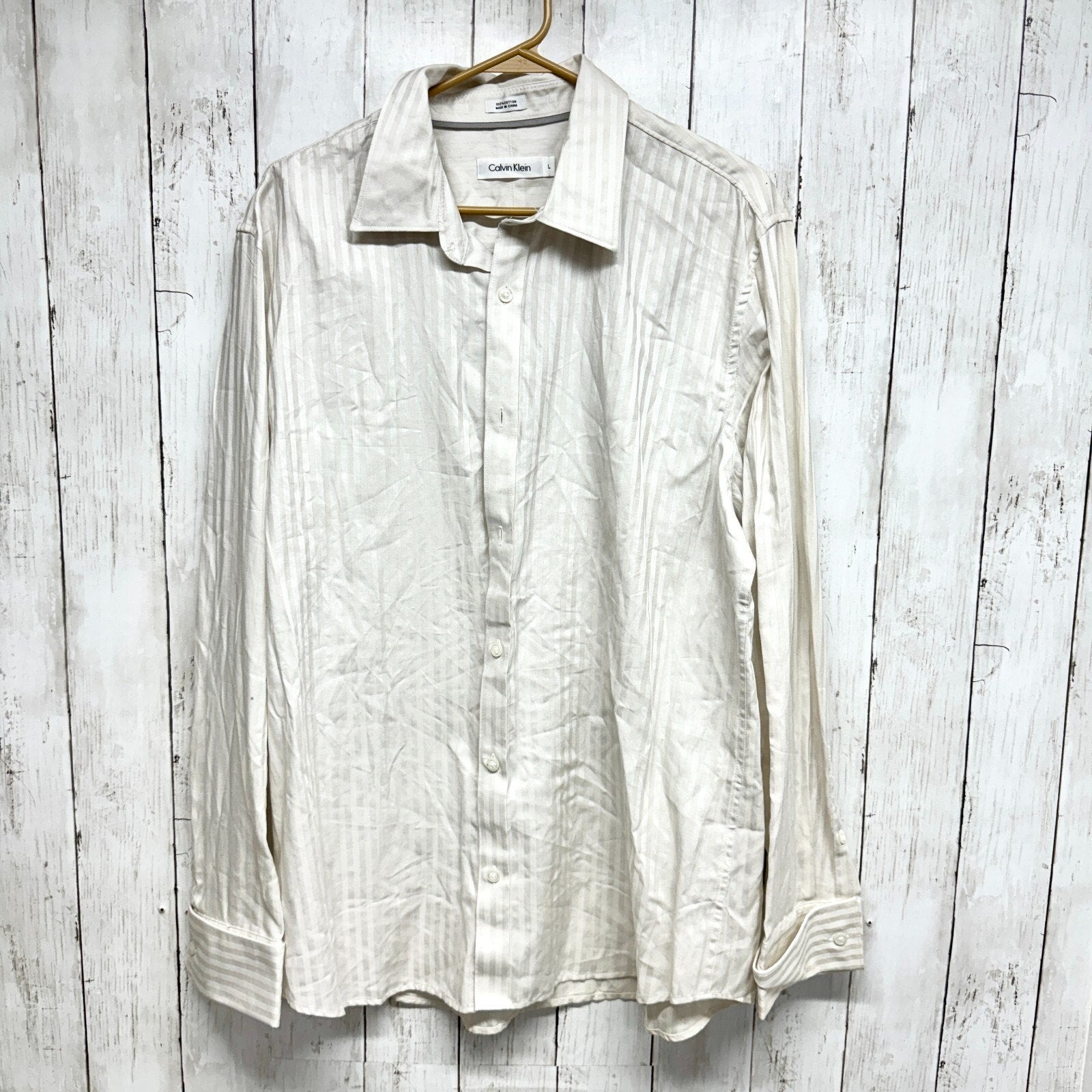 CLAVIN KLEIN Button Down Men Size Large 100% Cotton Long Sleeve Ivory Off White