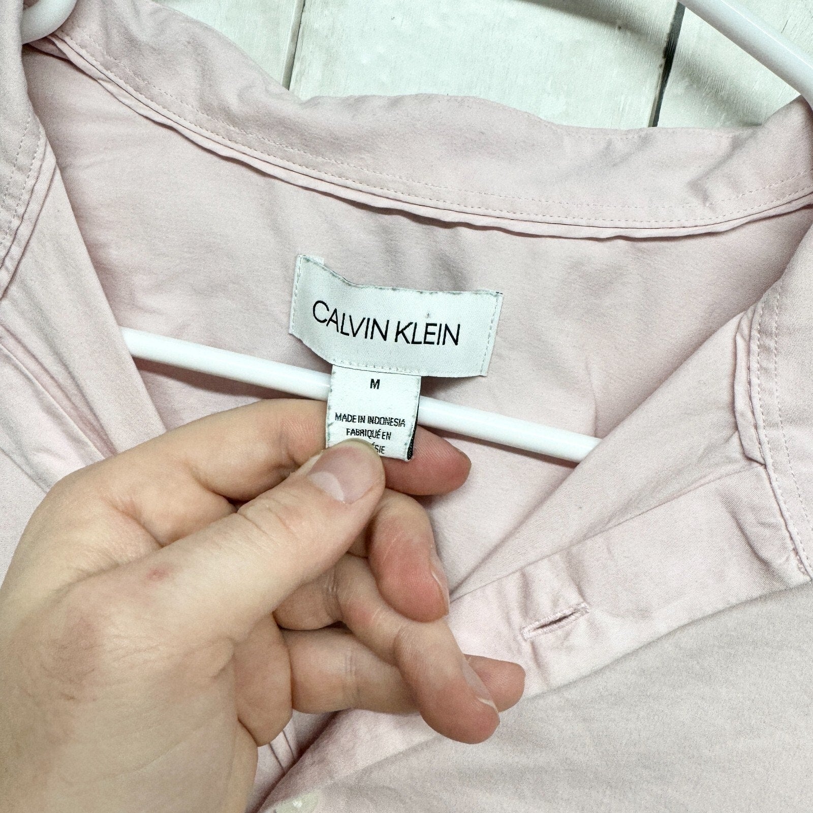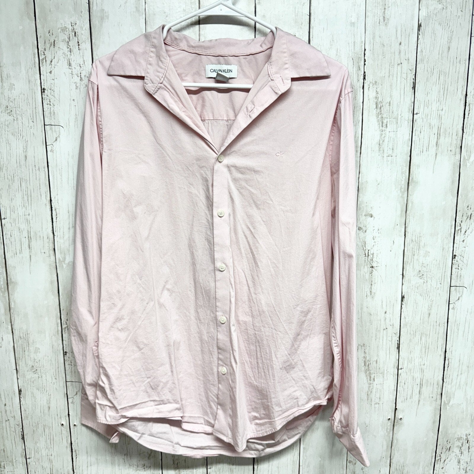 CLAVIN KLEIN Shirt Mens Size M Button Up Light Pink Long Sleeve Spread Collar