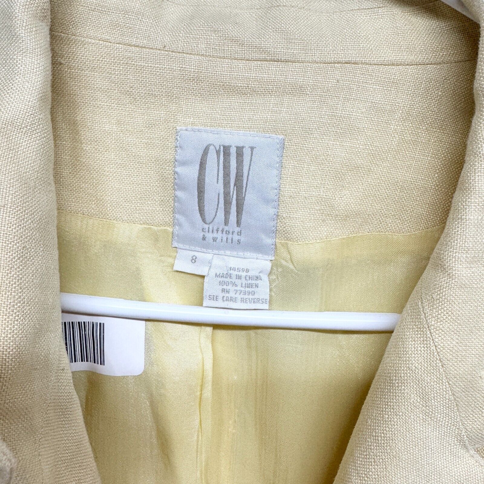 Clifford & Willis Suit Jacket Women Size 8 Yellow Single Breasted 100% Linen