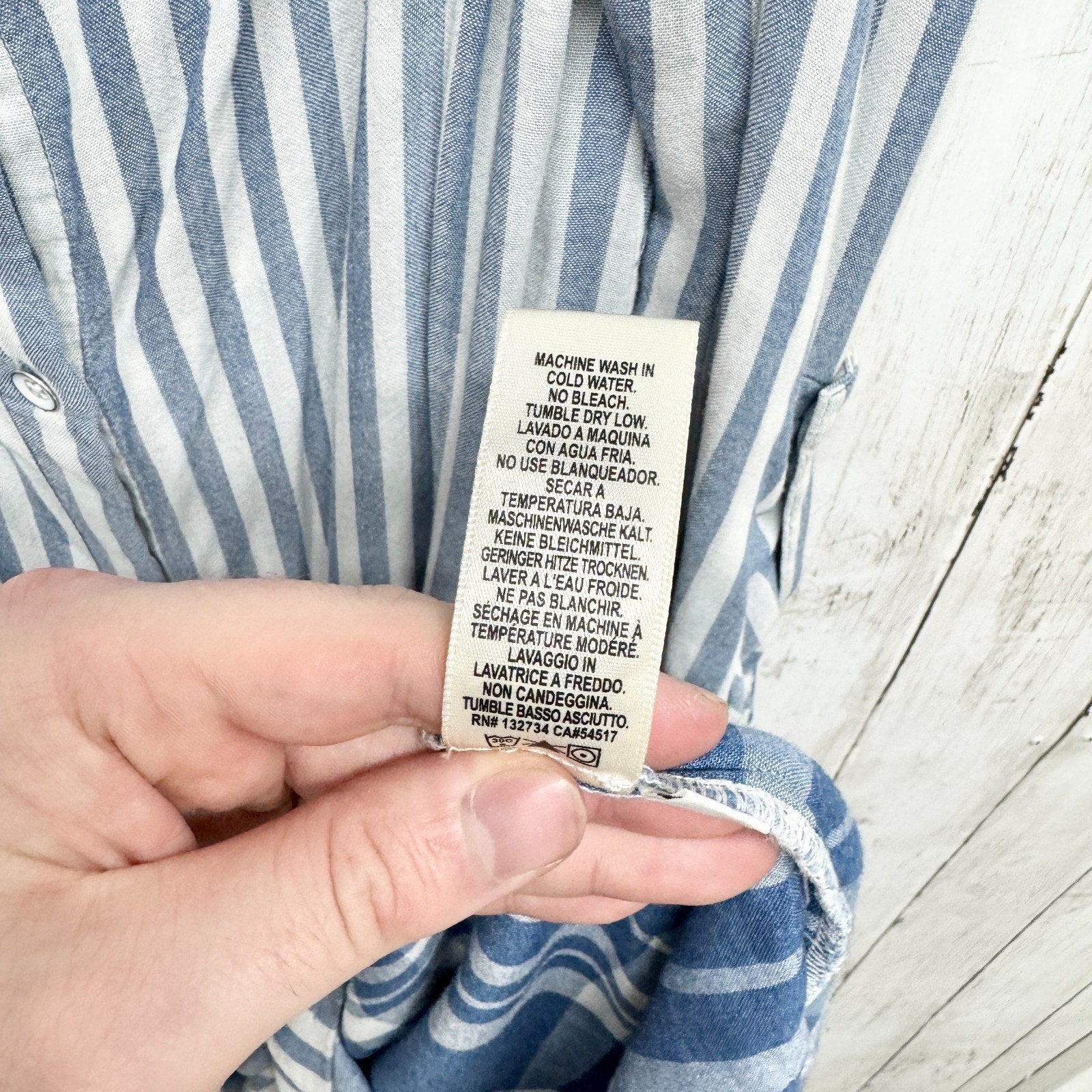Cloth & Stone Dress Women Sz Small Stripe Off Shoulder Button Front Midi Casual