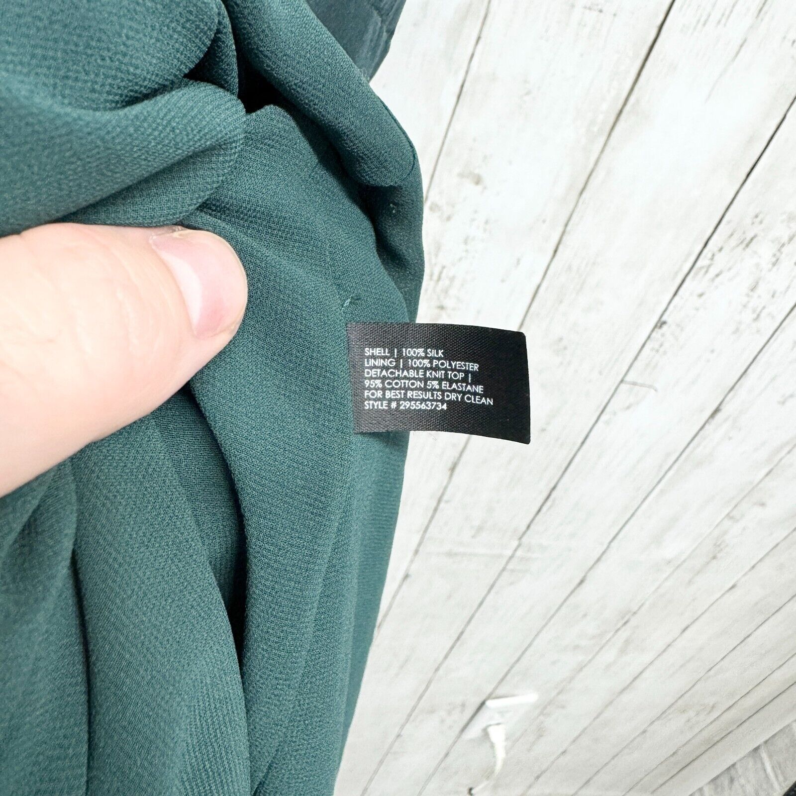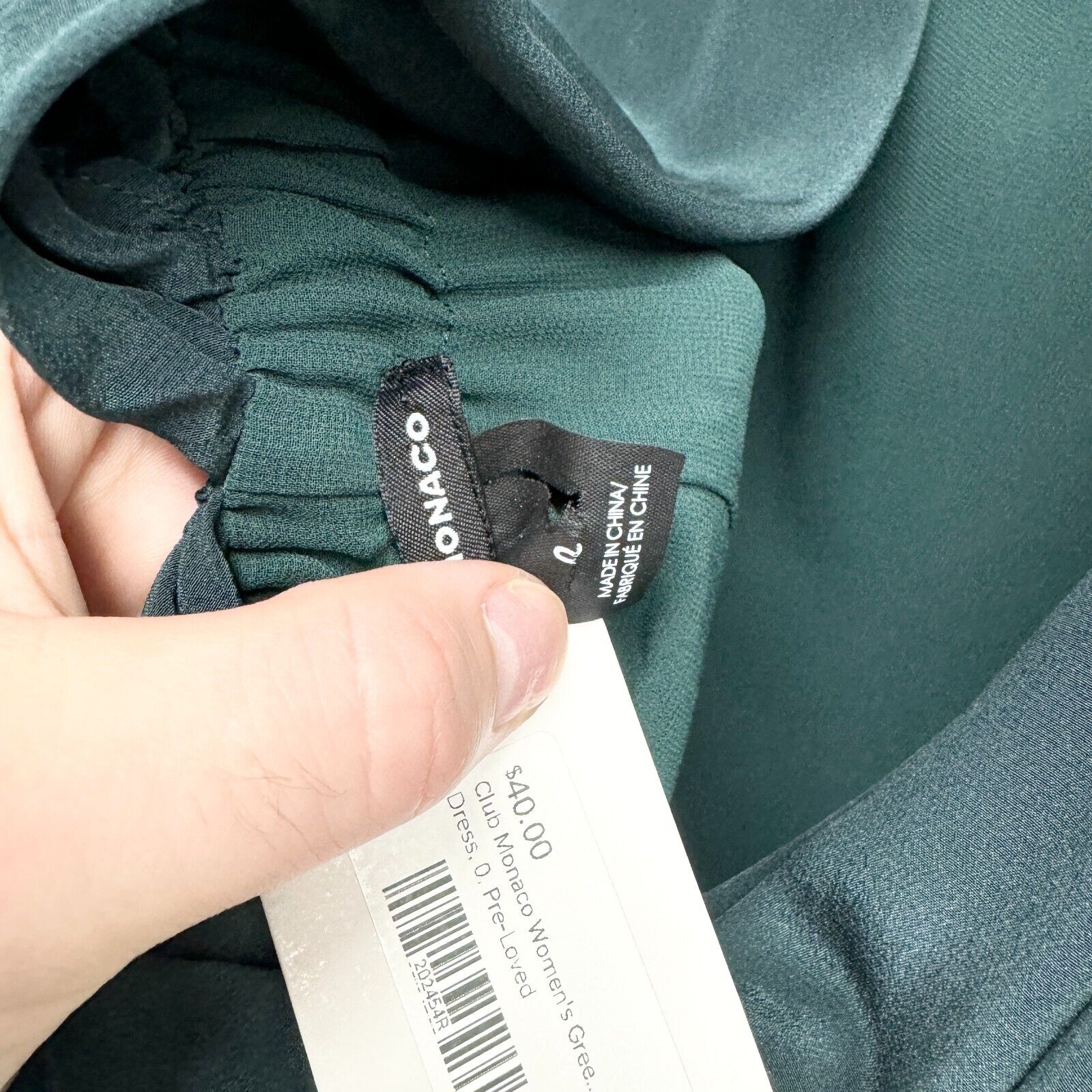 CLUB MONACO Dress Women Size 0 00% Silk Mini Sleeveless Forest Green Business Casual Forest Holiday Summer Girly Natural