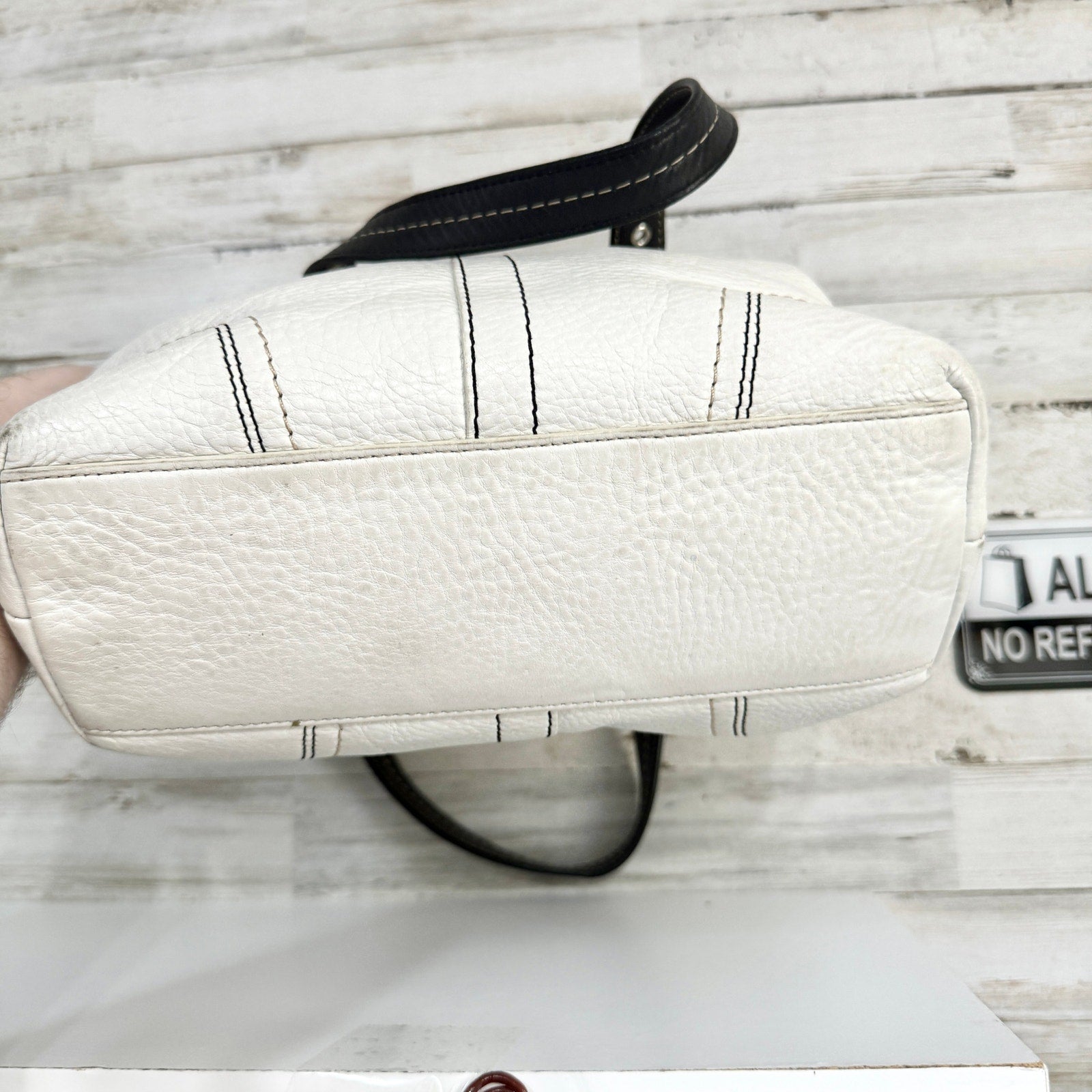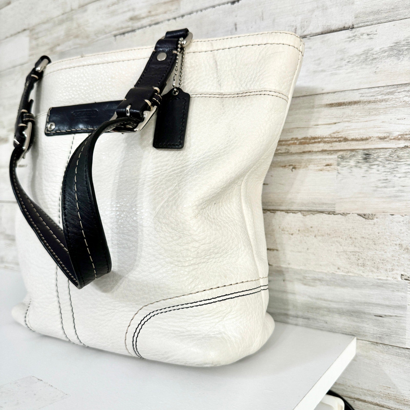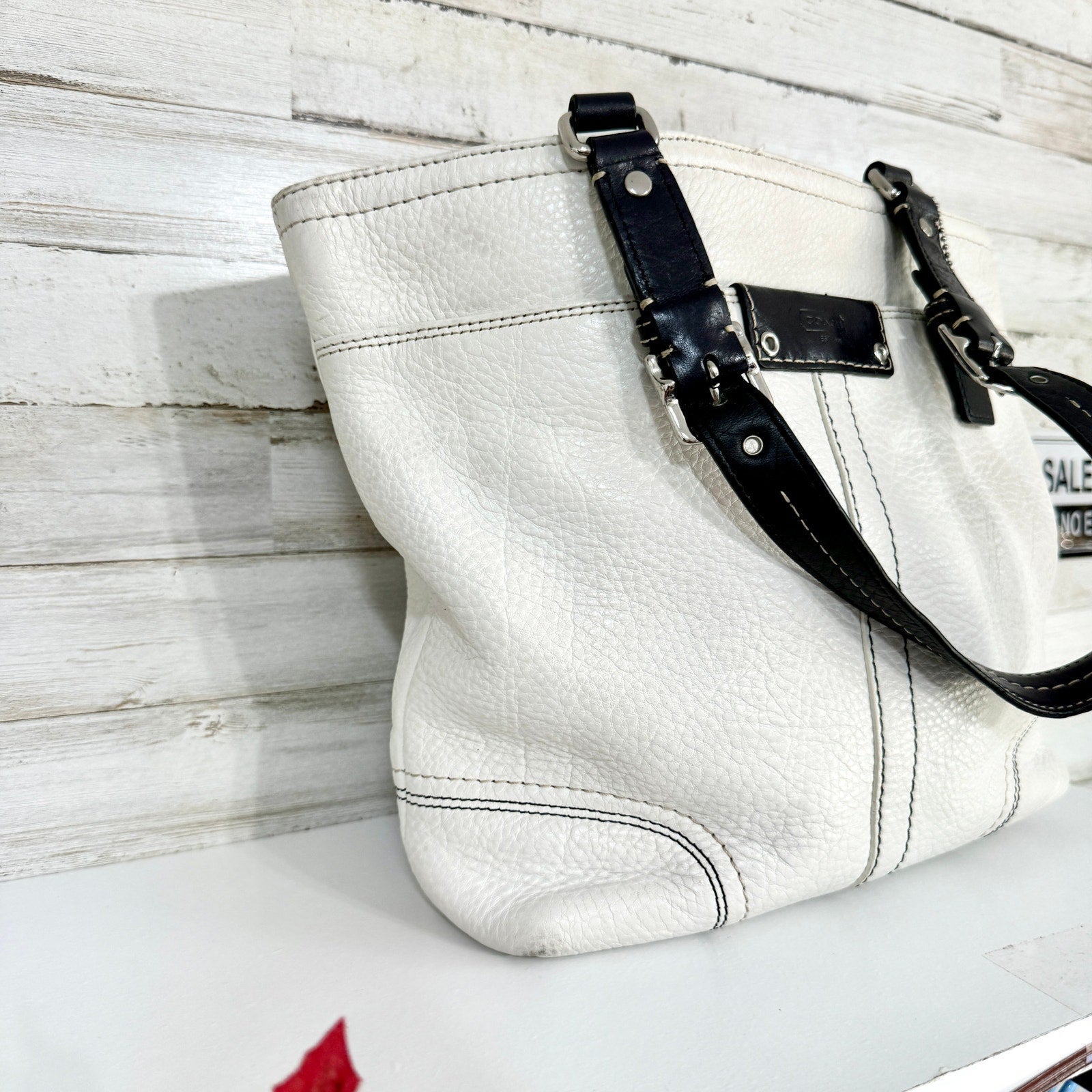 Coach Women Hamilton White Pebbled Leather Black Handled Bucket Tote