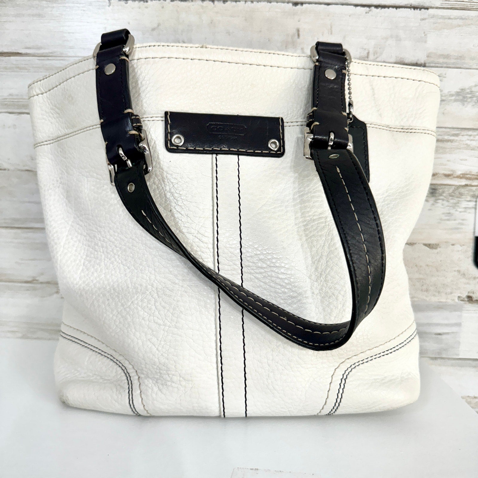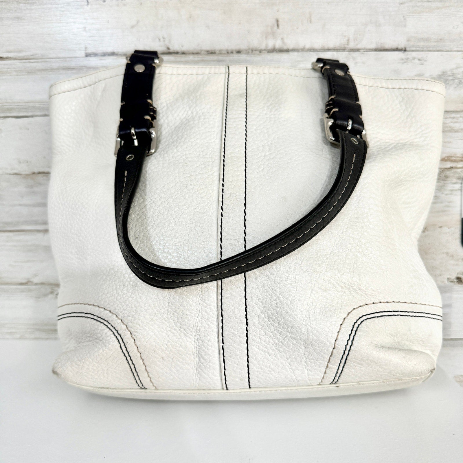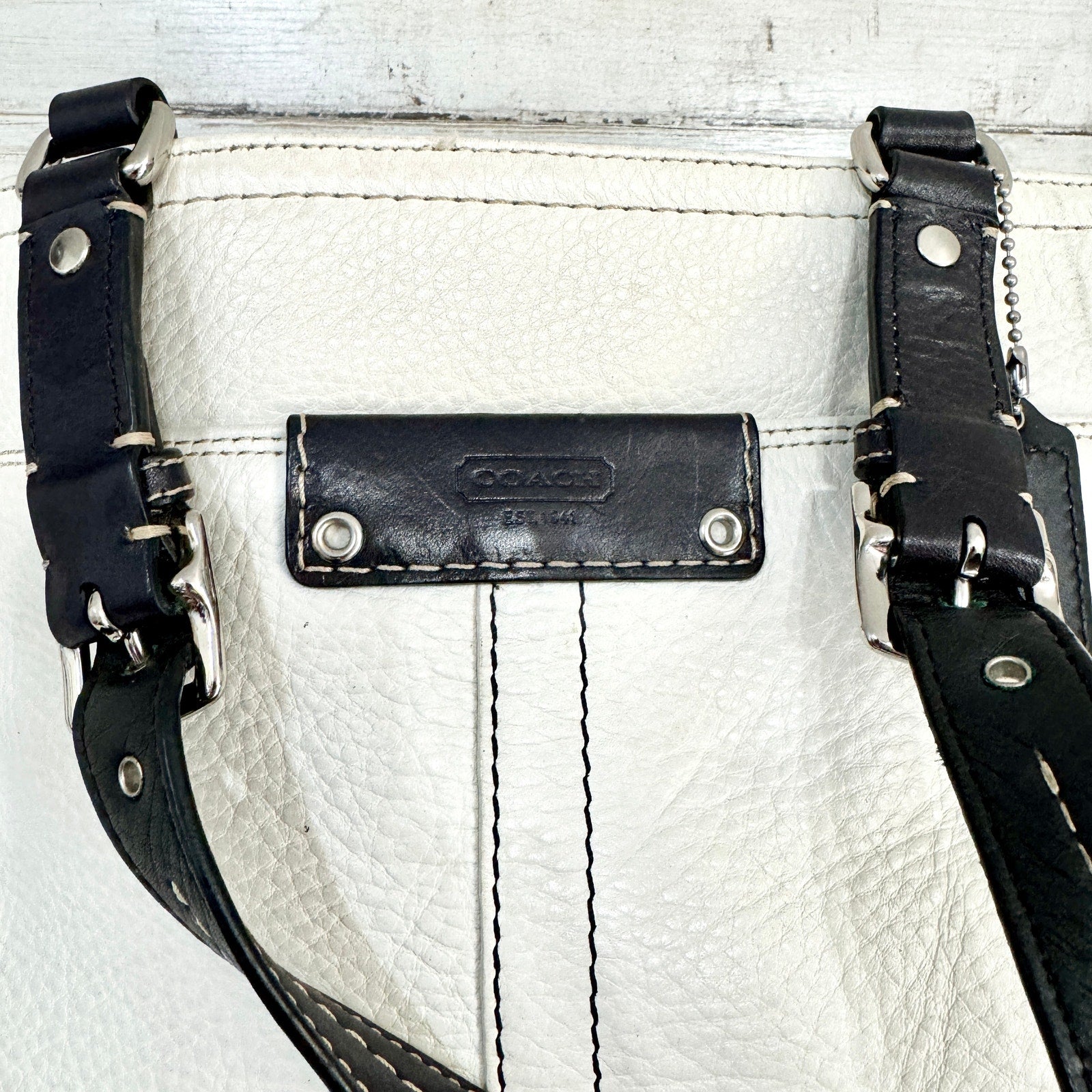 Coach Women Hamilton White Pebbled Leather Black Handled Bucket Tote