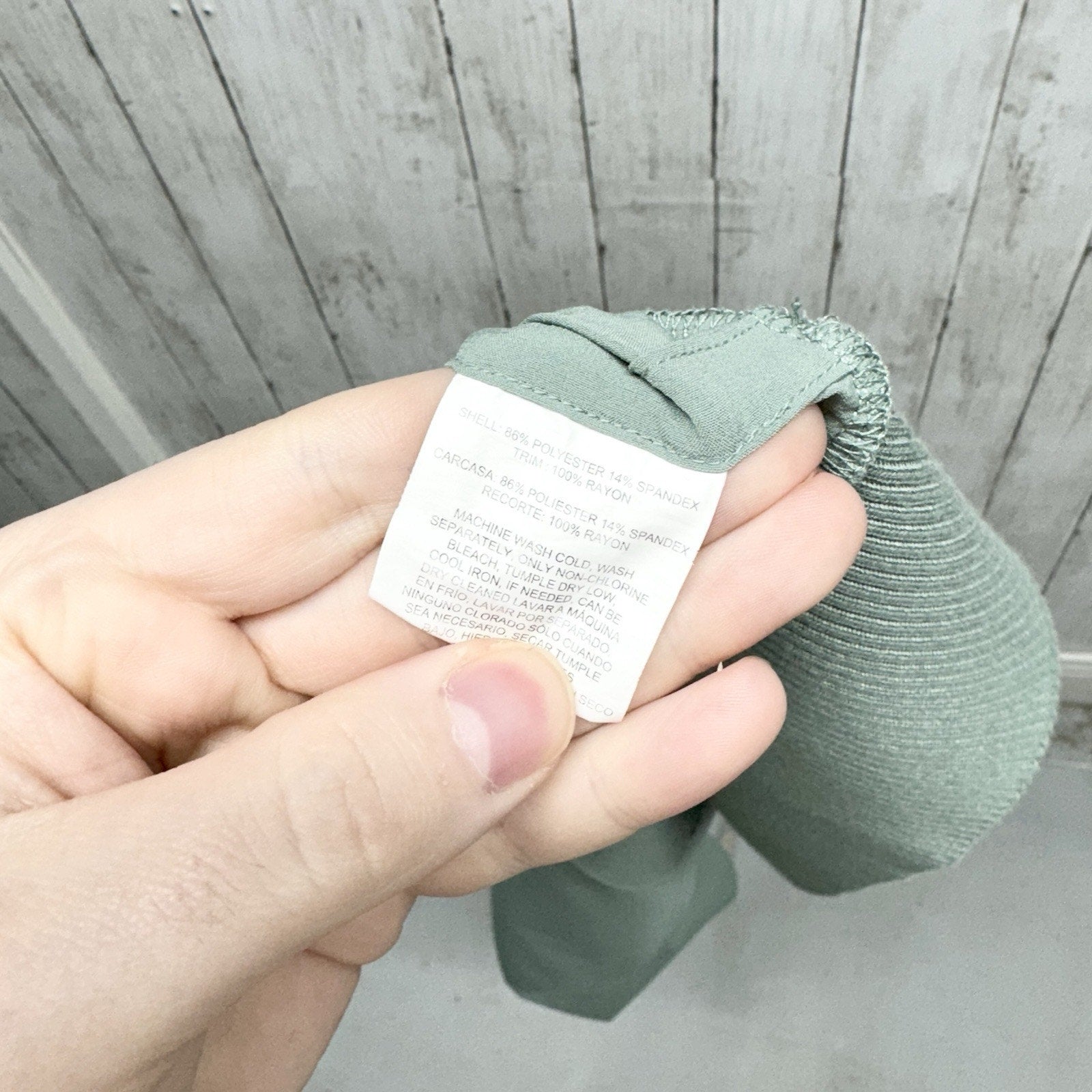 Cobble Lane Crop Women Size M Crewneck Green Silky Knit Bottom Hem Short Sleeve