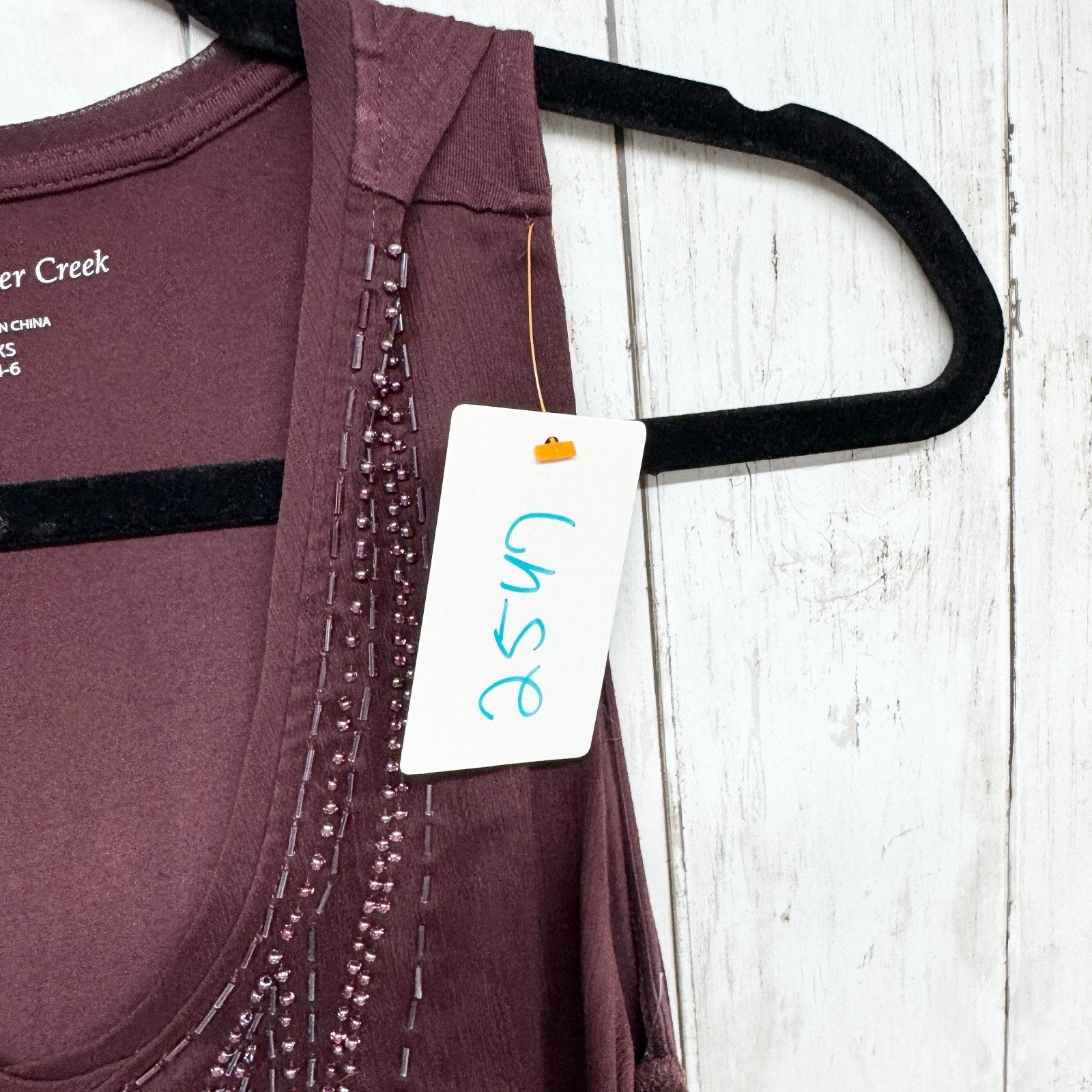 Coldwater Creek Top Women Size XS Brown Beaded V-Neck Sleeveless Blouse Sheer Lightweight